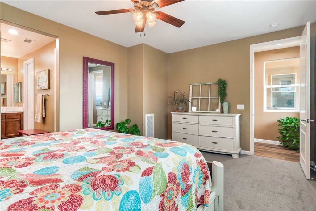 BACK ON THE MARKET WITH NEW PRICE! Beautifully upgraded and spacious (1909sf), this upstairs Duplex-Style Condo, is larger than most Trilogy homes; PLUS, it has a Fantastic Panoramic Golf Course View. Trilogy @ Glen Ivy is SoCal’s premier, ACTIVE, 55+ Senior Community in Riverside County, offering many “Cruise Ship-Like” amenities and activities. For example: 2 Pools (Indoor/Outdoor), a Spa/Hot Tub, a well-equipped Gym, a unique Indoor A/C-Controlled Walking Track; PLUS, Tennis/Pickle/Bocce Ball Courts for outdoor Sports. INSIDE: The Condo’s Open Floor Plan offers 9ft Ceilings throughout, making all interior/upstairs living areas feel even more spacious. A Private 1-story, HOA-Maintained Elevator, is perfect for anyone with disability issues, but also handy for bringing up groceries from your Private/Covered 2-Car Garage downstairs. The welcoming, Open “Entertainer” Kitchen has lush dark-wood cabinetry with a huge Granite Center Island. A convenient Dining Elle is adjacent to the Kitchen, but an adjoining room may also function as a “Formal Dining Room” or a Den/Library/Music Room, depending on life-style needs. The front-facing Guest Bedroom has an Adjoining Bathroom with a Shower/Tub combo for “Bubble Bath Fans”. The Large, Open Office Space, can easily function as a “Third Bedroom” when Grandkids/Friends stay over. The spacious Primary Bedroom easily accommodates “King Size” Furnishings, while the adjoining Primary Bathroom has a huge “Step-In Shower” and a “Walk-In Closet”. Other Upgrades Include: Ceiling Fans in Every Room, Plantation Shutters, Acoustic Flooring, plus a newer Home A/C Unit still under Warranty. The “Man-Cave-Like” Garage, sports Epoxy Painted Flooring, plus 4 Large Hanging Storage Racks to store “Your Stuff”. THE COMMUNITY: Trilogy’s 14,000sf Pacific Crest Lodge has Cards/Crafts/Billiards Rooms and is the “Focal Point” for Numerous Social/Affinity Club Events & Activities. FINALLY: Trilogy’s Unique Outdoor Amphitheater is well attended during Summer Music Concerts and other Special Events. Trilogy is definitely an ACTIVE Senior Community! More importantly, it offers a splendid place to make NEW FRIENDS. Come see for yourself, join the “Trilogy Family”.