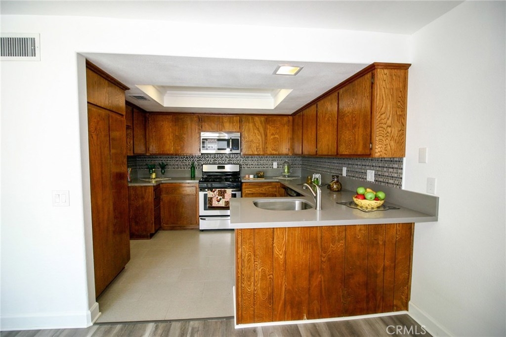Beautiful remodeled “Move-In Ready” 3 Bedroom, 2 Bath Single Story Condo. Open floor plan, newer large kitchen with Quartz counter tops, all stainless-steel appliances, Stove, Dishwasher, and Microwave, all included. Living room has a cozy wood burning fireplace. New Flooring throughout, wood, tile & carpet. Condo has been freshly painted with designer paint colors. All new light fixtures as well as LED lighting. Large Master Suite has a completely remodeled Bathroom. All new windows & patio door - opens to a Spacious back yard, great for entertaining, very private. Large 2 Car Garage. Very Quiet and Peaceful condo. Close to shopping, restaurants, 91 freeway & Corona High School. HOA includes: Community Pool, Sports Courts, and Lake that provides the opportunity to Boat and Fish in. Cable, Trash/Recycling, Pest Control, All Lawn Maintenance