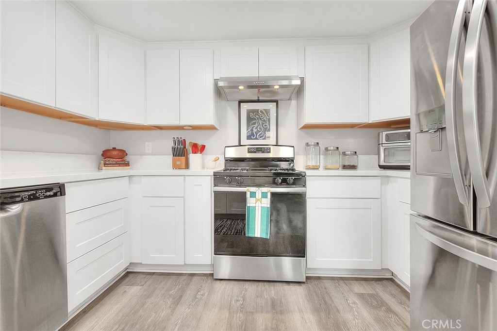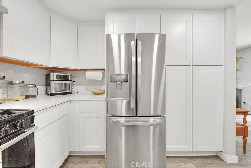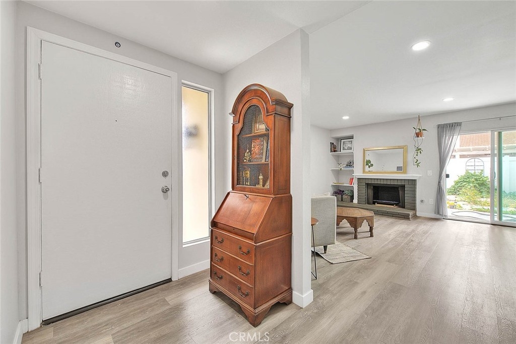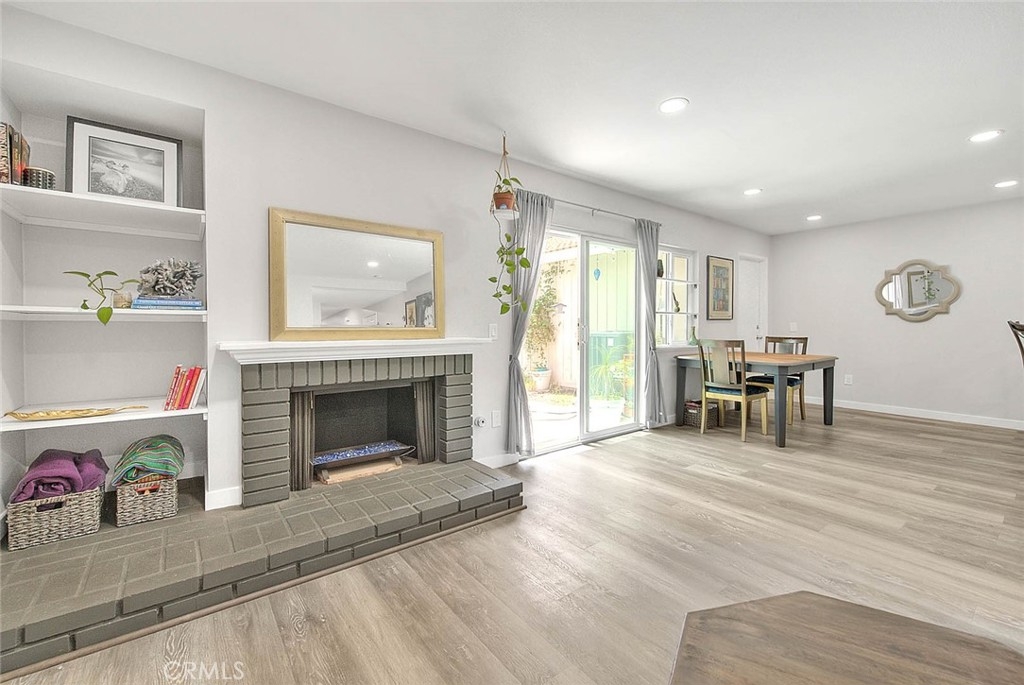 Welcome to 1068 Border Ave, a beautifully updated 3-bedroom, 2-bathroom condo offering 1,171 square feet of comfortable, single-level living in the heart of Corona. This well-maintained home blends thoughtful upgrades with a calm, inviting atmosphere. Inside, you’ll find an open-concept living area featuring recessed lighting and a charming fireplace that serves as the focal point of the room—perfect for cozy evenings or welcoming guests. The kitchen showcases remodeled cabinetry, sleek quartz countertops, stainless steel appliances, and a layout designed for both function and flow. The primary bathroom features modern tile work and an updated vanity, while both bathrooms offer a clean, refreshed feel. The bedrooms are generously sized, with ample storage and natural light throughout. Step outside to your private backyard—designed with serenity in mind. It’s a peaceful retreat ideal for entertaining, relaxing, or enjoying a moment of zen. This desirable community offers a full suite of resort-style amenities, including lake access, a sparkling pool, tennis courts, and a clubhouse—adding value and lifestyle to your everyday routine. This single-level gem offers the perfect blend of style, comfort, and community living. All that's missing is you!