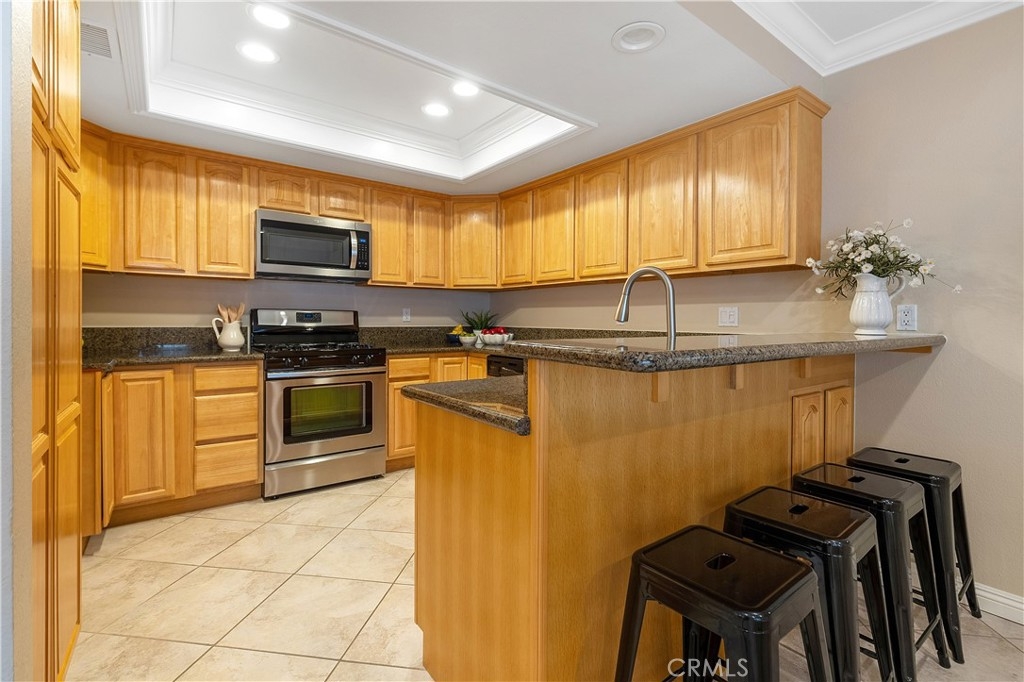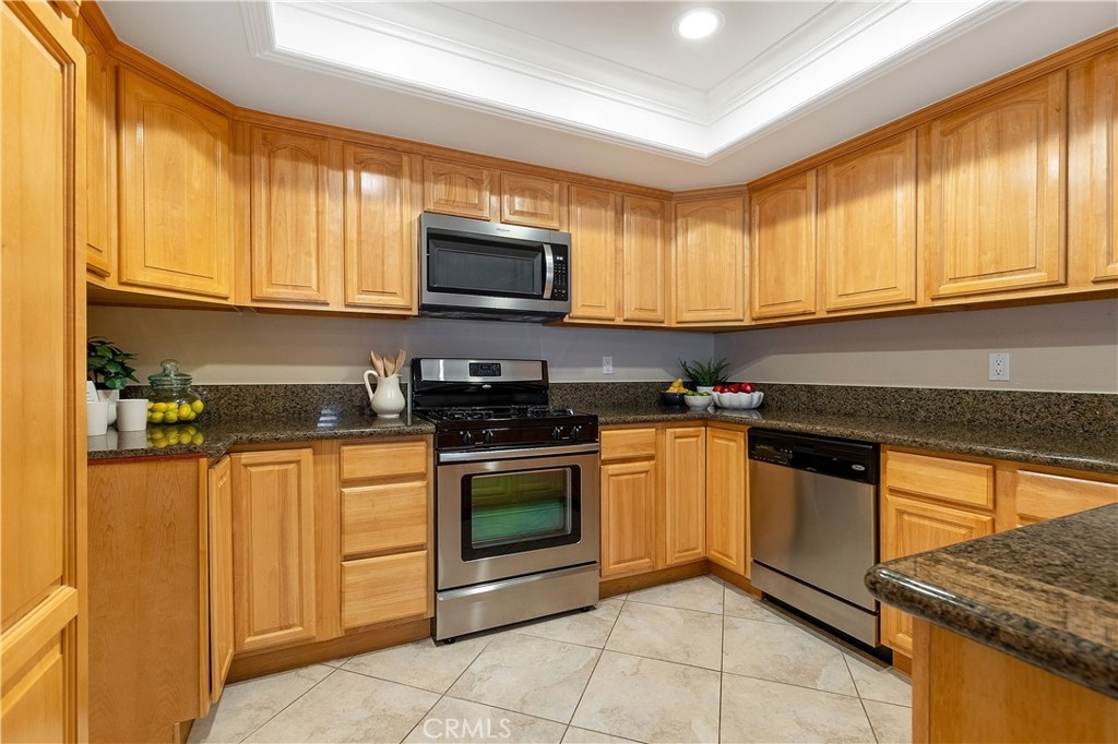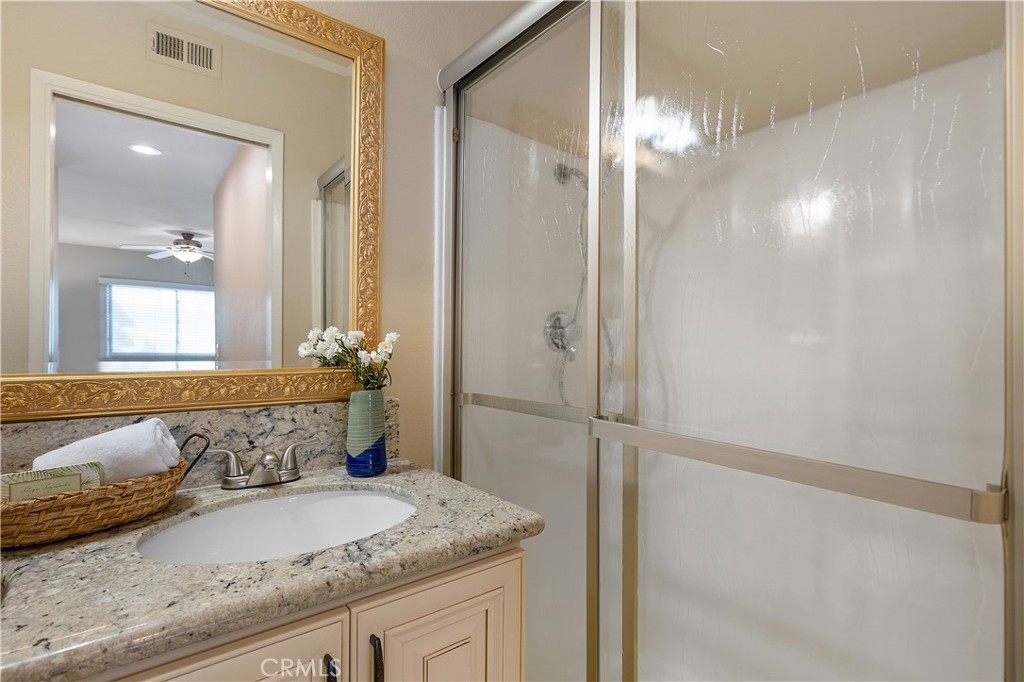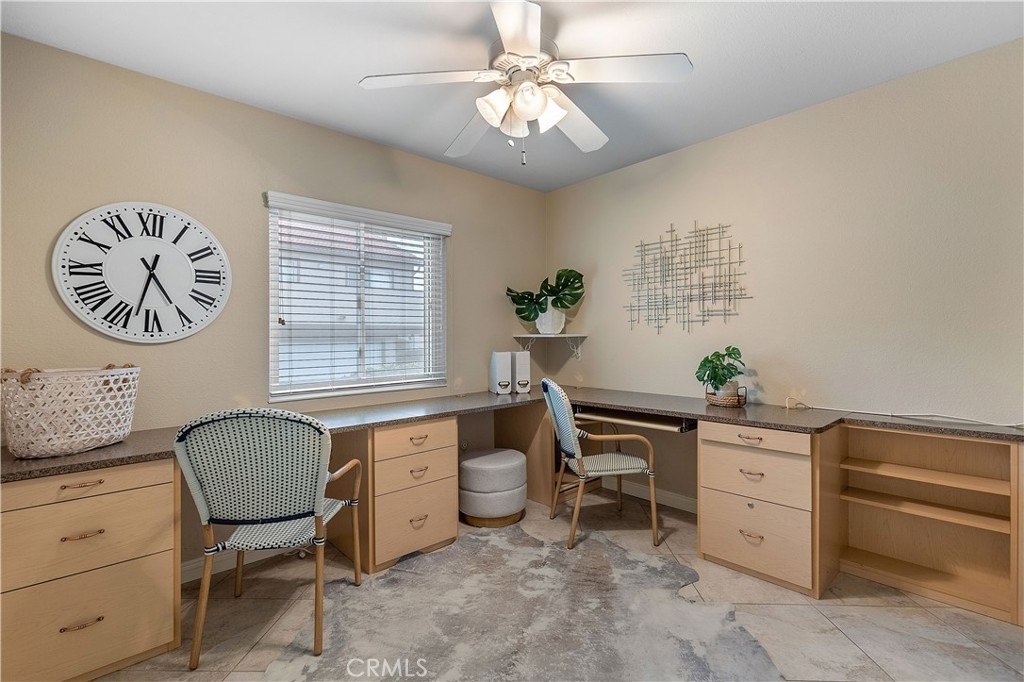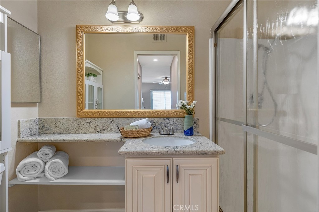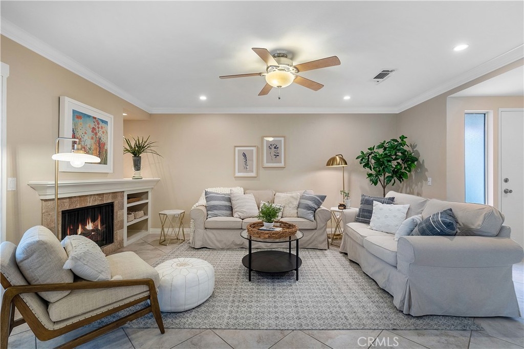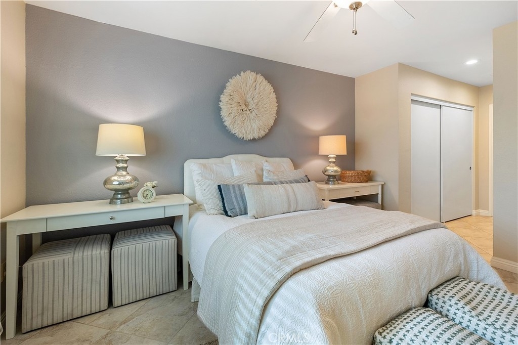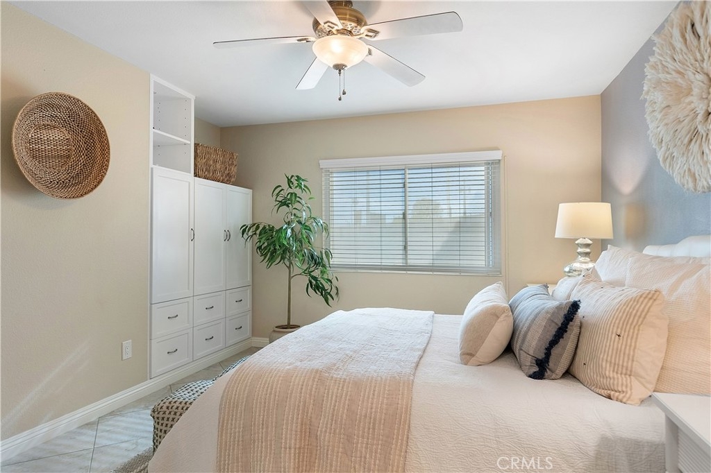 Welcome to the sought-after Village Grove Community located in West Corona. Step into this beautifully updated 3 bedroom, 2 bathroom SINGLE level home. Updates include tile floors throughout, dual pane windows outfitted with built in solar shades, granite countertops, kitchen cabinets with roll-out shelves in pantry with 2 lazy Susan corner cabinets, appliances, smart thermostat, heating and air conditioning systems. Once you walk in, you’ll find the inviting living space with recessed lighting, ceiling fan, cozy fireplace and dual pane sliding glass door which leads to the spacious back patio equipped with an alumawood patio cover. The primary bedroom features built-in cabinetry, a large hallway closet, an ensuite with a shower and updated vanity. Hallway bathroom includes a shower tub combination with an updated vanity as well. Oversized two car garage with plenty of storage in spacious cabinetry with direct access into the home leads you right into your dining area. Community amenities include a lake, clubhouse pool, tennis courts and basketball court.