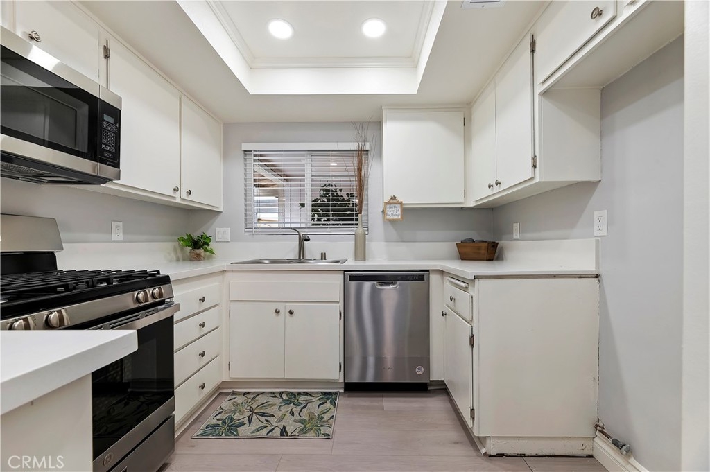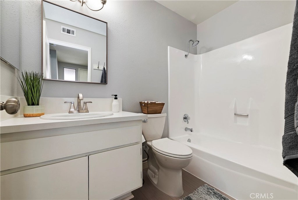 Single Story Village Grove Townhome!! This Home has been recently upgraded and remodeled. New Laminate Flooring, New Carpet, New Paint, New Molding, New Windows and Sliding Glass Door, New Appliances, New Bathroom Features, New Interior Doors and Hardware, New Light Fixtures and more! Spacious 2 bedroom, 2 bath, Large Living Room with Fireplace. Private Big Back Patio, and small front patio. Extra Large attached two car garage with direct access to house. You seriously could park two cars and few motorcycles in this garage comfortably. Common area includes, Lake, Pools, Tennis, Playgrounds, greenbelt and more. HOA responsible for exterior paint, maintenance and tile roof. Conveniently located Close to Shopping Centers, and easy access to the highway.