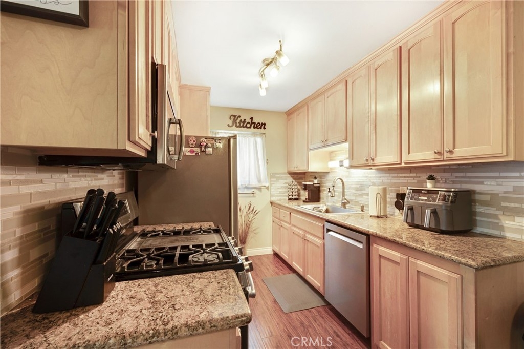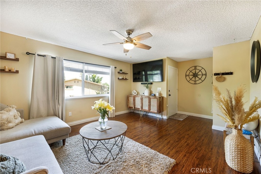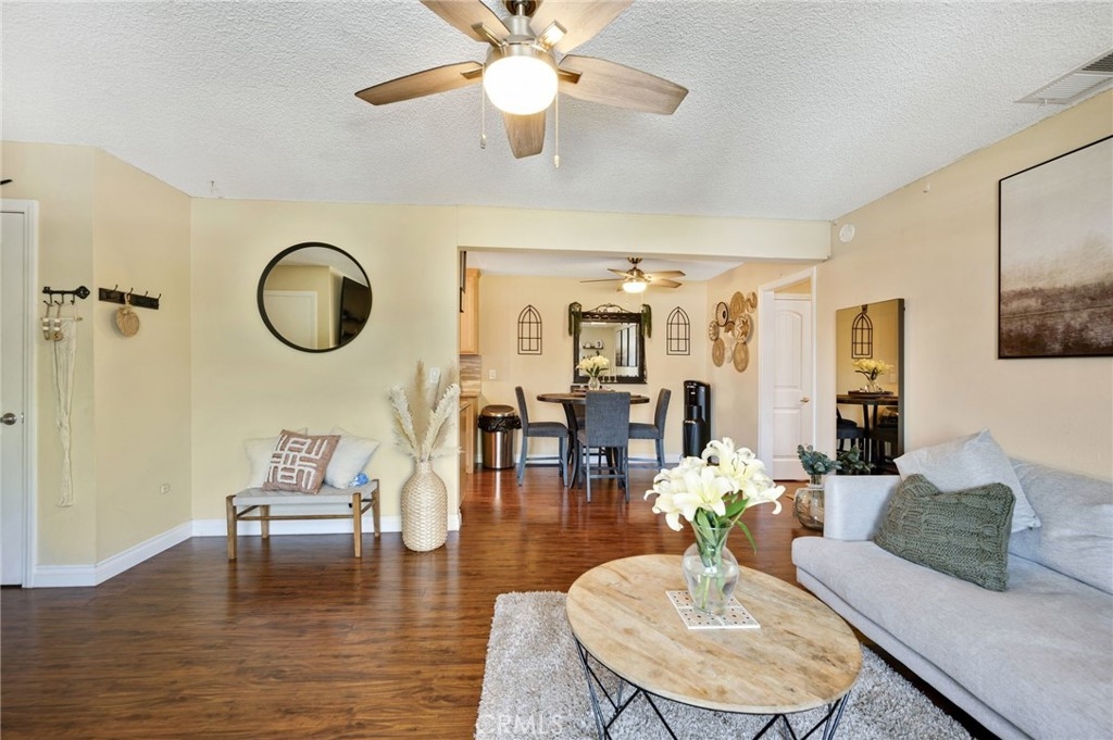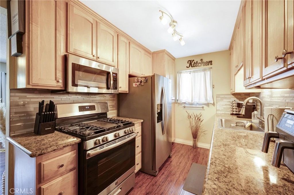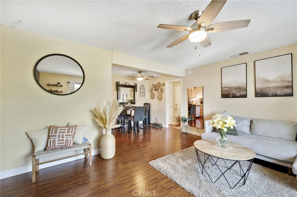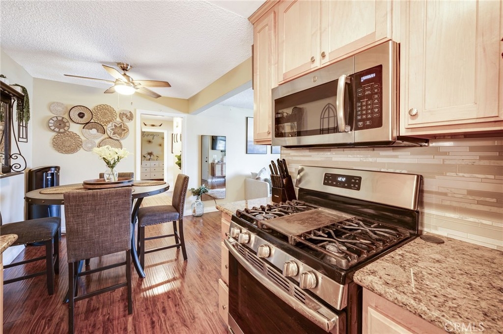 NEW in Village Grove community! Beautiful 2 bedroom upper unit condo upgraded with wood laminate flooring, marble flooring, newer windows, granite counter tops, ceiling fans, stainless steel appliances, walk-in master closet and spacious outdoor patio deck!!! Comes with 1 car garage, epoxy coated, and assigned guest space. Laundry room and garage space below unit. Lake, tennis, park, pool & picnic area close by!!! Near shopping centers, freeways & schools.
