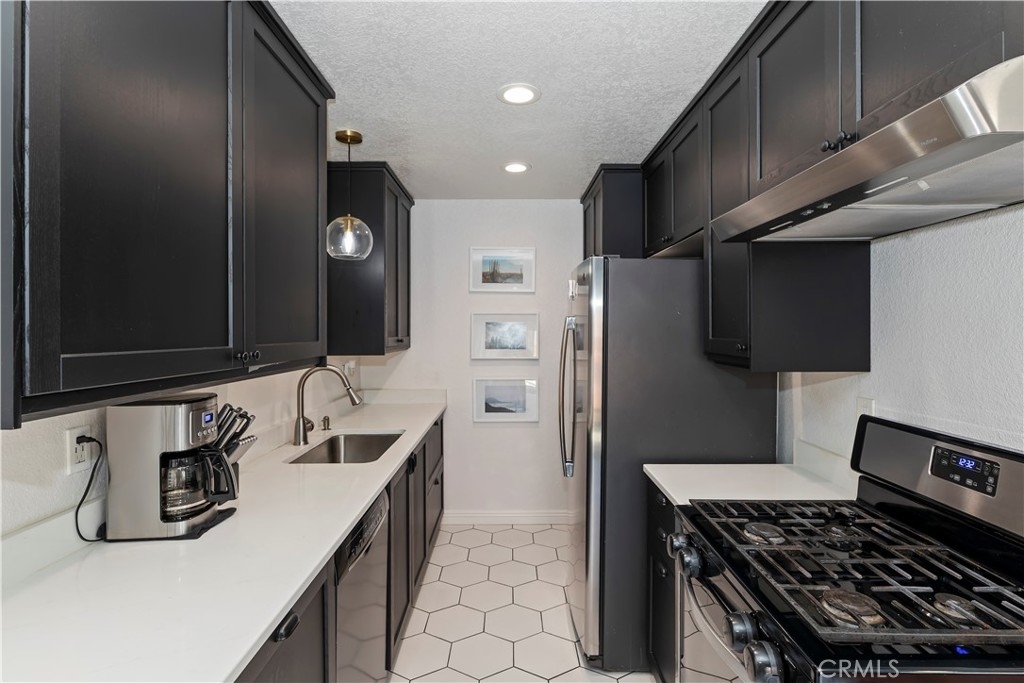 ****BACK ON THE MARKET!!! -- BUYER UNABLE TO PERFORM*** Welcome to this beautifully updated 2 bed, 1.5 bath end-unit condo with new AC in the heart of Corona -- where comfort, convenience, and lifestyle come together. Enjoy the privacy of your own attached garage plus an assigned parking space, all just steps from a wide greenbelt. Inside, the bright and airy layout features gorgeous laminate flooring, recessed lighting, and a spacious family room that opens to your private courtyard -- perfect for morning coffee or sunset vibes. The remodeled kitchen shines with quartz countertops, stainless steel appliances (YES, THE FRIDGE STAYS!), and custom hexagonal tile flooring, all flowing effortlessly into the dining area. Upstairs, you’ll find two generously sized bedrooms and a refreshed full bathroom with a modern vanity and lighting. The primary bedroom is spacious and serene, while the second bedroom makes a great guest room, nursery, or WFH setup. Tons of storage, too -- with a large under-stair bonus space, linen cabinet, and more. The pet-friendly community features lakefront paths where you can fish, relax by the water, or head out to the Skyline Trail for hiking or mountain biking. Amenities also include two pools, tennis courts, basketball, and more -- all just minutes from shopping, dining, and major freeways.