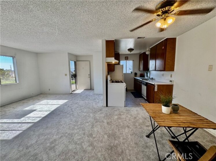 First time on market in over 25 years! Welcome to your own personal oasis! This 2 bedroom 1 bath end unit has no neighbors below just your detached garage! As you enter your humble abode upstairs you are greeted with a breeze and BBQ area for outdoor living. The new carpet brightens up the living room and opens up to the dining area. The primary bedroom is spacious with a walk in closet perfect for that special wardrobe! Your new home is walking distance to grocery shopping; a nail salon; barber; dry cleaning; tacos; dining and more! Welcome to the neighborhood!