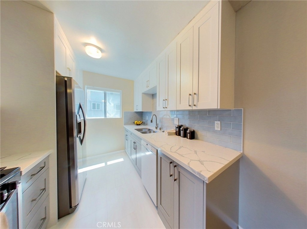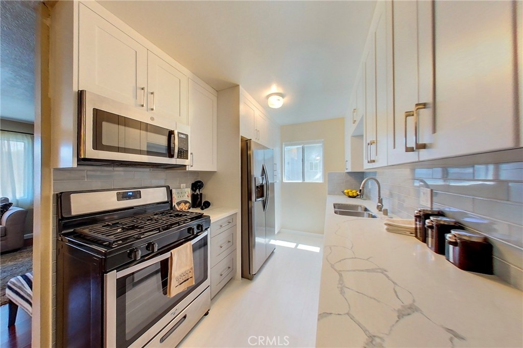 Spring is here and Summer on Border Lake boating and fishing or relaxing by the pool after a lively game of tennis, pickleball or basketball is just what the doctor ordered. Not all home owners associations are created equal and this one gives you a lot more recreation for your investment like...Catch & release fishing, seasonal pedal boats, BBQ's and pavilion rental for parties. This very popular "D" model with a large open second floor deck is now available with the completion of the newly remodeled kitchen and bathroom. Newer interior paint throughout complimented with warm laminate flooring in all the main living areas and stylish tile in the kitchen and bathroom. The air-conditioning blows nice and cold while the ceiling fans keep the air circulating. Stainless steel appliance and drapes will stay at the close of escrow. Their is a deep, reserved parking space right out front of your home and a private one car garage for your smaller parking needs below your unit. The garage is equipped with a remote opener and has a smaller walled off area in the back suitable for your workshop or storage shelving. The green belt behind the building is quite large and meanders down to a children's playground. There is plenty of grassy area too for those furry ones in the family. The community is pet friendly for smaller dogs. Image yourself at the county club from the breath taking aerial photo of the common areas at the adjacent Border Lake. This offering provides both inner beauty and a great outdoor space where you are free to roam and make new friends in your community. This one was worth waiting for, so please be among the first to see it, now that it is ready to view.