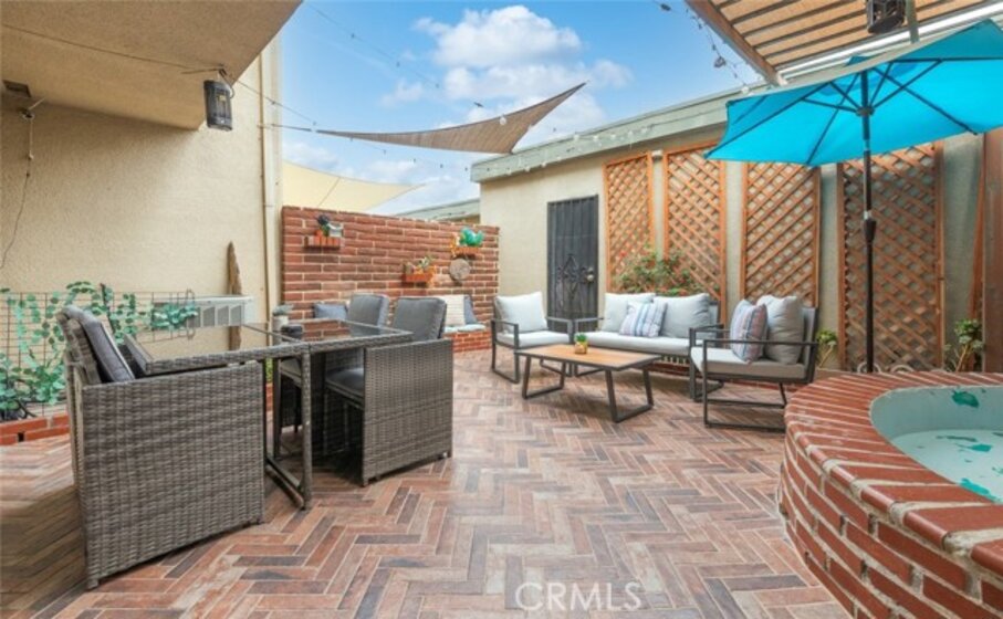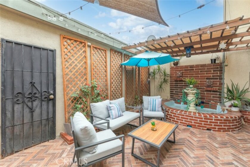 Discover the perfect blend of style, and comfort in this beautifully turn-key condo, nestled in the amenity-rich waterfront community of Village Grove with Low Taxes. As you step inside, you're greeted by a stylish foyer with eye-catching herringbone brick style flooring. The bright and open living area boasts vaulted ceilings, large windows with plantation shutters, tile and laminate flooring. The living room includes a converted space, ideal for a home office or 4th bedroom. The chef’s kitchen, complete with granite countertops and ample cabinetry, seamlessly connects to the dining area, where the sliding glass doors lead to your private courtyard. The first floor also features a convenient half bath and a laundry room with washer and dryer hookups. Upstairs, the primary bedroom offers a tranquil retreat with access to an updated bathroom featuring a walk-in shower with glass sliding door. Two additional bedrooms complete the upper level, providing plenty of space for family or guest. Step outside from the kitchen to your private courtyard, perfect for lounging, or barbecuing, with the soothing sound from the water fountain. The attached two-car garage adds extra convenience, while a playground and pool are located just steps from your front door. Village Grove offers a range of amenities, including lake with walking path, two pools, tennis & basketball courts, BBQ & playground area, pavilion rentals for parties, catch & release fishing, pedal boats rental, and nearby trails for walking & biking. With easy access to major freeways, toll roads, shopping, and entertainment, this condo presents an exceptional lifestyle opportunity. Don't miss out on this opportunity.