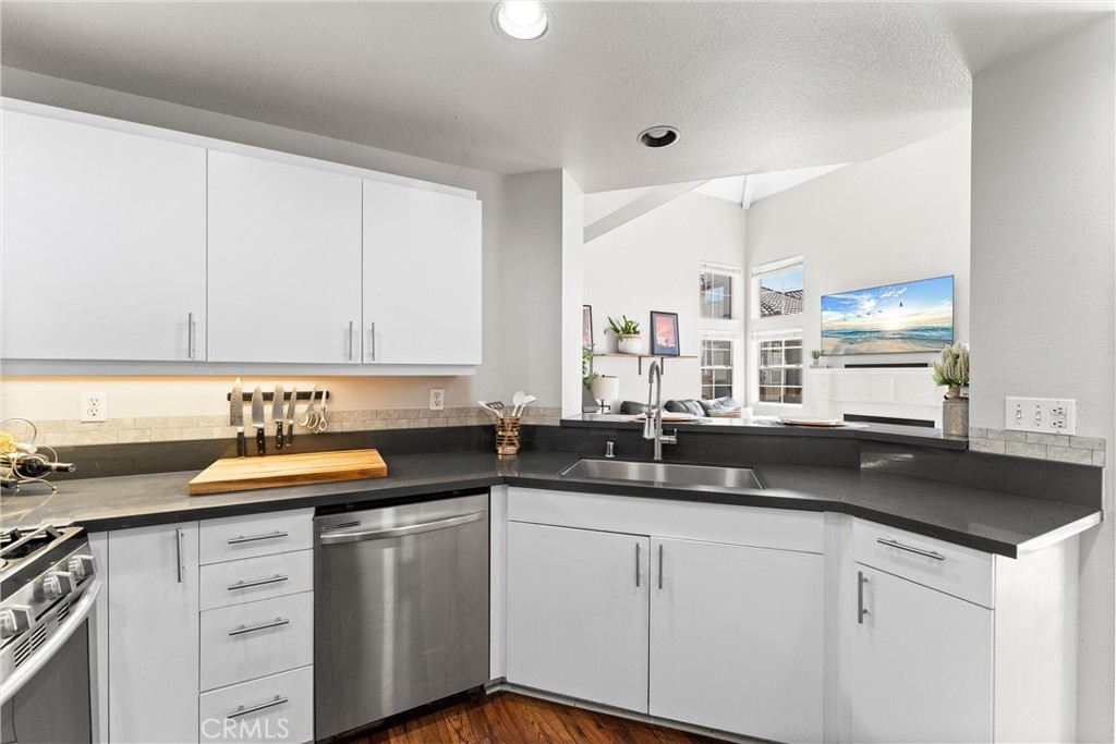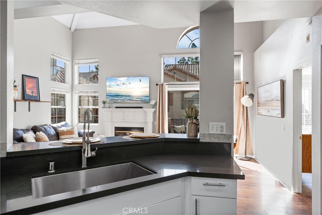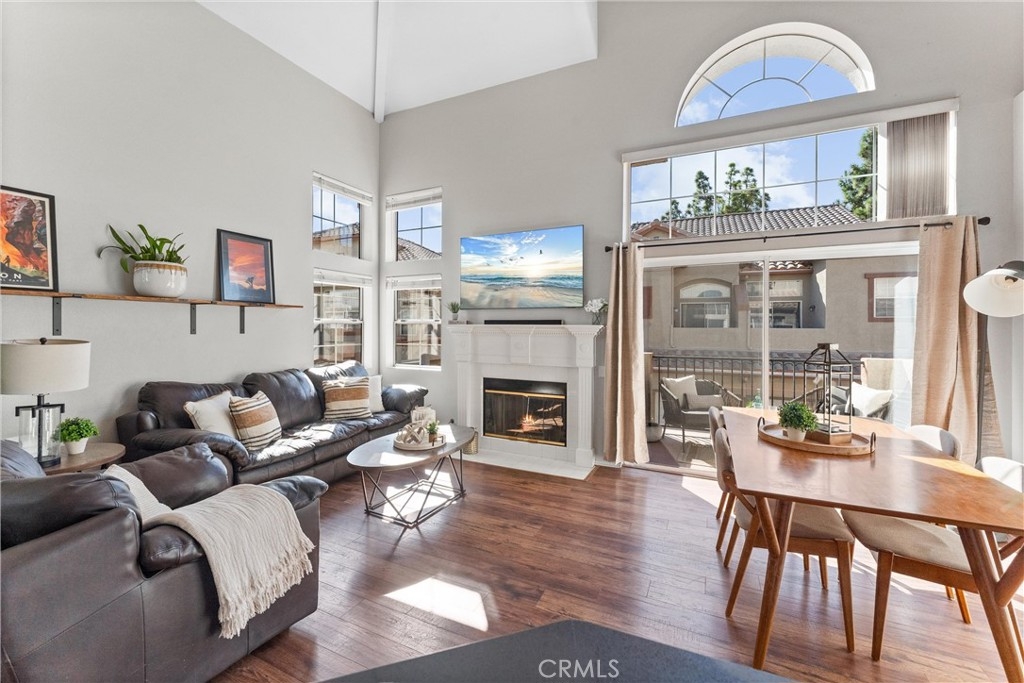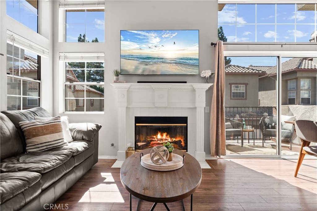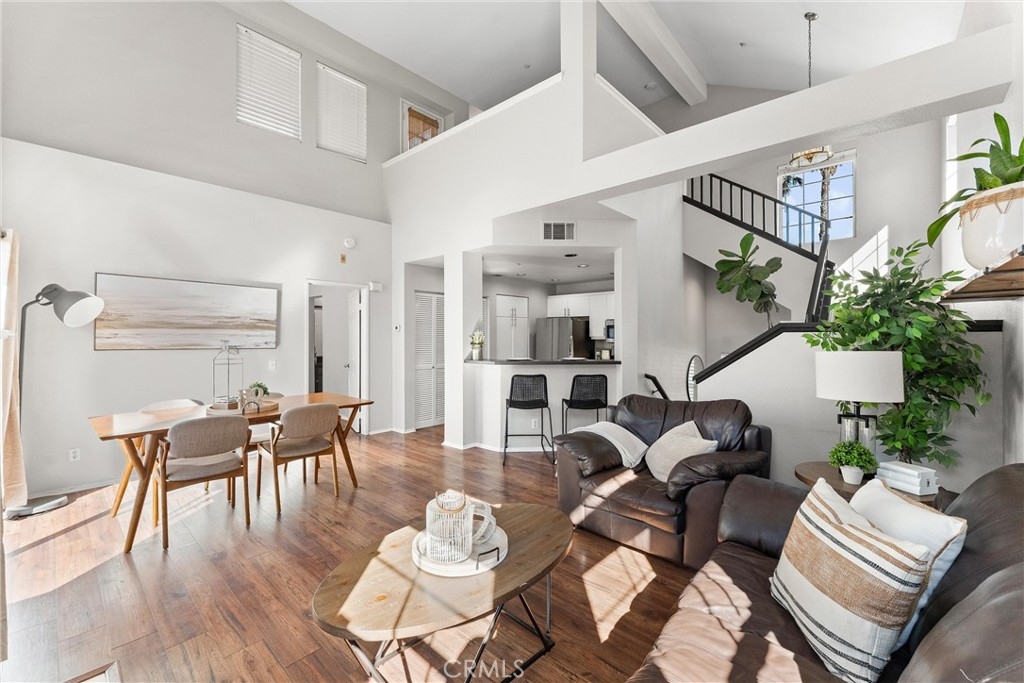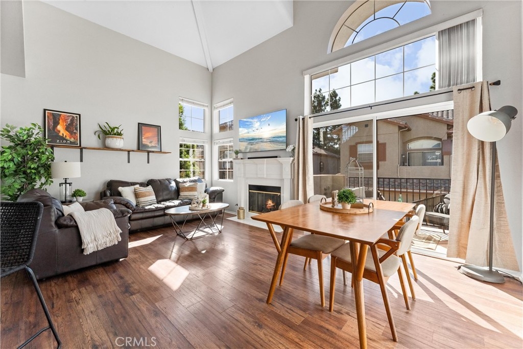 FHA approved! $15,000 Down Payment Assistance grant available for qualified buyers. Welcome to this beautifully upgraded two-story condo in the desirable Villaggio community of North Corona. Whether you’re a first-time homebuyer, looking to rightsize, or seeking a strong investment opportunity, this home offers the perfect blend of style, comfort, and convenience. As you enter the home you’ll find durable engineered wood flooring, vaulted ceilings, and an abundance of natural light streaming through the open floor plan. The dining area opens to sliding glass door that lead you to an inviting first-level balcony, seamlessly blending indoor and outdoor living. The main level features a generously sized bedroom with a private ensuite bathroom, dual sinks, quartz countertops, and a walk-in closet. Upstairs, a spacious loft offers endless possibilities to use as a second bedroom, home office, gym, or creative studio. The loft level also includes a private bathroom with step-in shower, quartz countertops, and a private secondary balcony for enjoying quiet outdoor moments. The spacious kitchen is designed for everyday living and entertaining, with an abundant of storage, quartz countertops, stainless steel sink, stainless steel appliances, Samsung refrigerator that is included with the home. An in unit laundry closet with additional storage located on the main level. Additional highlights include a private one-car garage located directly below the unit, along with convenient open carport-style parking. This corner unit is exceptionally private with no one above or below and only one shared wall. The well-maintained Villagio community provides resort-style amenities, including a sparkling pool, spa, BBQ picnic area, and landscaped greenways perfect for walks, gatherings or unwinding after a busy day. This home offers a convenient lifestyle in one of Corona’s most sought-after neighborhoods. The home is close to shopping and dining yet tucked away among a neighborhood of single family residences. Easy access to both the 91 and 15 freeways. 2925 Via Toscana #202 is an incredible opportunity you won’t want to miss!