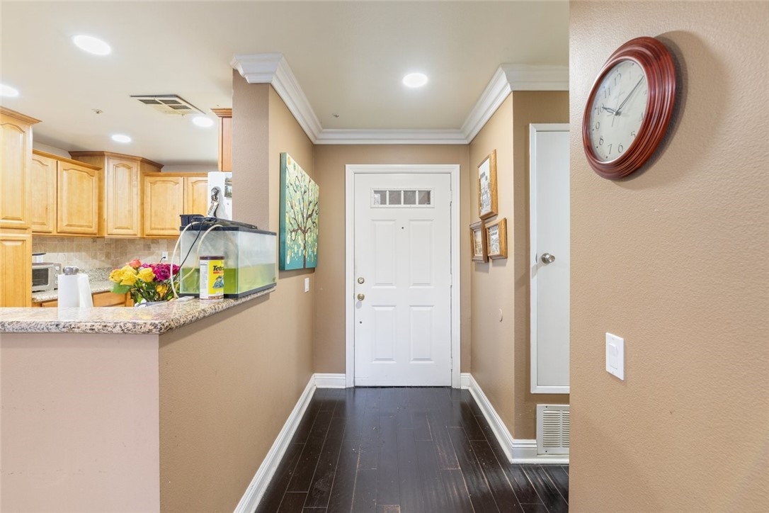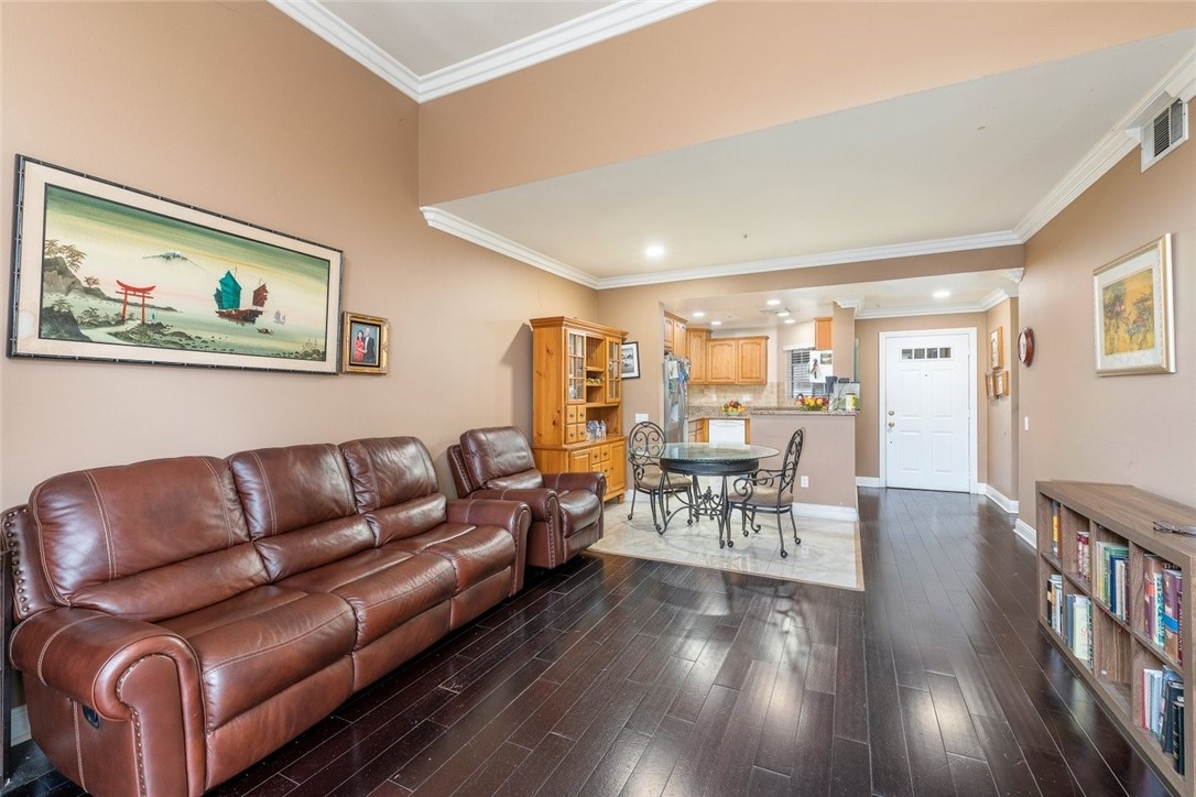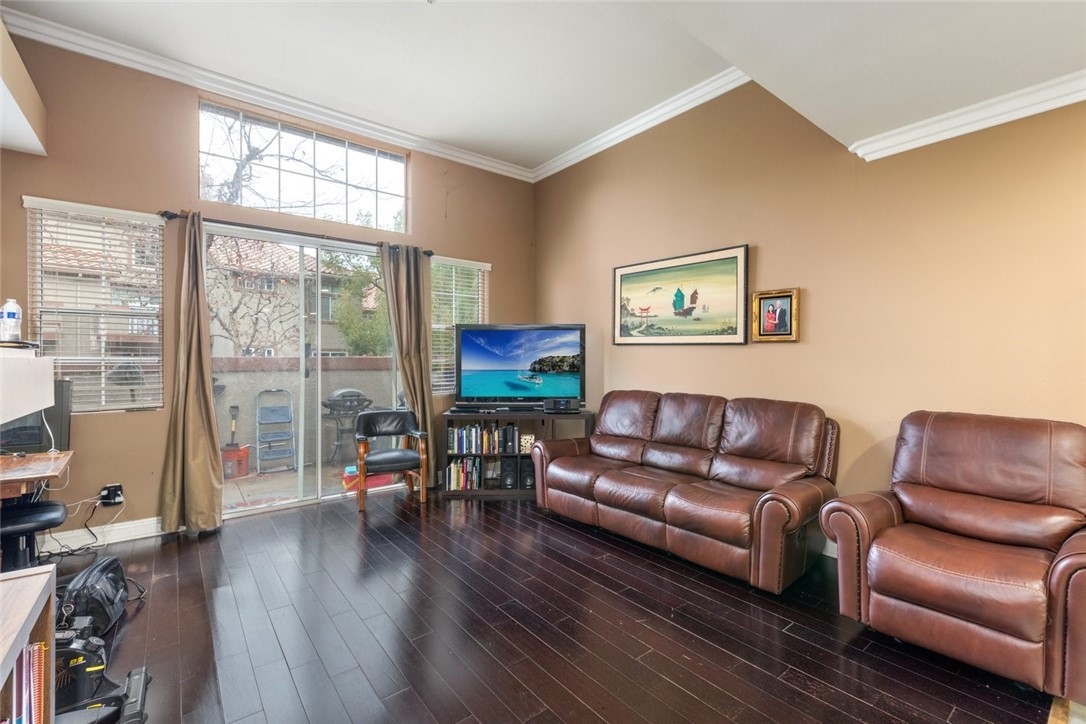 Welcome to your new home! This spacious 2 bedroom, 2 bathroom condo boasts 1,182 square feet of living space and is located in a prime location, just minutes from shopping centers and the 91 and 15 freeways. You'll love the modern kitchen, complete with granite countertops and all the amenities you need to cook up a storm. The open floor plan is perfect for entertaining, and the dark hardwood flooring adds a touch of sophistication to the space. The bedrooms are generously sized and offer plenty of storage space, and the bathrooms have been updated with stylish finishes. The unit also includes a patio accessible from the living room and primary bedroom, where you can relax and enjoy the fresh air. Plus, with on-site laundry and plenty of parking, you'll have everything you need right at your fingertips. HOA payments includes trash, water, and maintenance of the grounds throughout the community. Don't wait - schedule a tour today and make this wonderful condo your new home!