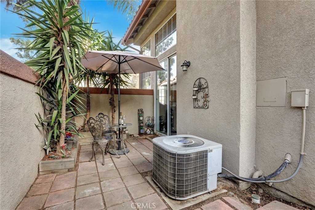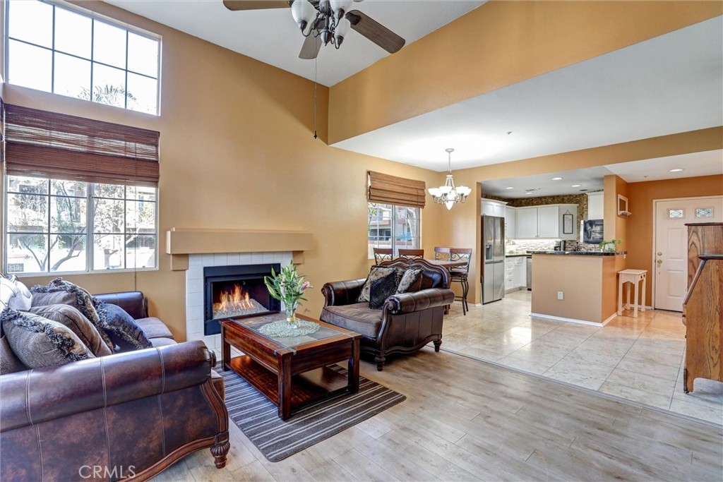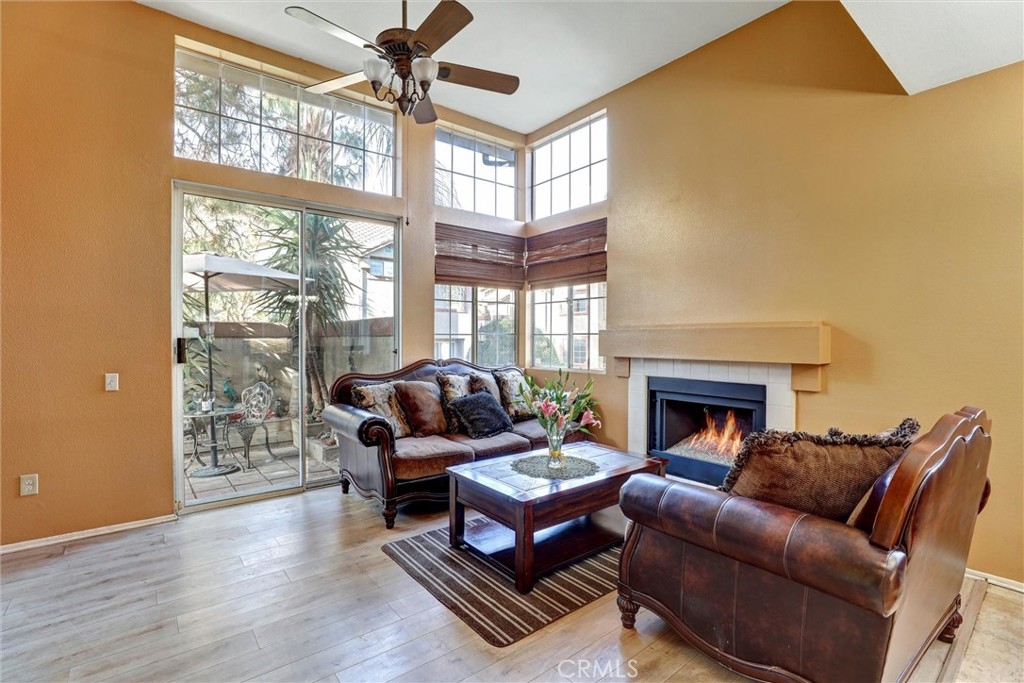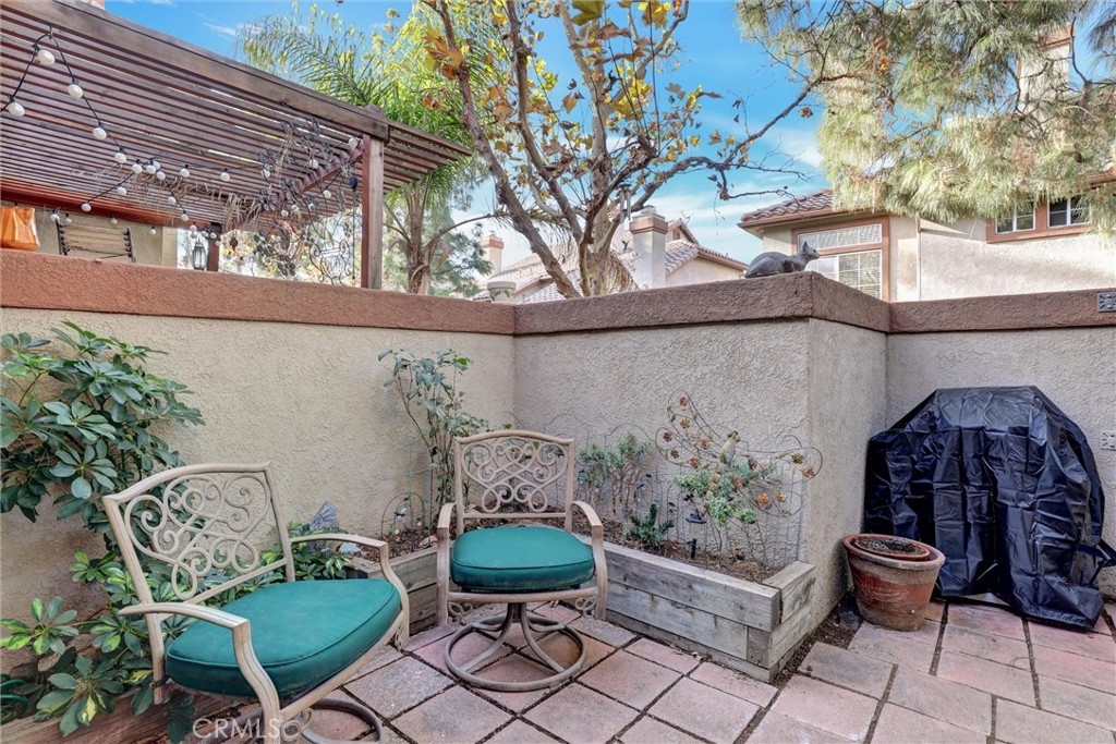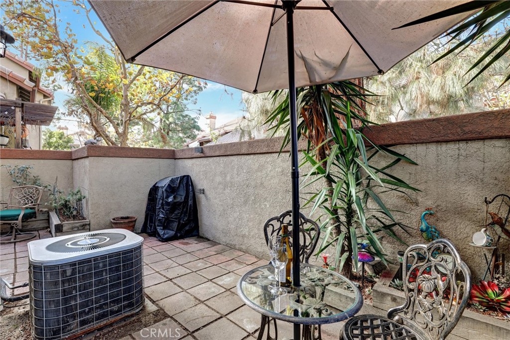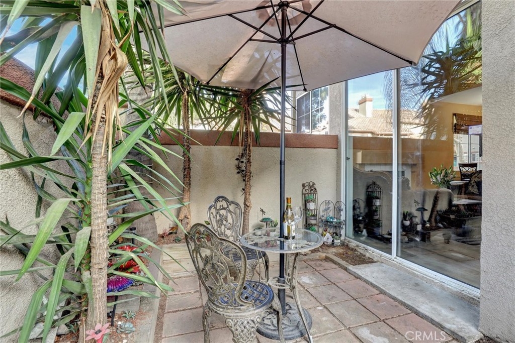 Location! Location! Location! The pride of ownership shines in this meticulously maintained home. Located in the highly desirable Villaggio community, nestled in the Corona Hills. So close to shopping, restaurants and with quick and easy access to the 91 & 15 Freeways it makes commuting, if needed, a breeze. This home boasts a newly remodeled kitchen with state-of-the-art appliances, water fixtures, high ceilings, indoor laundry and additional storage. Living room and Owner's Suite both open to a serene and peaceful patio area, perfect for entertaining or quiet reflection. Pets are allowed in this community, with grassed, park-like common areas. This home also includes plenty of parking with a one car garage and two additional parking spaces (3 in total+ guest spaces). Single-Story and a ground floor unit is a rare find. There are travertine tiles, glass jeweled gas fireplace, granite countertops in kitchen and baths. Trash, water & sewer are included in the HOA.