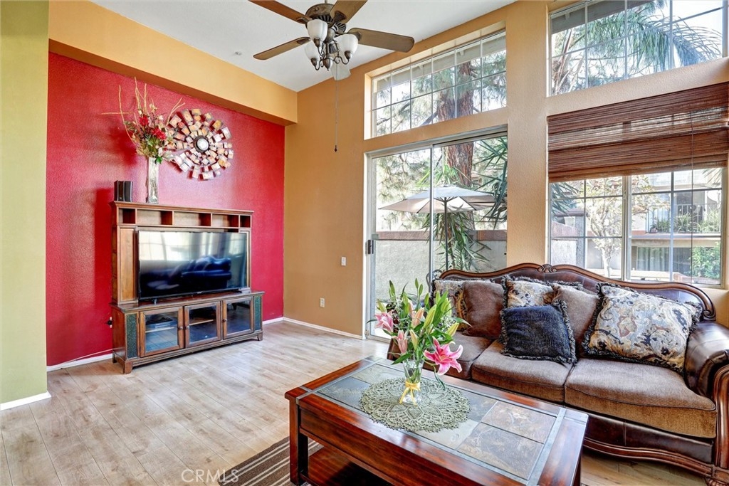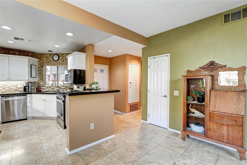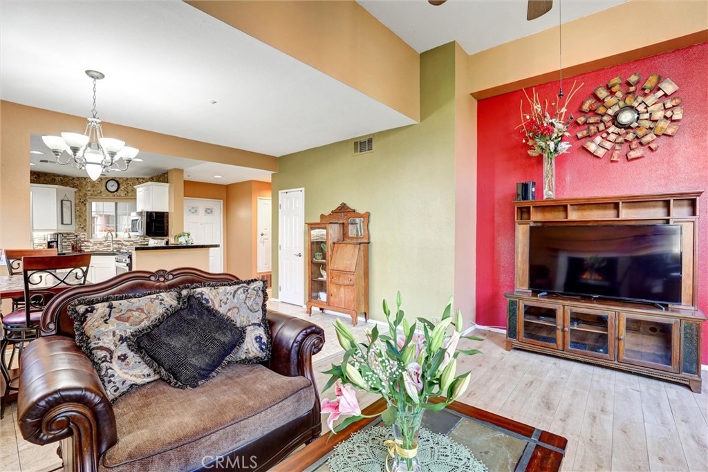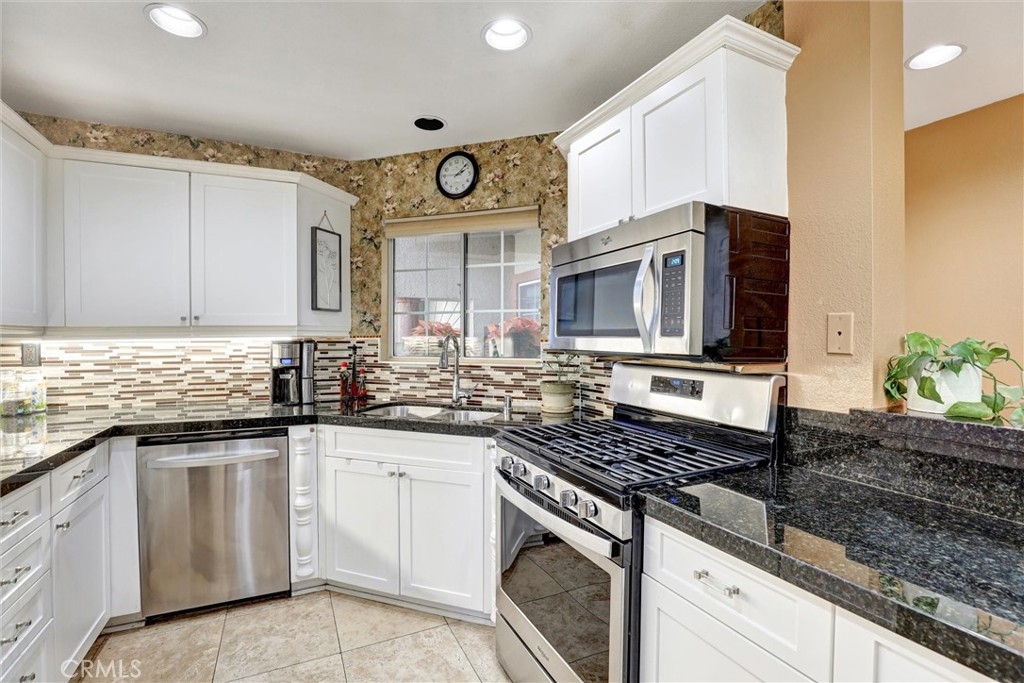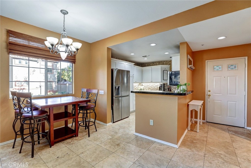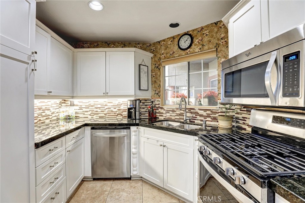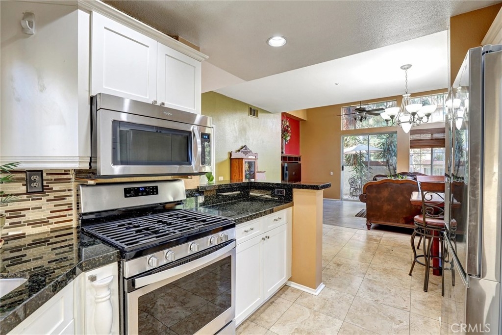 Location! Location! Location! The pride of ownership shines in this meticulously maintained home. Located in the highly desirable Villaggio community, nestled in the Corona Hills. So close to shopping, restaurants and with quick and easy access to the 91 & 15 Freeways it makes commuting, if needed, a breeze. This home boasts a newly remodeled kitchen with state-of-the-art appliances, water fixtures, high ceilings, indoor laundry and additional storage. Living room and Owner's Suite both open to a serene and peaceful patio area, perfect for entertaining or quiet reflection. Pets are allowed in this community, with grassed, park-like common areas. This home also includes plenty of parking with a one car garage and two additional parking spaces (3 in total+ guest spaces). Single-Story and a ground floor unit is a rare find. There are travertine tiles, glass jeweled gas fireplace, granite countertops in kitchen and baths. Trash, water & sewer are included in the HOA.