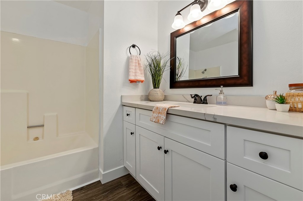 Calling all first time home buyers, down sizing buyers or investors! Adorable FHA/VA approved corner unit condo in great location in Corona! Welcome to this 2 bedroom, 2 bathroom upper level home conveniently located close to the 91 freeway and Orange County. This 1035sqft home features fresh new paint, brand new luxury vinyl flooring and baseboards, upgraded vanities in all bathrooms, spacious primary and secondary bedrooms, sliding door mirrored closets, storage closets, walk in pantry, kitchen nook and a gorgeous balcony off the living room with mountain views. Near Brentwood Park, Border Lake, 2 blocks from the local Stater Brothers, adjacent to guest parking and near several great eateries! This cute home is ready for its new homeowners!