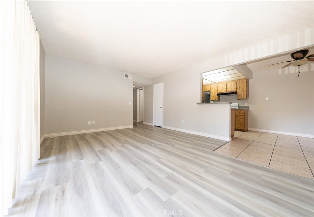 Welcome to your end-unit condo that perfectly blends comfort, convenience, and modern updates in a desirable community setting. Step inside to discover an inviting open floorplan designed for effortless living and entertaining. The spacious living room seamlessly flows from the kitchen, creating a bright and airy atmosphere ideal for gatherings or relaxing evenings at home. A separate dining room provides the perfect space for formal meals or casual get-togethers, while the end-unit location ensures added privacy and natural light. This move-in-ready gem comes equipped with thoughtful upgrades, including a new refrigerator, AC unit for year-round comfort, and new flooring throughout that adds a fresh, contemporary touch. Laundry day is a breeze with the included washer and dryer tucked away in its own dedicated room off of the kitchen, offering ultimate convenience. Step outside to your own private patio – a serene retreat for morning coffee, al fresco dining, or simply enjoying the outdoors. Outside, enjoy the security of gated parking with an assigned carport plus a second dedicated space. The community amenities shine with a sparkling pool and spa, perfect for entertaining or relaxing.