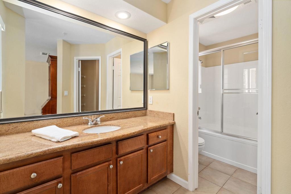 Gorgeous upgraded condo in the upscale community of Triana at Corona Ranch. Highly sought-after first-floor unit that has two bedrooms with two en-suite bathrooms. The kitchen has granite countertops and stainless steel appliances. There is a separate dining area as well. Open concept floor plan with an oversized living room with sliding door out to a spacious patio. The primary and guest bedroom have a private patio and upgraded bathrooms with granite countertops and large walk-in closets. The bathrooms have shower/tub combos with a linen closet. The community is gated with a pool, spa, bbq area, and clubhouse. The association dues cover water, trash and sewer as well as the other amenities mentioned. Don't miss this incredible opportunity to own in the beautiful community of Corona Hills.