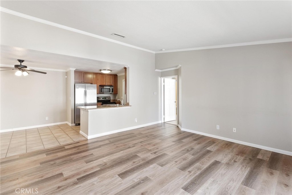 Beautiful Triana condo located in the desirable gated community of Corona Ranch. This sought-after Verona model features two spacious primary suites and two full bathrooms, each suite offering walk-in closets and private balconies, plus an additional balcony off the living room with vaulted ceilings that bring in natural light. The open kitchen includes a refrigerator, and the home also comes equipped with a washer and dryer for added convenience. Residents enjoy resort-style amenities including a pool, spa, fitness center, and clubhouse with kitchen and pool access for gatherings. Ideally located within walking distance to top-rated McKinley Elementary and close to shopping, dining, the 15 and 91 freeways, and the Corona Metrolink Station. This second-level condo includes an extra-long one-car garage with generous storage space, and HOA dues include water and trash.