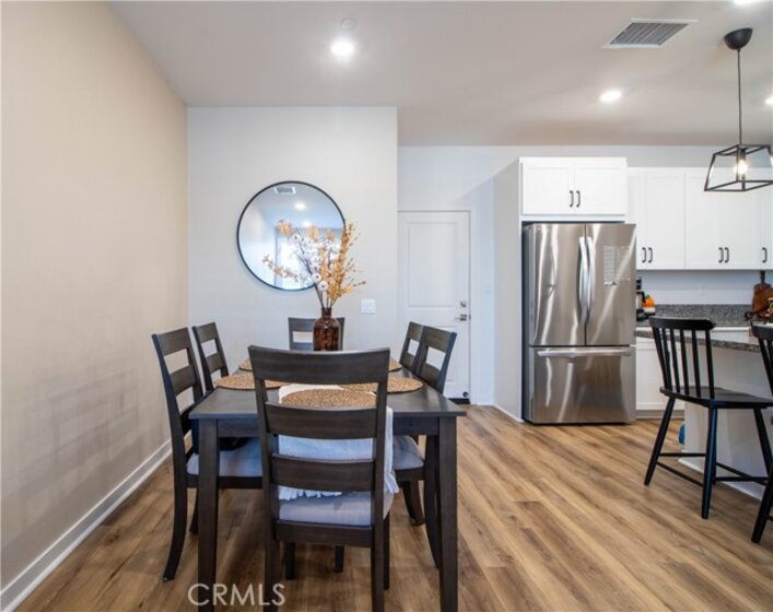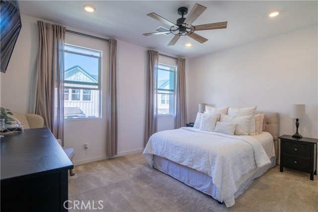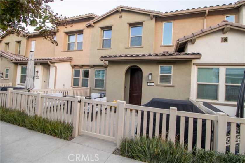 Welcome to this beautifully upgraded Spanish-style townhome in the gated Bedford community of South Corona. This move in ready 3 bed, 2.5 bath home offers paid-off solar, a spacious fenced patio, and an ideal interior location within the Averly neighborhood. This home is fully move-in ready with upgraded luxury vinyl plank flooring, modern finishes, and LG stacked washer and dryer included. Nothing left to do but move in and enjoy the Bedford lifestyle. Call or text for more information. Step inside to an open-concept living area featuring recessed LED lighting, custom solid wood shutters, and a bright, inviting layout. The modern kitchen includes granite countertops, stainless steel GE appliances, white shaker cabinets with matte black hardware, and a large island perfect for entertaining. Upstairs, you’ll find three well-sized bedrooms, upgraded square-edge quartz countertops in both bathrooms, and the conveniently located LG washer/dryer. The attached 2-car garage is EV-charger ready. As a resident of Bedford, you'll enjoy access to world-class amenities including multiple pools, spas, fitness center, Sidecar Bar, yoga lawn, fire pits, BBQ areas, game courts, dog parks, and community event spaces. Exterior maintenance and insurance are covered through the Averly HOA. Located near top-rated schools, Dos Lagos Shopping Center, Amazon Fresh, EOS Fitness, and major commuting routes — this home combines modern living, convenience, and unmatched community perks.