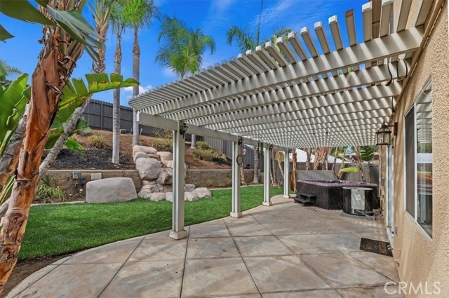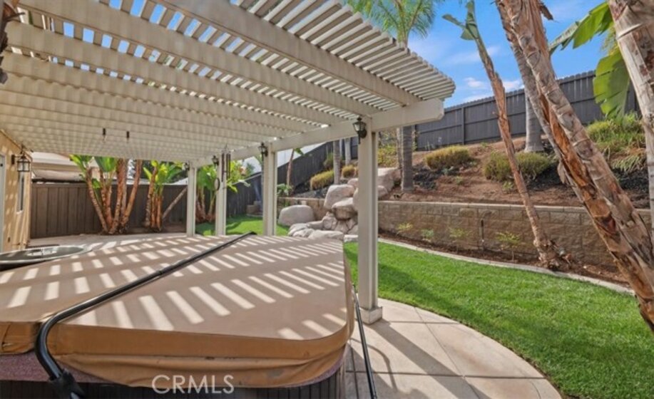 Welcome to this charming single family home nestled in a quiet gated community of Ashwood in South Corona. Boasting a flexible floor plan and desirable features, this residence balances comfort and style. With a blend of indoor and outdoor living spaces, this home is ideal for both entertaining and everyday living. Features include 4 bedrooms and 3 baths with one of the bedrooms and baths downstairs. Highlights include high vaulted ceilings upon entry with a very open-concept layout connecting the living, dining and kitchen areas - a fireplace in the family room adds warmth and ambiance. Central cooling and heating provide year round comfort. The rear yard offers much privacy with mature palm trees, a calming waterfall coming off the slope, and a private above ground spa to soak in and enjoy that glass of wine at the end of a long day. Situated in the 92881 zip code, this home in a well established location of South Corona, literally within 2 blocks of Santiago High School and Orange Elementary School - also close to shops, entertainment and nearby to both the Crossings and Dos Lagos. Hurry on this one as it may not last.