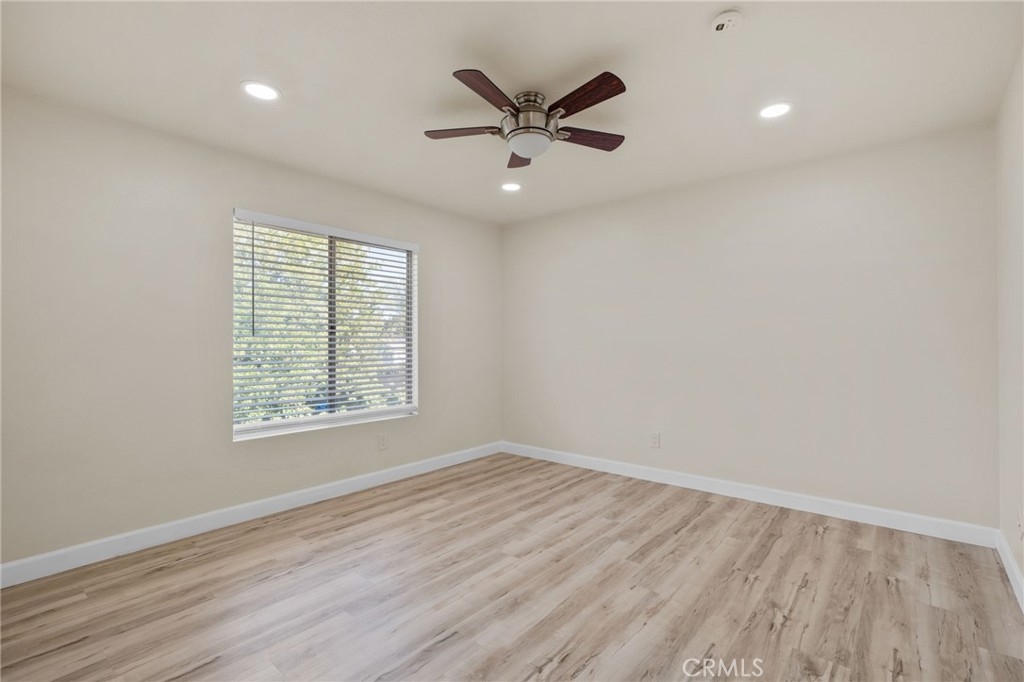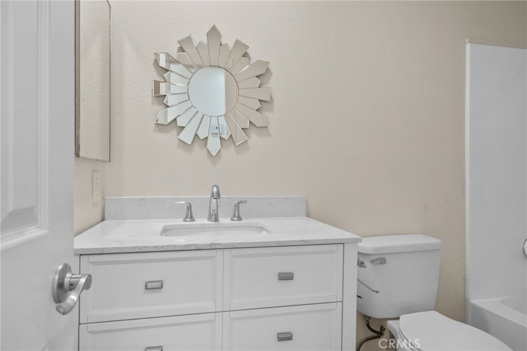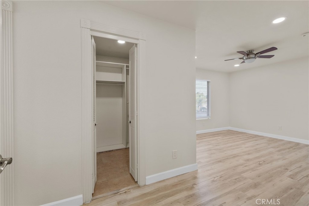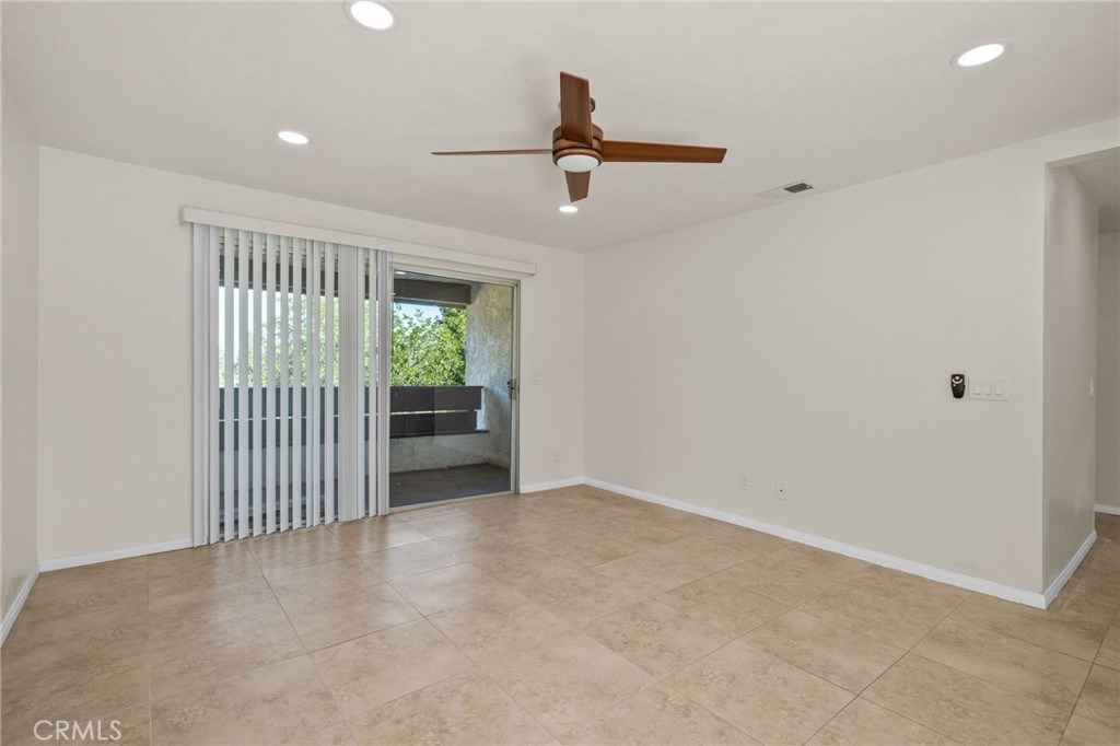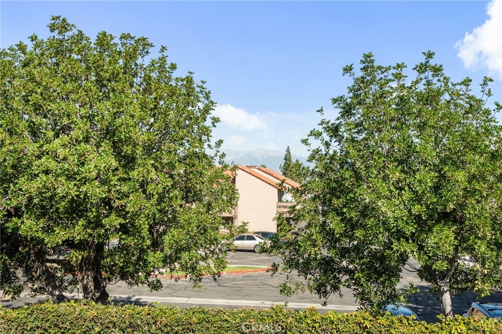 Welcome to this beautifully maintained upstairs condo offering comfort, style, and an abundance of natural light. Freshly painted throughout, this open and bright home features tile flooring that flows seamlessly through the main living areas, creating a clean and inviting space perfect for everyday living and entertaining. The spacious living room opens to sliding glass doors that lead out to your private balcony — the perfect spot to enjoy your morning coffee or unwind in the evening. Just off the living area, the quaint kitchen offers a pantry for extra storage, and a cozy breakfast nook that makes mealtime feel warm and inviting. This home features two generously sized bedrooms. The primary suite is a true retreat with vinyl flooring, fresh paint, ceiling fan, blinds, and custom built-in shelving. You’ll love the walk-in closet and the beautifully updated primary bathroom complete with a modern walk-in shower. The secondary bedroom is also impressively sized and is complemented by its own updated bathroom, offering comfort and privacy for guests or family members. Additional highlights include a detached one-car garage located below the unit for convenience and extra storage. The well-maintained community offers a sparkling pool, perfect for relaxing and enjoying sunny days. Move-in ready and thoughtfully updated, this upstairs condo combines functionality, comfort, and charm — a wonderful place to call home.