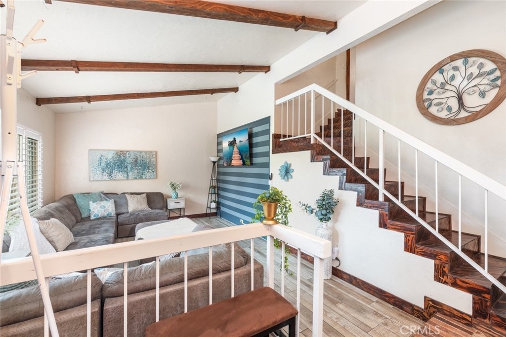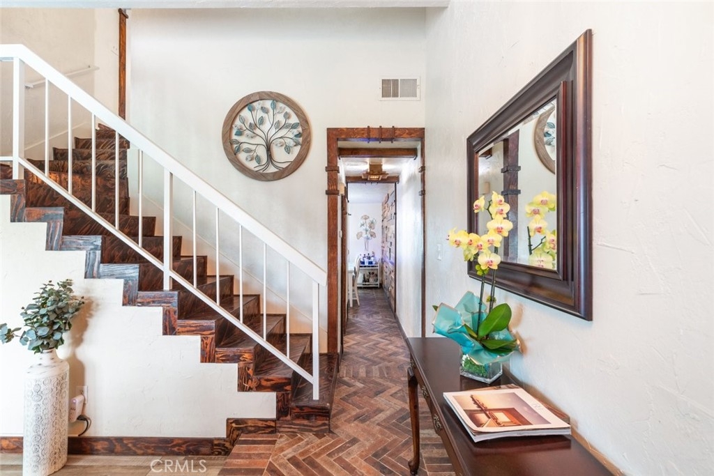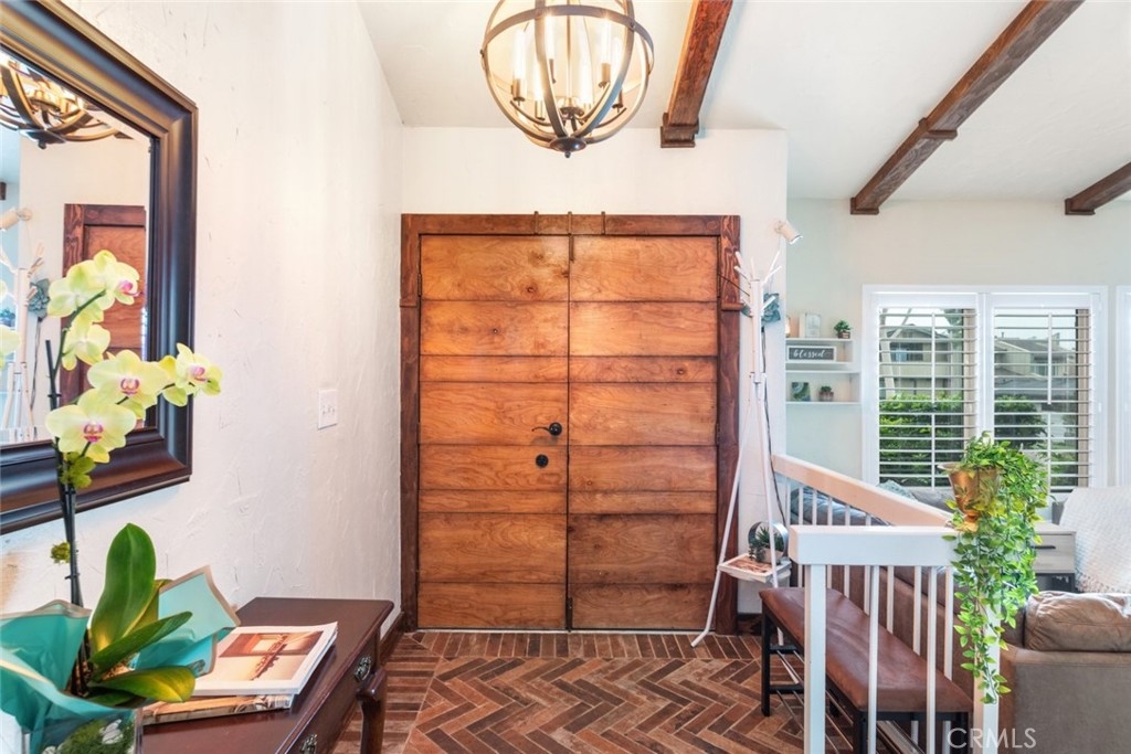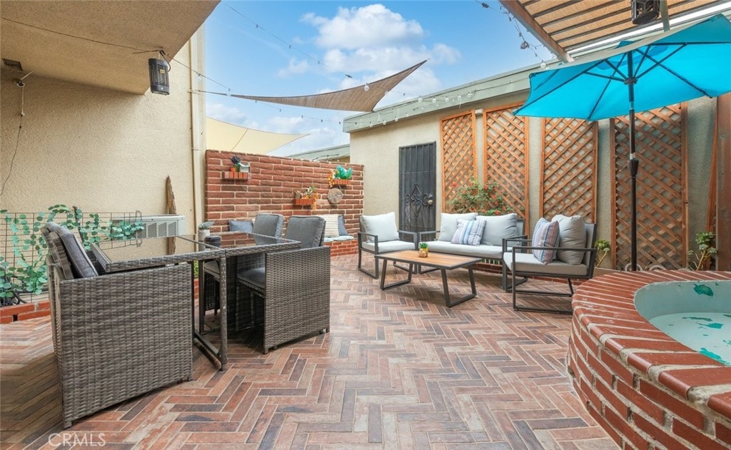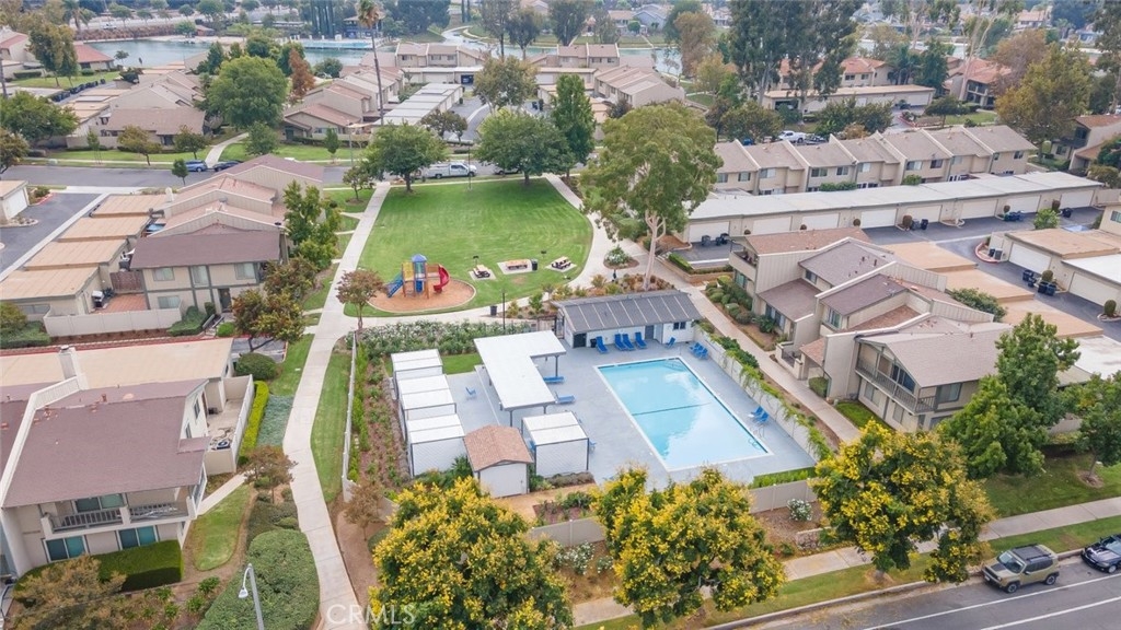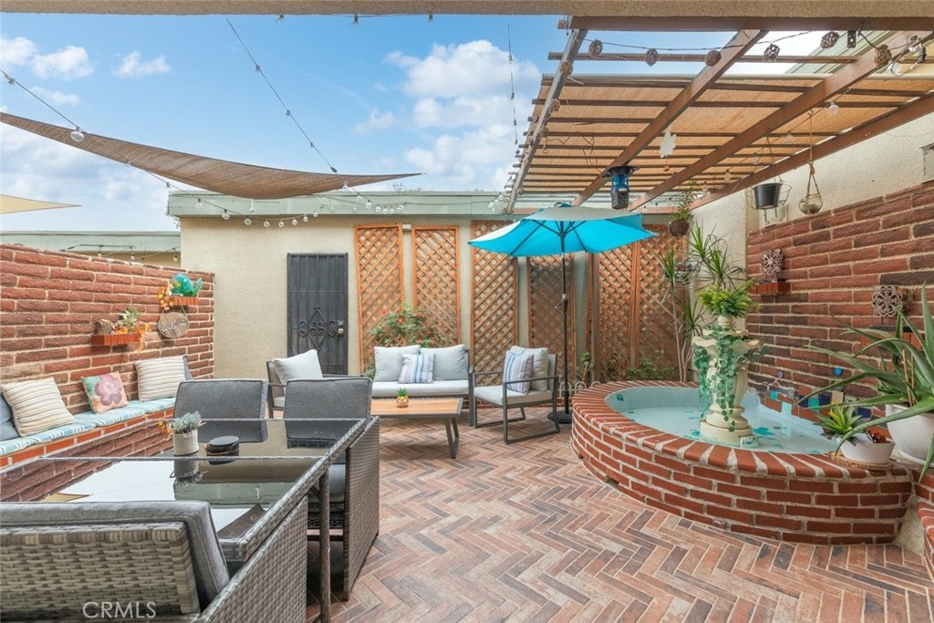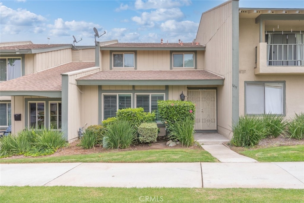 Discover the perfect blend of style, and comfort in this beautifully turn-key condo, nestled in the amenity-rich waterfront community of Village Grove with Low Taxes. As you step inside, you're greeted by a stylish foyer with eye-catching herringbone brick style flooring. The bright and open living area boasts vaulted ceilings, large windows with plantation shutters, tile and laminate flooring. The living room includes a converted space, ideal for a home office or 4th bedroom. The chef’s kitchen, complete with granite countertops and ample cabinetry, seamlessly connects to the dining area, where the sliding glass doors lead to your private courtyard. The first floor also features a convenient half bath and a laundry room with washer and dryer hookups. Upstairs, the primary bedroom offers a tranquil retreat with access to an updated bathroom featuring a walk-in shower with glass sliding door. Two additional bedrooms complete the upper level, providing plenty of space for family or guest. Step outside from the kitchen to your private courtyard, perfect for lounging, or barbecuing, with the soothing sound from the water fountain. The attached two-car garage adds extra convenience, while a playground and pool are located just steps from your front door. Village Grove offers a range of amenities, including lake with walking path, two pools, tennis & basketball courts, BBQ & playground area, pavilion rentals for parties, catch & release fishing, pedal boats rental, and nearby trails for walking & biking. With easy access to major freeways, toll roads, shopping, and entertainment, this condo presents an exceptional lifestyle opportunity. Don't miss out on this opportunity.