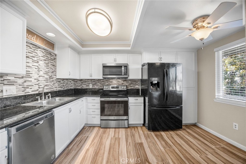 Beautiful 2 bedroom, 1 bathroom, single story condo in the well-maintained community of The Lakes at Corona! Enjoy an updated kitchen and laminate wood flooring. The kitchen offers black granite countertops, a custom tile backsplash, and white cabinetry. Both bedrooms feature ample closet space and a shower-in-tub in the bathroom with custom tile. Sliding doors lead to the private neighborhood view balcony. Additional property highlights include an in-unit laundry closet and assigned carport parking. Community amenities include a swimming pool, an outdoor barbecue, a picnic area, tennis court, and a clubhouse. Within walking distance to Border Lake and Brentwood Park. Convenient to local schools, shopping, and major freeways!