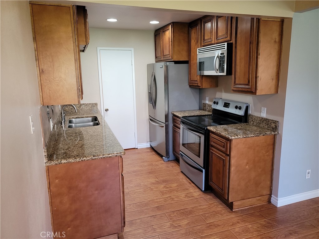 New Years Resolution Time!! STOP renting & FINALLY own your own home in the wonderful community of South Corona! This beautifully upgraded ground floor 1 Bedroom/1 Bath home, located in the prestigious Windwood community, is just what you’ve been waiting for! As you step inside & pass the elegant decorative molding around the entry door, you will notice a spacious home with an open floor plan. An oversized master bedroom and a LARGE walk-in closet...plenty of space to store your prized wardrobe and shoe collection! Upgrades to the home include, granite countertops, kitchen cabinets and bathroom vanity, custom backsplash, a combination of laminate wood and elegant travertine style tile floors, crown molding, stainless steel appliances, recessed lighting, ceiling fans, and upgraded fixtures throughout. Kitchen has a spacious walk-in pantry to store your food items and other kitchen essentials. The Windwood community includes gated parking, pool, spa, BBQ'S, clubhouse, grounds maintenance, and onsite laundry facilities. Every unit comes with a carport and one dedicated open parking space. HOA fees covers insurance for the building, water, trash and sewage. Conveniently located near Border Lake, schools, parks, hiking trails, shopping, the 15 and 91 freeways...minutes from Orange County! What more could you ask for?