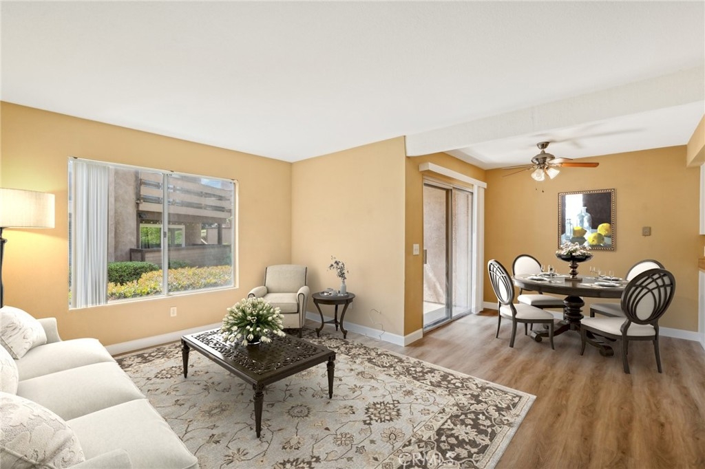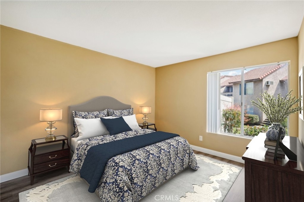 Charming Windwood Community Condo!!! Location, Location, Location! This delightful one-bedroom, one-bath condo in the highly sought-after Windwood Community is perfectly situated just minutes from Orange County. Enjoy the convenience of being close to everything while living in a serene, gated community. This ground-floor unit boasts wood-like floors throughout, offering a warm and inviting atmosphere. The spacious bedroom includes a generous walk-in closet for ample storage. Step outside to enjoy the beautiful, park-like surroundings and take a dip in the nearby pool. The community is designed for leisure and relaxation. Benefit from a covered carport and an additional designated parking space, ensuring your vehicles are always protected and easily accessible. The Homeowners Association (HOA) covers the cost of water and trash, making your living experience even more convenient and hassle-free. The location is unbeatable, with close proximity to Border Lake, perfect for peaceful walks and outdoor activities. Nearby schools, parks, and hiking trails provide plenty of options for recreation and outings. Easy access to shopping and dining caters to all your daily needs, while quick and convenient access to the 15 and 91 freeways makes commutes a breeze. This charming condo offers the perfect blend of comfort, convenience, and community. Don’t miss out on this fantastic opportunity to own a piece of the highly desirable Windwood Community!
