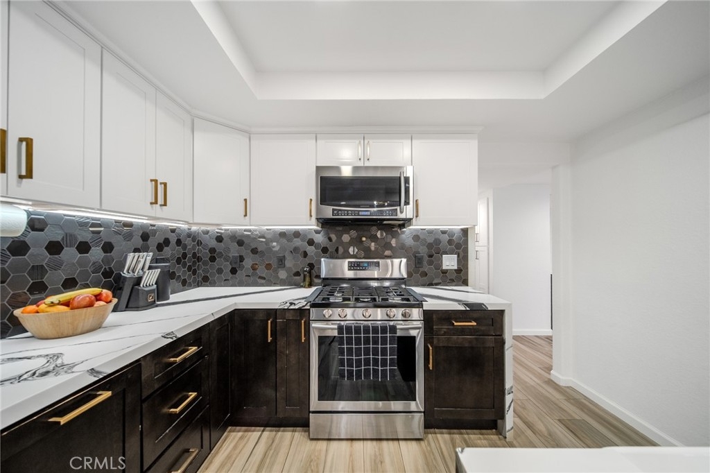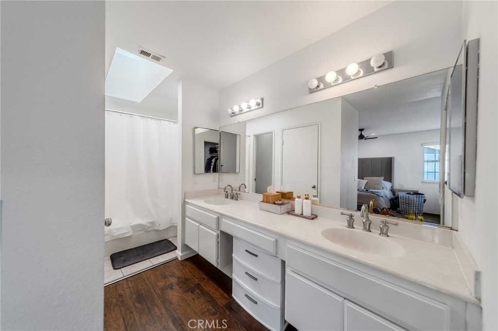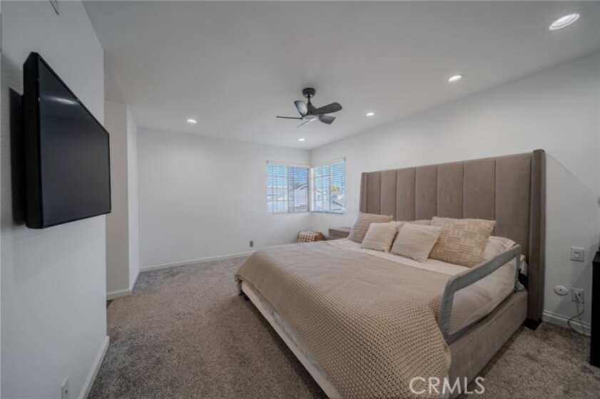 Welcome to this beautifully upgraded 3-bedroom, 2-bath home where modern comfort meets stylish living. Vaulted ceilings and natural light fill the open-concept living area with a cozy fireplace, flowing into a chef-inspired kitchen with quartz counters, white shaker cabinets, stainless steel appliances, and a breakfast bar. The main-level bonus room/office opens to lush greenery, while upstairs a versatile loft adds extra living space. The primary suite features a walk-in closet and ensuite with dual sinks and skylight. Other highlights include a two-car garage, new HVAC, dual-pane windows, water heater, and a fenced backyard with low-maintenance turf, fruit tree, and fire pit—perfect for entertaining. Great location near freeways, shopping, dining, and parks. Move-in ready—don’t miss this one
