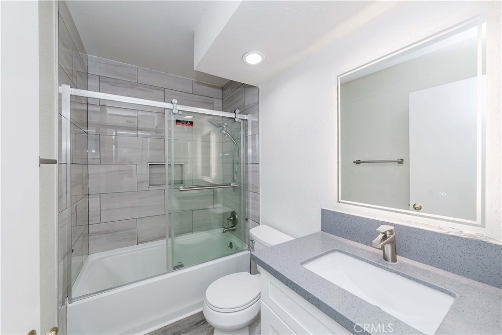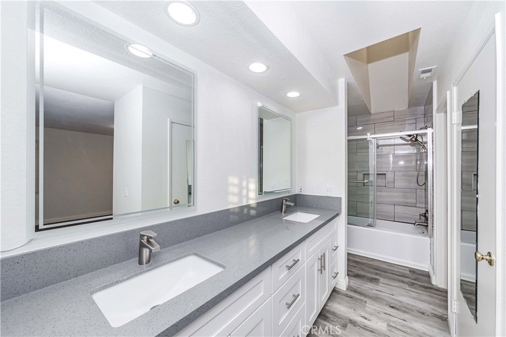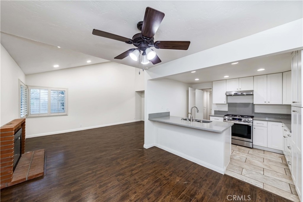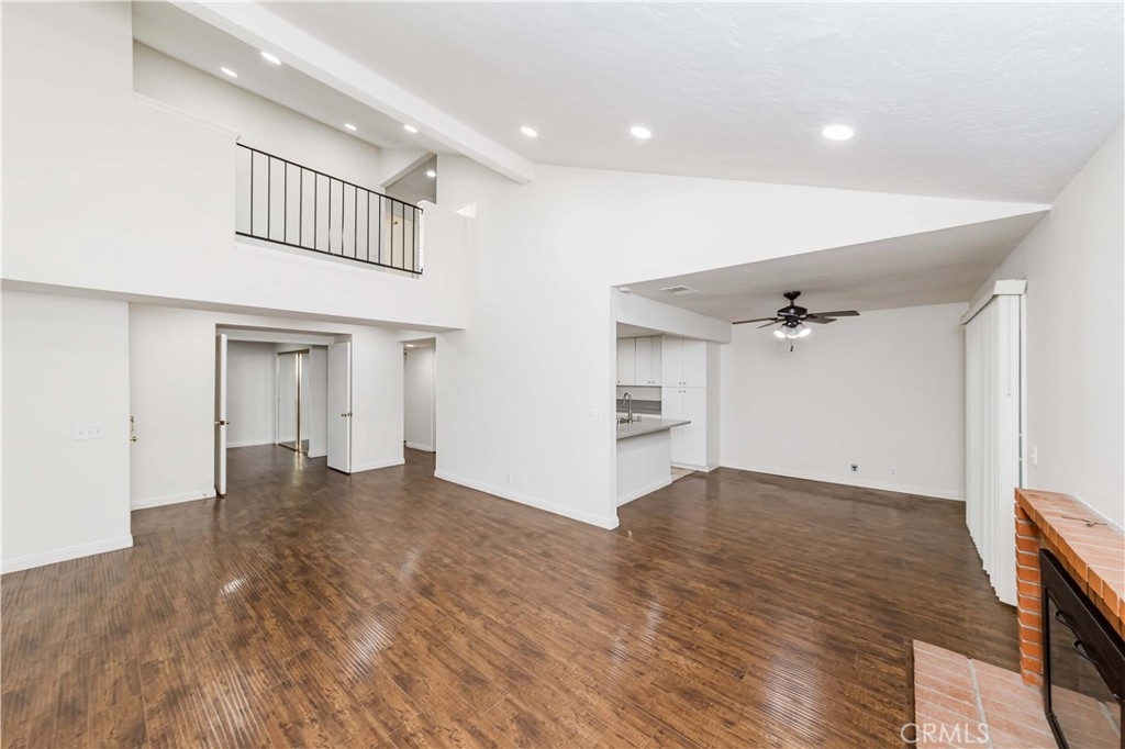 This beautiful 3 bedroom additional loft space with 2 full bathrooms and an attached 2 car garage has vaulted Ceilings, Hard Wooden Flooring throughout the property. Fully remodeled kitchen features a Beautifully White Kitchen Cabinets with the granite counter tops and stainless-Steel appliances. The living room has the fireplace. LED Recessed Lighting on the vaulted ceilings. There is a convenient and well-sized bedroom downstairs with full bathroom, which also makes a great home office or perfect for the guests. Upstairs features master suite with dual sinks, tub with shower, skylight, two walk-in closet , secondary bedroom, and a bonus loft that could be used for office, family room or playroom, The patio has good sized backyard for family BBQ and entertaining. The HOA has a swing pool, Jacuzzi and children playground. It located very close to the freeway 91, schools, shopping.