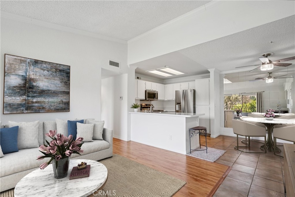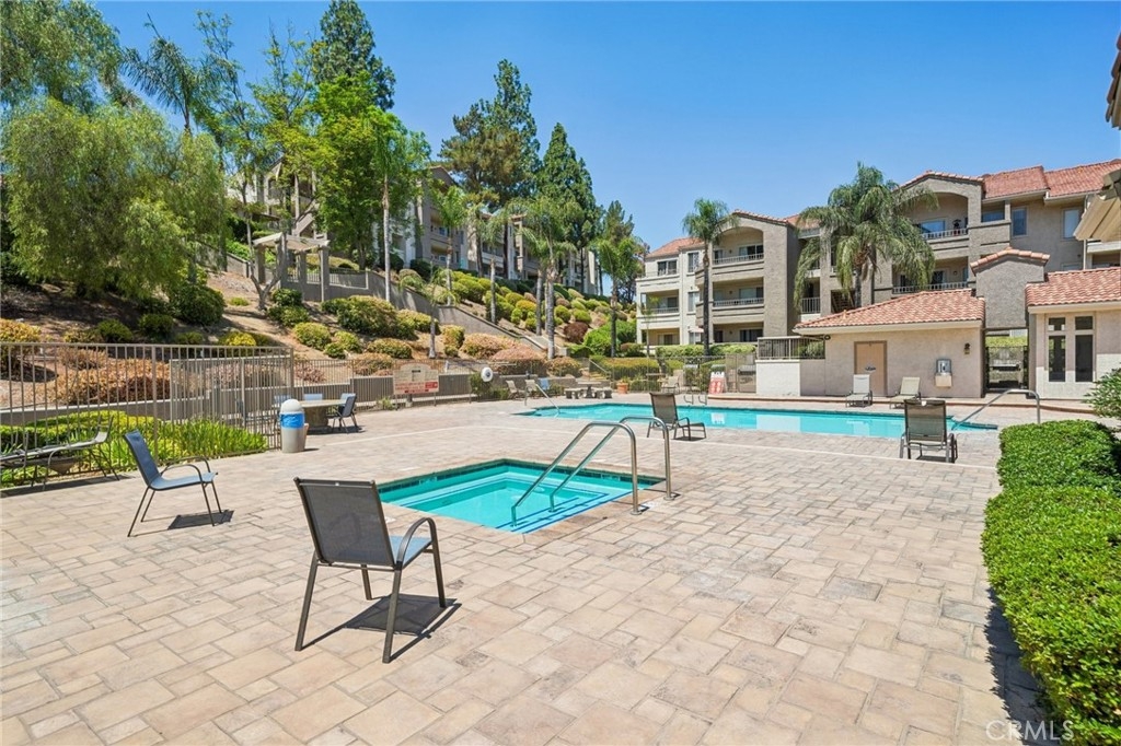 VIEWS VIEWS VIEWS! Turn-Key North Corona Condo with a top level view of Parkview Park! This Move-in ready 2 bedroom / 2 bath, 941 Sq Ft home is located within the desirable Triana gated community. The interior is SPACIOUS and OPEN, offering lots of NATURAL LIGHT, HIGH CEILINGS, FRESH PAINT, NEW CARPET flooring in bedrooms, two PRIVATE BALCONIES, a 1-CAR GARAGE, and 1 ADDITONAL PARKING SPACE. The living room with wood look laminate flooring opens to the kitchen with NEWER STAINLESS STEEL APPLIANCES which include the refrigerator, dishwasher, electric range, and microwave. The kitchen also offers tile floors, breakfast bar seating, and dining area. Both of the bedrooms are generously sized and have balcony access, the primary bedroom also has a private ensuite with vanity and large soaking tub/shower combo, and there is a full-size hall bathroom for the secondary bedroom and guests to share. An in-unit laundry closet with included washer and dryer complete the floor plan! Residents also get to enjoy a sparkling pool and spa, an indoor gym and there is also a clubhouse and outdoor dining areas near the pool! The clubhouse can be used for gatherings and parties. Owner only pays for electricity in this home. The water, gas, trash, and landscaping are all included in the HOA fee! This home is conveniently located near parks, schools, as well as the huge shopping and dining center off of McKinley St! Also easy access to the 15 and 91 Fwys! Do not Miss Out On This One! Schedule your private tour today!