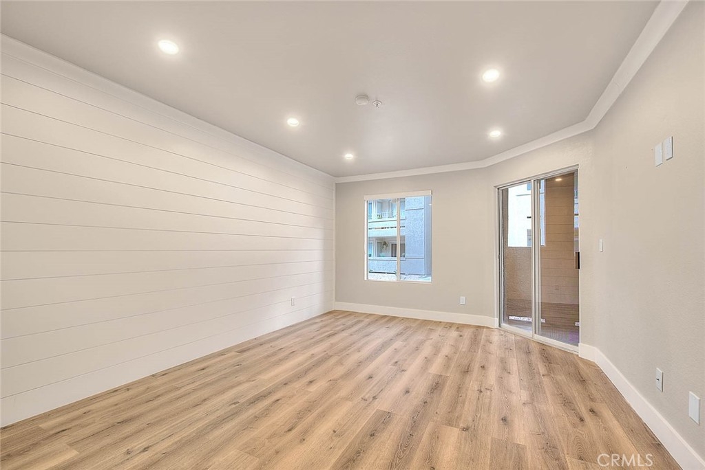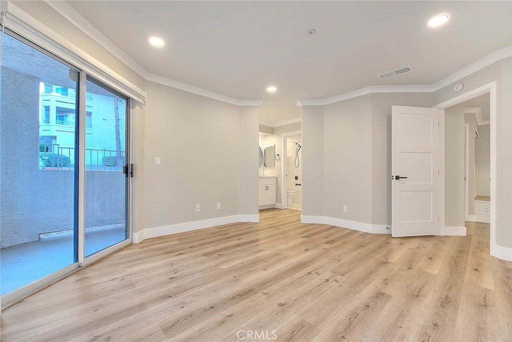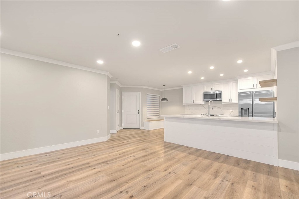 Beautifully upgraded & completely remodeled 2 bedroom/2 bath condo situated in the community of Triana at Corona Ranch. Truly turnkey and shows like a model, done with a contemporary flair! A fantastic floorplan greets you with an open entertaining space that boasts a gorgeous remodeled kitchen and luxury vinyl plank flooring throughout with exception of the bathroom tub and shower areas which have upgraded flooring as well (ceramic tile). Light and bright white cabinetry, elegant quartz counter-tops, stainless appliances, decorative floating shelves, recessed lighting plus built-in nook seating for dining. Great counter top space to prepare and serve plus generous storage. Other interior upgrades include: new doors & hardware, shiplap accents in almost every room and crown molding, all chosen with a designers careful attention to detail. Both bedrooms feature on-suite bathrooms and walk in closets! Primary bathroom boasts new vanity, counters, shiplap accenting, mirror, flooring as well as upgraded tile in the shower/tub combo. The guest bath also features a new vanity, decorative mirror & shiplap accenting, a sizeable walk in shower, new flooring and more! Both bedrooms and the living room all have sliding doors that lead to the outside patio. This additional exterior space is great for outdoor relaxation or patio dining. There is a convenient laundry closet inside, located off the kitchen. No outside trips for laundry needs! The unit has access to a one car garage as well as one permitted parking space. The gated community of Triana has a community pool, spa, barbecue and dining tables for the residents to enjoy. HOA dues also include water and trash utility. Nearby to local parks, McKinley Elementary, Walmart Super-Center, Costco, Home Depot, Ranch 99 and more! This property is sure to impress!