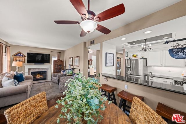MAJOR PRICE IMPROVEMENT! Welcome home to this stunning 3-bedroom, 2 1/2-bath End unit townhome in Corona Ranch, offering modern comfort and stylish design. This home has been tastefully remodeled, luxurious bathrooms, designer fixtures and beautiful flooring, enhancing the spacious, elegant layout. The entry, dining room, and library boast dramatic two-story ceilings, creating a welcoming, open, and airy atmosphere filled with lots of natural light. The cozy family room features a gas wood-burning fireplace, perfect for relaxing. The library is enhanced with custom built-in bookshelves and elegant chandeliers, creating a sophisticated reading and entertaining space. The beautifuly remodeled kitchen includes a generous pantry. Enjoy the privacy of this end unit with a private entrance and a charming wrap-around outdoor patio that is partially covered and offers spacious views. There is plenty of space to start your own garden. The outdoor area features its own separate entrance. Located in a beautiful community with a sparkling pool, this home is close to scenic golf courses, parks, houses of worship, top-rated schools, and major transportation hubs including Ontario Airport and John Wayne Airport. Easy access to the 91 and 15 freeways, and less than 5 miles from Corona Regional Medical Center and Metrolink Station. This beautiful townhome combines comfort, style, and is conveniently located to great shopping and restaurants in a desirable neighborhood.