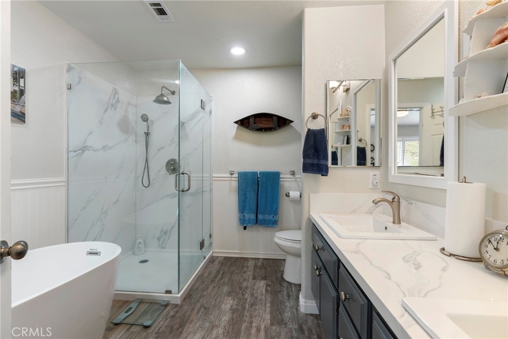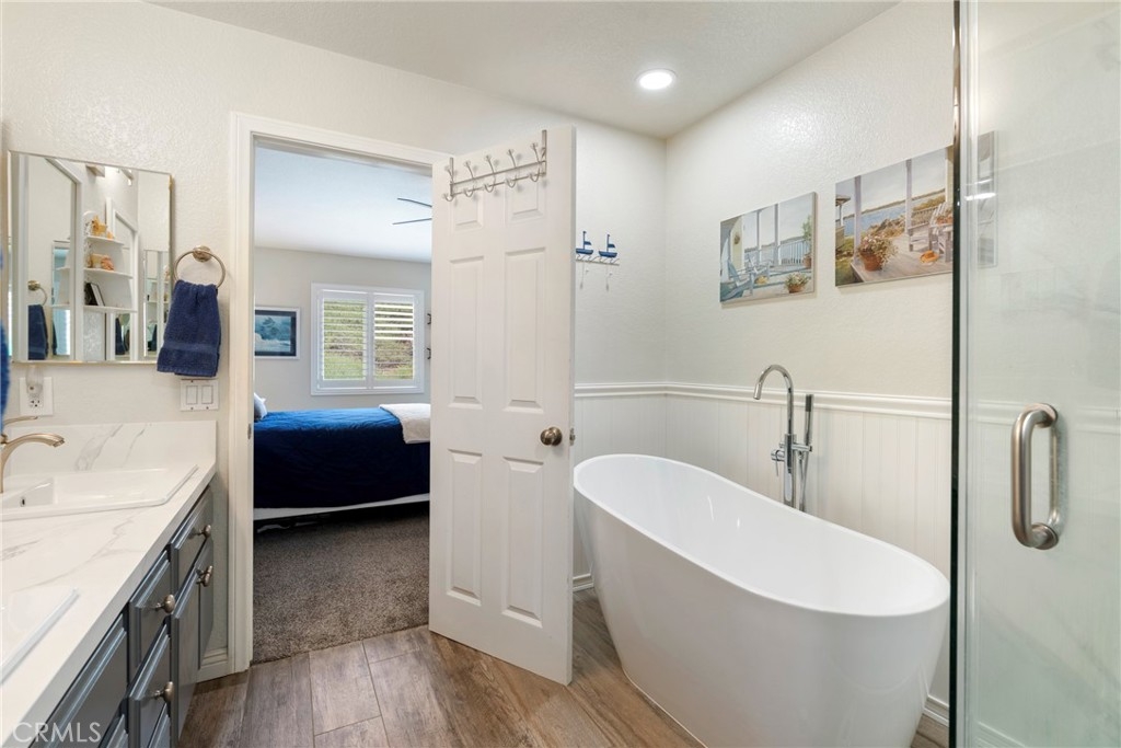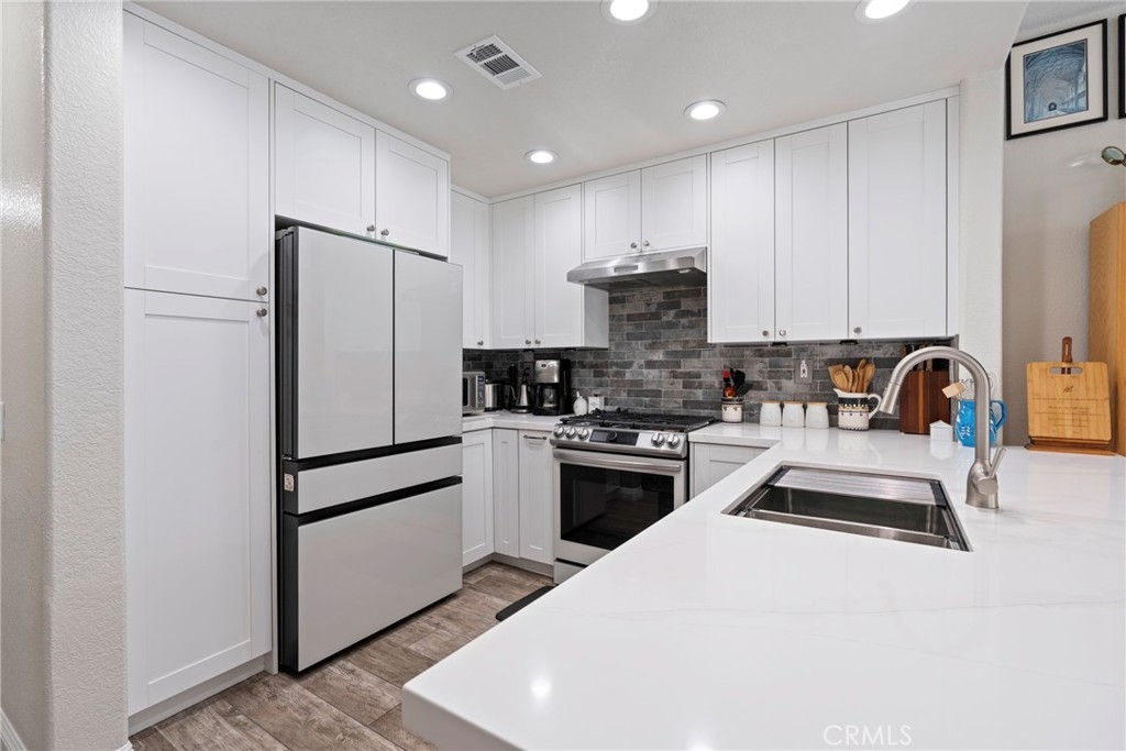 Don’t miss the opportunity to be the new owners of this stunning townhome in the desirable community of Altia in Corona Ranch. As you enter this beautiful home you will walk into a stunning living room, featuring cathedral ceilings, huge windows and oversized sliding glass doors that will lead you to the private outdoor space that has been landscaped and accented to resemble a tropical paradise! The perfect place to enjoy a quiet summer evening or to entertain family and friends. As you continue to explore the home, you will find a formal dining room with high ceilings and the perfect amount of space for your dinner parties or family gatherings. The gourmet kitchen has been recently up-graded to include white shaker cabinets with soft close hinges, Quartz countertops, new appliances, a farm sink and a breakfast bar. The lovely kitchen opens to the family room with a cozy fireplace, ceiling fan and large sliding glass doors to the tropical back yard, featuring multiple seating areas and solar lights that turn your evenings into a magical space as the sun goes down! There is a guest bathroom downstairs and direct access into the two car garage with overhead storage racks. Upstairs are the bedrooms, starting with the large primary suite with dual closets and a ceiling fan. The ensuite bathroom has been completely remodeled and features a beautiful soaking tub, a separate shower with multiple showerheads, a frameless glass shower enclosure and extra lighting. The vanity features quartz counters and brand new sinks and faucets. At the other end of the hallway, there are two more bedrooms and a lovely bathroom that includes a large shower with glass enclosure. Recent upgrades include new furnace and AC unit plus new PEX plumbing on first level of the home. Other highlights are Plantation Shutters throughout, newer water heater, wood look tile flooring, upgraded baseboards, neutral interior paint, neutral carpet. Residents of Altia enjoy a lovely community pool and spa, plus easy access to Parkview Park, local shopping, including Costco and 99 Ranch Market, restaurants and local schools. This community is also the perfect location for commuters or frequent travelers, with convenient access to both the 91 and 15 fwys and a Metro Link station. Call now to schedule a private showing!