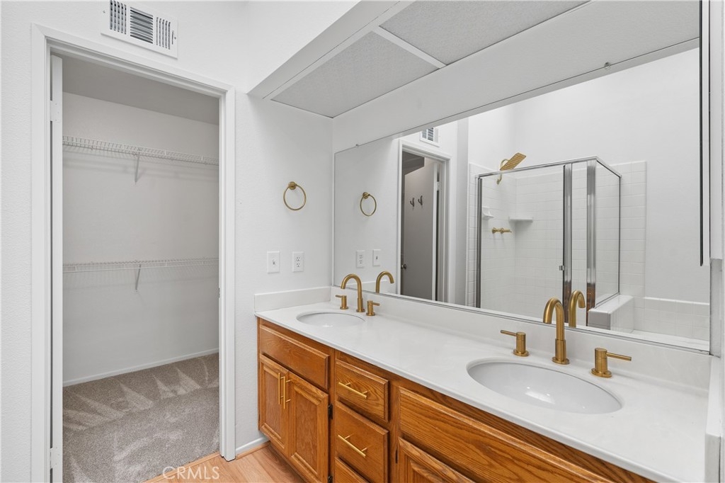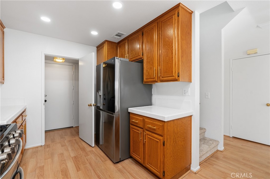 This beautifully cared for condo is located in the most sought-after area of the First Edition community of Corona Hills, offering both privacy and convenience. Situated on a prime corner lot, the home benefits from extra natural light and a peaceful, open feel, while still being just steps away from the sparkling community pool. Inside, you'll find spacious living areas with a modern, open-concept layout, vaulted ceilings, double oven stove, ample counter space, and a peek-a-boo fireplace. Perfect for entertaining or relaxing. The home boasts of new paint, new carpet, stylish fixtures, indoor laundry room, and modern appliances with added warranties. The entire home has newer piping! The large windows throughout are adorned with plantation shutters and allow you to enjoy the scenic views of the neighborhood. Three generously sized bedrooms, allow plenty of room for your family, guests, or a home office. Each bedroom features ample closet space and large windows that let in natural light, creating a bright and inviting atmosphere. The primary suite is a true retreat, designed with relaxation in mind. It features a walk-in closet with plenty of storage, providing you with all the space you need for your wardrobe. The ensuite bathroom is equally impressive, offering both a soaking tub for unwinding after a long day and a separate shower for those in need of a quick, refreshing start. This condo offers the ideal balance of comfort, space, convenience, and lifestyle. With a thoughtful design, ample storage, and private primary suite, this home is perfect for those seeking a move-in-ready home with all the modern amenities. Don't miss the opportunity to own your dream home in this coveted location!