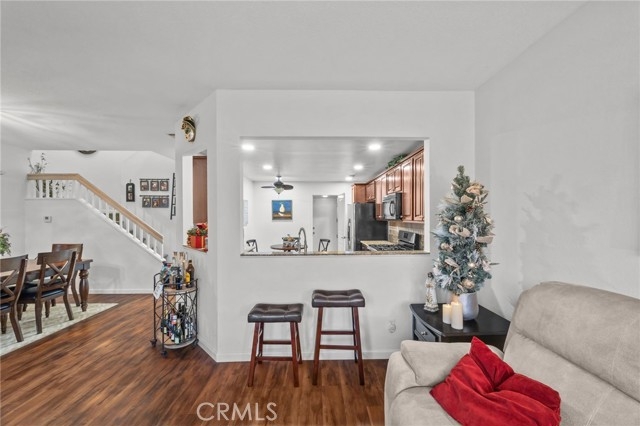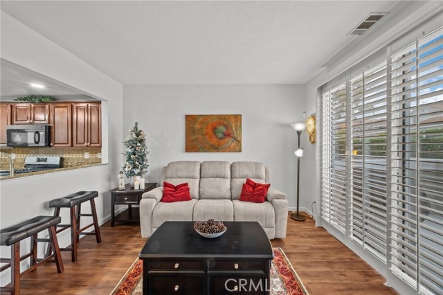 Step inside and feel the warm and inviting flow of this lovely home. The bright living room has wood flooring, a cozy fireplace, and shuttered sliding doors that open to a ground-level patio with pleasant outdoor views. Enjoy a warm cup of tea while watching neighbors stroll by. The dining space leads to an updated kitchen with custom tile floors, granite countertops, and stainless steel sink, dishwasher, refrigerator, and stove. Cooking while talking with family or guests is simple here. Natural light fills the space and adds a cheerful feel. A skylight at the stairs brightens the upper level. The three spacious bedrooms offer comfort and privacy. The master bedroom features a balcony, updated bathroom, and roomy walk-in closet. Carpet stays upstairs for a soft feel. All bathrooms are updated. Downstairs, the laundry sits next to the door leading to the attached two-car garage, which includes an EV charger, epoxy flooring, and a smart opener you can use from your phone. A Ring doorbell, community pool and jacuzzi, nearby shopping, parks, trails, easy commuting, and award winning schools add to the appeal. This home is turn-key and move-in ready.