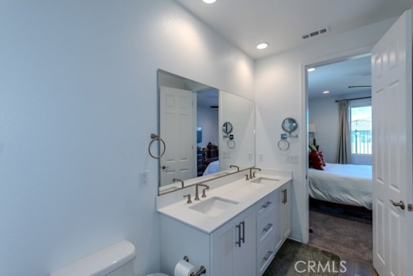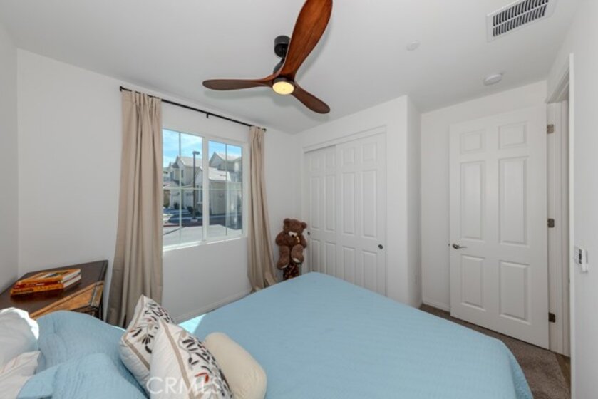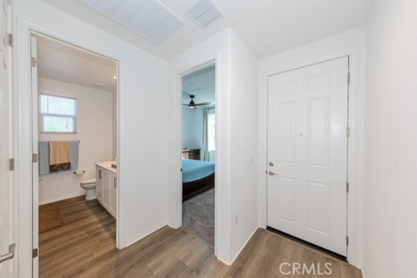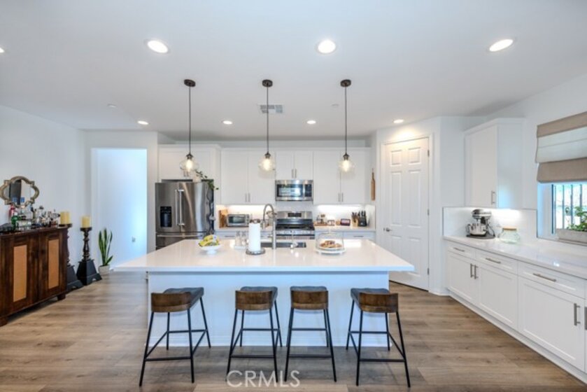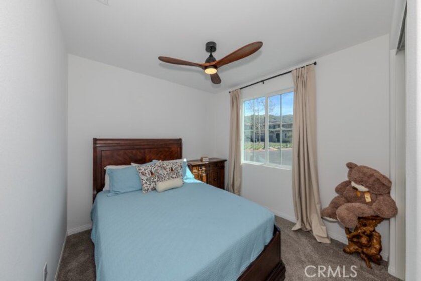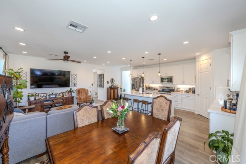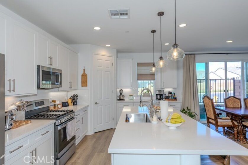 Welcome to your dream home in the guard-gated community of Skyview at Terramor. (Built 2024), this stunning upgraded single-story residence features fully paid solar and perfectly blends modern design with energy efficiency. This beautiful home offers 3 bedrooms, 2 bathrooms, and an attached two-car garage. The open floor plan seamlessly connects the kitchen, dining, and family rooms, ideal for both everyday living and entertaining. Oversized sliding glass doors frame gorgeous mountain views and fill the home with natural light. The gourmet kitchen showcases a spacious quartz island, top-of-the-line appliances, and elegant finishes. Seller invested significantly in premium builder upgrades. A combination of upgraded laminate flooring and plush carpet runs throughout, while ceiling fans enhance comfort in every room. The primary suite is a tranquil retreat featuring a spa-inspired walk-in shower also showcases quartz countertops and a generous walk-in closet. Additional energy-efficient features include a tankless water heater and Energy Star appliances. Terramor, named Master Planned Community of the Year by the Building Industry Association of Southern California (2018), offers resort-style amenities, more than 540 acres of protected open space, scenic views of Cleveland National Forest, 5 miles of trails, and 22 acres of parks. Conveniently located near the I-15 freeway, Glen Ivy Hot Springs, and shopping and dining at The Shops at Dos Lagos. Don’t miss the opportunity to own an exceptional home in one of Corona’s most desirable communities. Schedule your private showing today before it's too late!