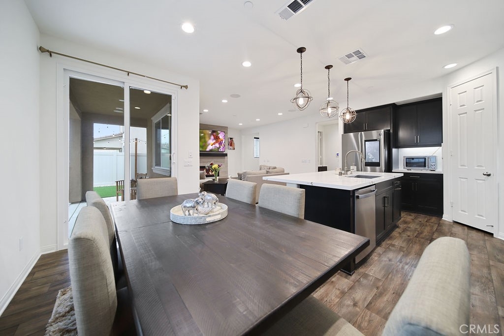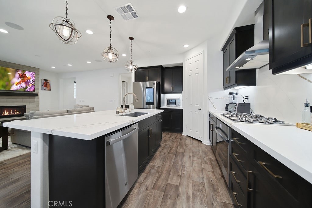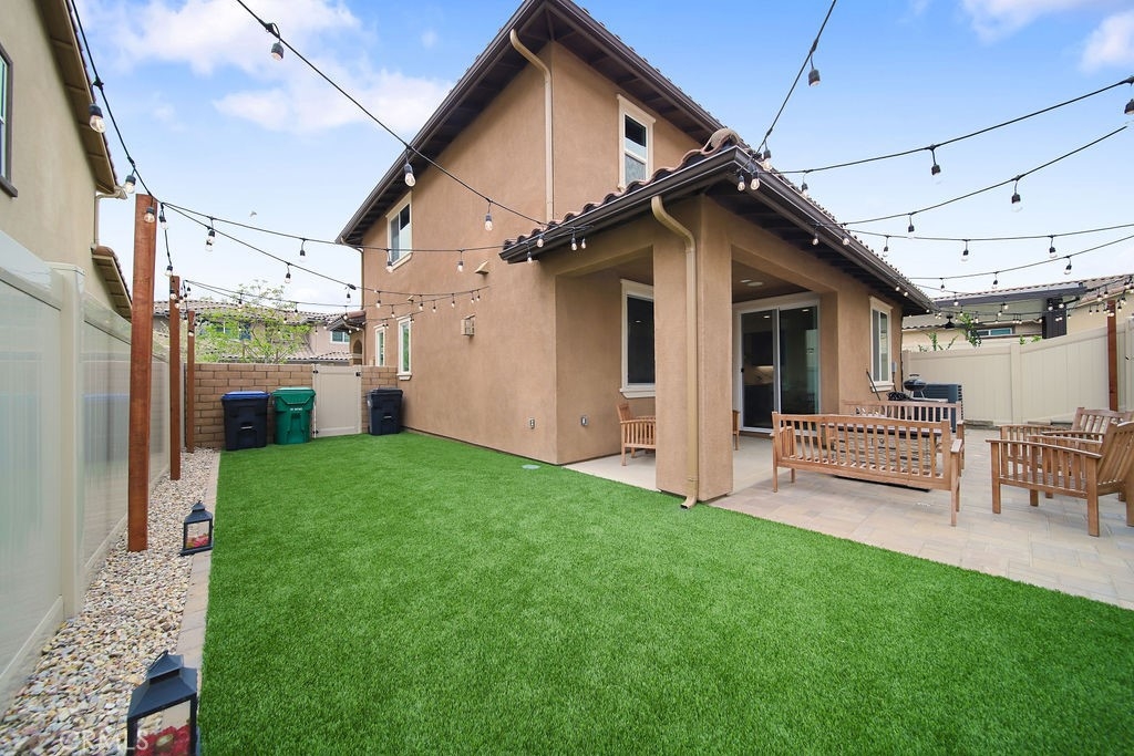 Welcome to this stunning newly built 2022 home offering 3 bedrooms and 3 baths, situated in a secure 24-hour gated community. This fully upgraded home features a modern kitchen with a spacious quartz island and top-of-the-line appliances. This property has more upgrades than the builder’s model that is currently priced for sale. You can’t miss this opportunity to get some great built-in equity. The open floor plan includes a versatile loft and sleek vinyl plank flooring throughout. Enjoy outdoor living with a covered patio and low-maintenance artificial turf. The community amenities are unparalleled, including a pool, spa, parks, and scenic trails. Conveniently located near the 15 freeway, this home also comes equipped with solar panels for energy efficiency. Don’t miss out on this exceptional property!