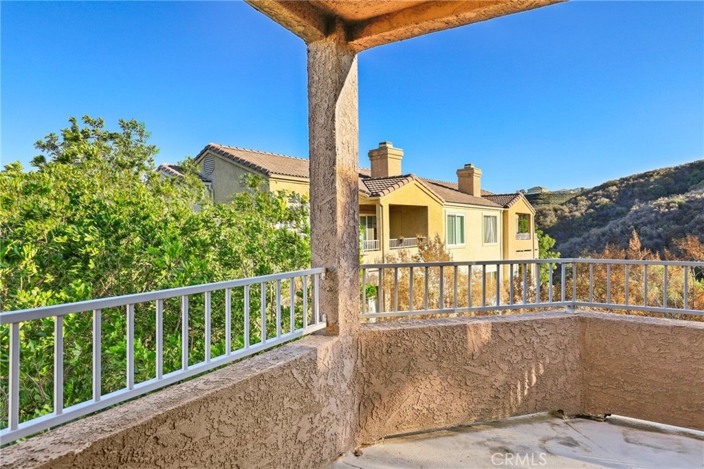 Sage Canyon condo community. Sierra Del Oro location with hill and canyon views!. Easy access to the 91 and 71 freeways. 1 Bedroom and 1 full bath. Top corner unit with high ceilings, open and bright living and dining room space. Access to a wrap-around balcony with large storage room. The bedroom features a large walk-in closet, and upgraded shower doors in the bathroom. This unit comes with Attic space, and a rare deeded 1 car garage space, plus an assigned carport space. Stackable washer/dyer in the unit. The community amenities are: pool, jacuzzi, bbq area, clubhouse, security, and paid water/trash and sewer. The grocery store, park and school are all walking distance.