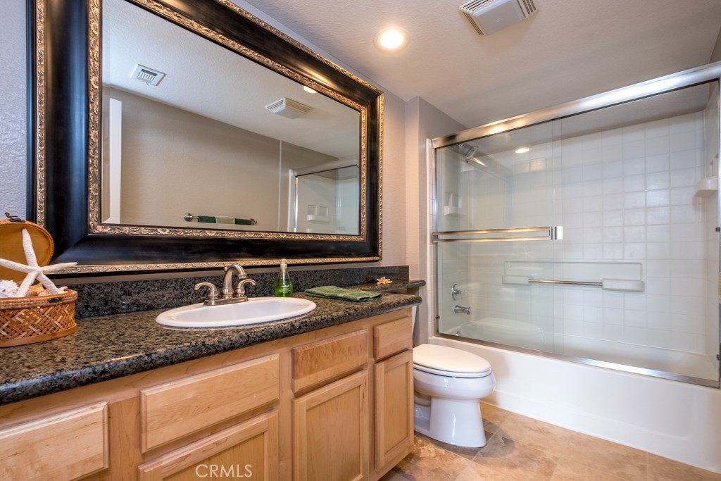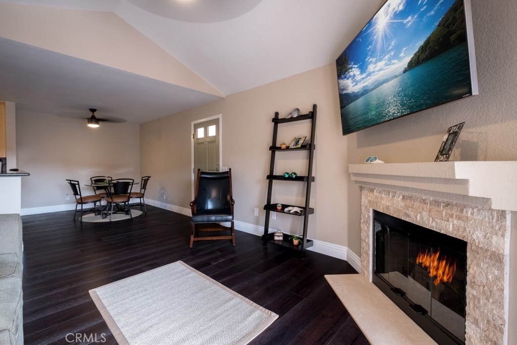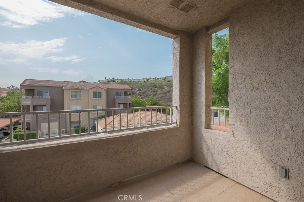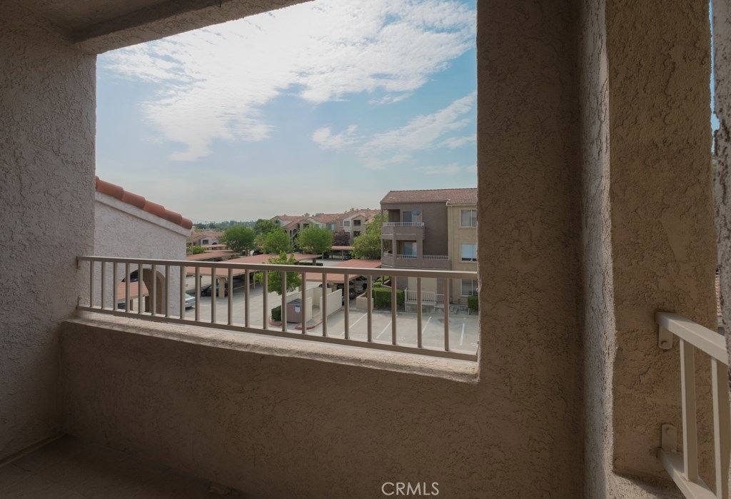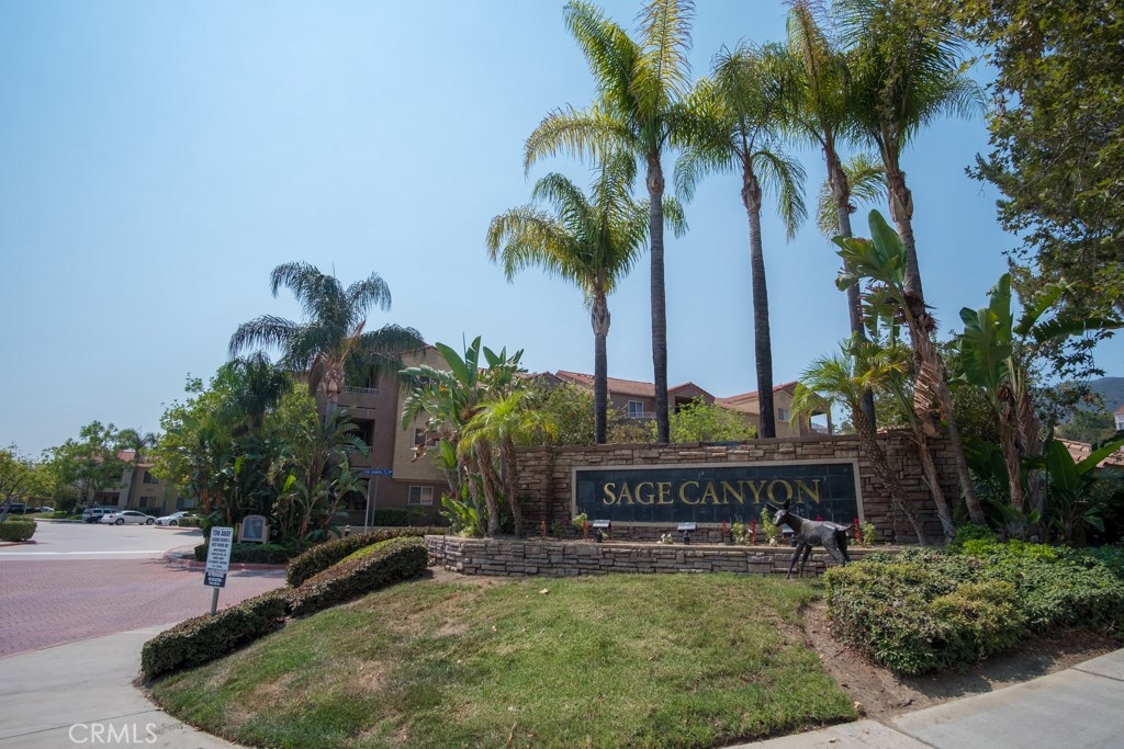 Tastefully remodeled 2-bedroom, 2-full bath condo located in the highly sought-after community of Sage Canyon. Located on the top floor offering privacy & views from your relaxing balcony. Stunning engineered, dark wood flooring with wide planks flow seamlessly throughout the home, except the bathrooms. Vaulted ceilings in the living room set the stage for a long-shafted ceiling fan/light, & beautiful remodeled stack-stone fireplace with a solid travertine hearth.The kitchen has attractive granite counter tops, maple cabinets, Samsung stainless steel appliances; is open to the living room & dining area with a ceiling fan light. The master bdrm suite has a big window, ceiling fan light, walk-in closet; and is off the vanity area with granite counter top & decorative mirror. The commode & bathtub/shower are just off the vanity area in a separate room offering privacy. The 2nd bdrm has a ceiling fan light, two windows & a closet sporting a sliding barn door providing more access area. Just across the hall is a spacious 2nd bathroom with travertine floor tiles, bathtub/shower, granite counter top & a large designer mirror. Down the hall is a laundry closet with full size stackable washer & dryer. All appliances are less than 3 years old & included in the sale. There are 2 assigned parking spots, 1 covered & 1 open.Amenities include a private gym, pool, spa, BBQ area, sports court, volleyball & club house. Easy access to the 91 Fwy, 241 Toll Rd, 71 Expressway, & minutes to the OC.