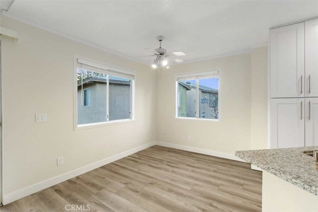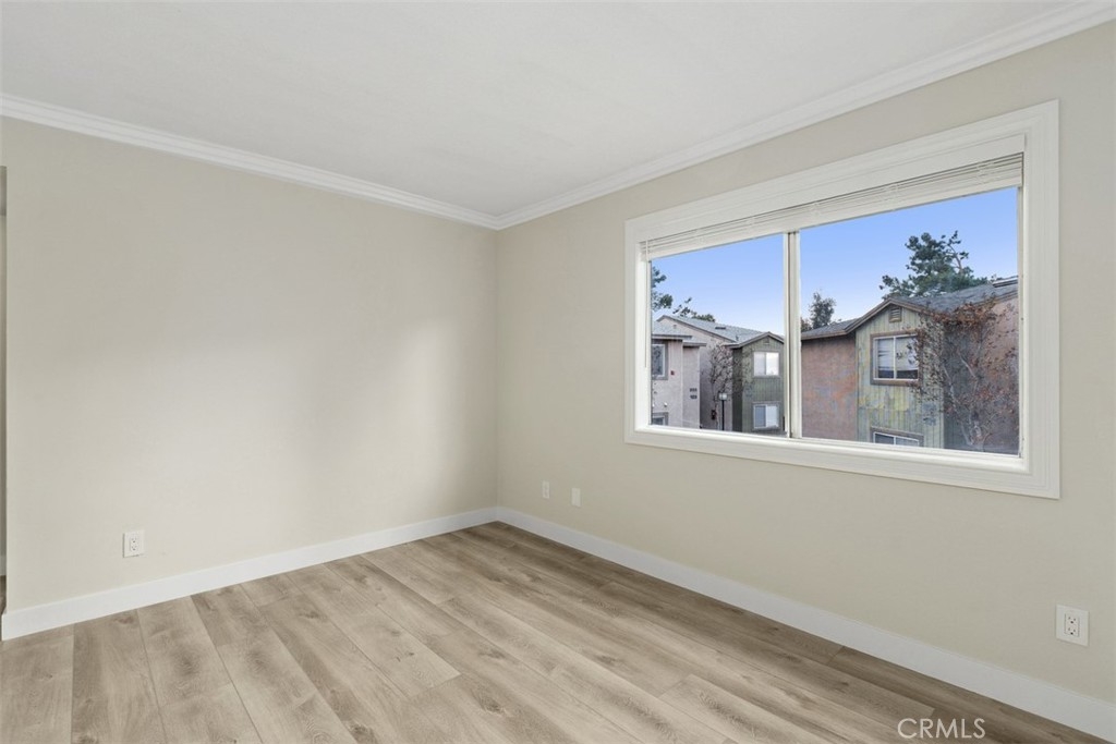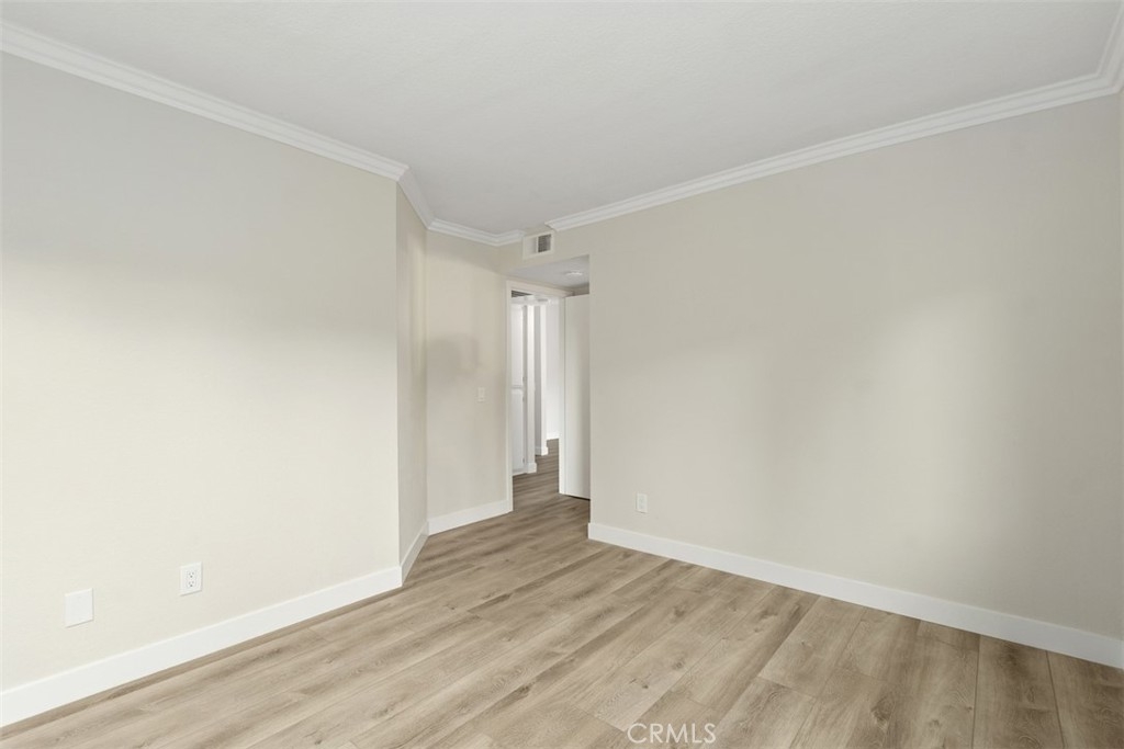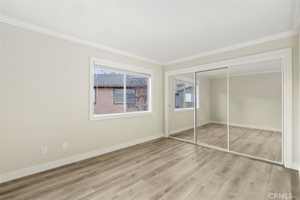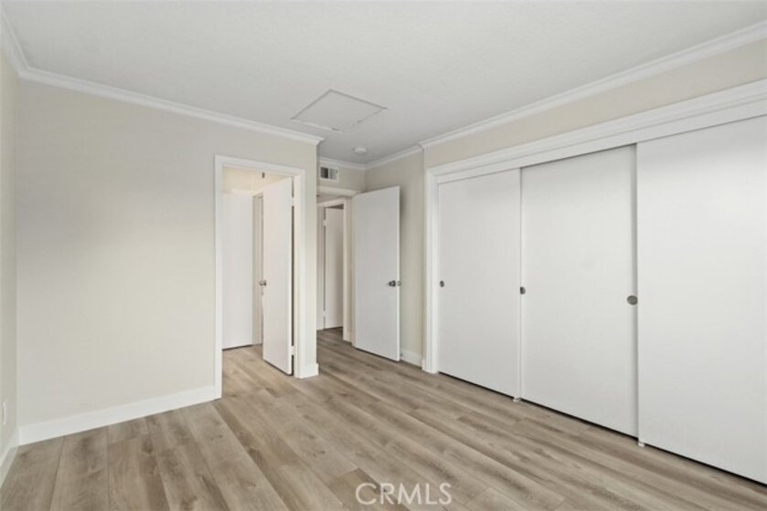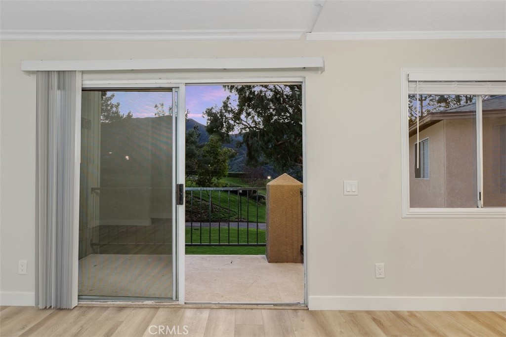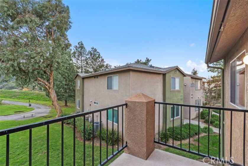 Discover the pinnacle of modern, low-maintenance luxury and privacy in this tastefully remodeled 2-bed, 2-bathroom second-story end unit condo situated in the exclusive gated community of Crown Villas at 2576 Avenida Del Vista, Corona, CA 92882.This approximately 956 sq ft gem enjoys the premium advantages of a top-floor (second-story) end unit—meaning no one above you for complete peace and quiet, and no shared walls on either side of the bedrooms, providing enhanced privacy and tranquility rarely found in condo living. Thoughtfully updated with premium features throughout, the home showcases brand-new luxury vinyl plank (LVP) flooring that offers the warm, authentic look of hardwood with superior durability, water resistance, and easy maintenance—ideal for Southern California's lifestyle. The open-concept design flows beautifully from the updated kitchen into the living areas, enhanced by sleek finishes, abundant natural light, crown molding, and fresh custom paint. Enjoy the convenience of a quality stackable washer and dryer in your own private in-unit laundry closet—perfect for effortless, at-home convenience without shared facilities. The residence features two generous master suites, each with a private bath and remodeled closets equipped with custom organizers for maximum storage and organization, complete with built-in shelves, hanging systems, and smart storage solutions. Step onto your private balcony to soak in breathtaking mountain and canyon views, offering a serene, tranquil backdrop against the peaceful foothills of the Cleveland National Forest. Crown Villas provides resort-style amenities in a secure, gated setting: Sparkling pool and spa, Fitness center, Clubhouse, Tennis and basketball courts, Dog park, Picnic areas and walking trails and Lush landscaping. Low-maintenance living is elevated with HOA-covered water, trash, and common area maintenance, plus enhanced security and ample guest parking. Conveniently located in South Corona, minutes from shopping, dining, top-rated schools, parks, golf courses, and major freeways. This move-in-ready second-story end unit condo combines exceptional privacy—no one above or adjacent to the bedrooms—with modern upgrades like new LVP flooring, private stackable laundry, custom-organized closets, and stunning natural mountain and canyon views—delivering outstanding value in one of Corona's premier gated communities. Schedule your private showing today and make this luxurious, peaceful retreat yours!