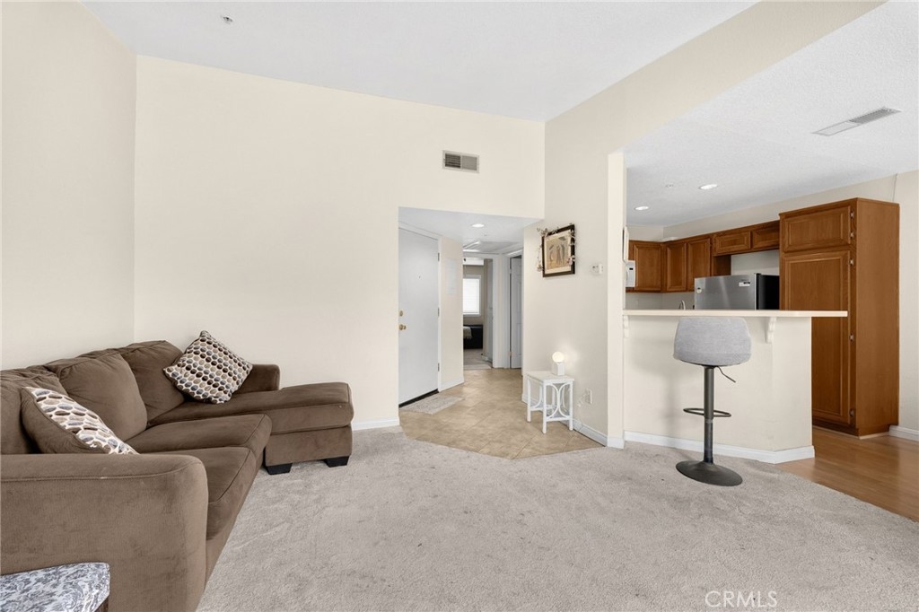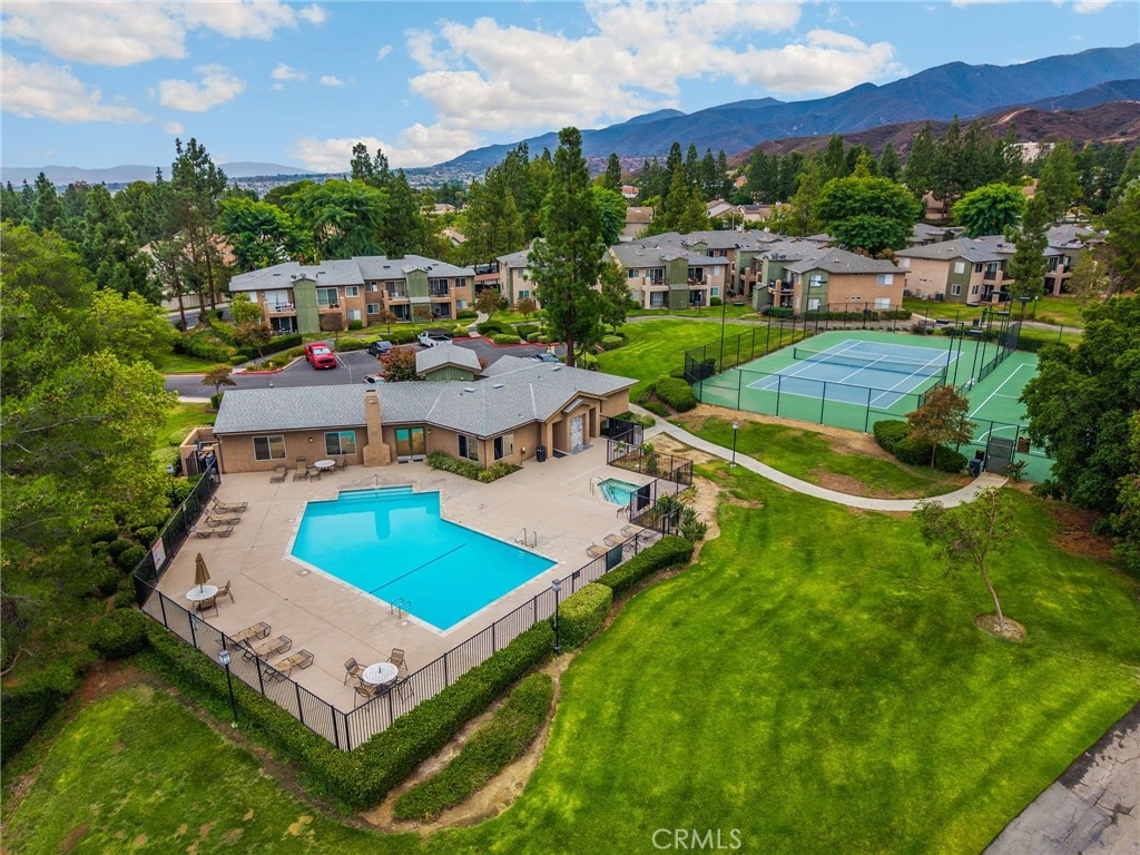 Uncover your dream home in this beautiful, ready to move in, top-floor condo in the gated Crowne Villas community, perfectly nestled above the serene, picturesque hills of Corona near Green River (Ontario and Avenida del Vista). This bright, open-concept one-bedroom, one-bath upstairs unit exudes warmth and charm, featuring a cozy, fireplace, open floorplan, and a stylishly updated bathroom with new fixtures and tile. The open kitchen flows into a breakfast/dining area and connects to a private patio, ideal for relaxing and enjoying breathtaking panoramic views of the lush, mountainous community. Equipped with modern conveniences, the unit includes a dishwasher, stove, microwave, fridge, and stackable washer/dryer. Ample storage enhances everyday living, while the serene, quiet setting is perfect for those seeking peace after a busy day. Community amenities elevate your lifestyle with a clubhouse, sparkling pool, spa, gym, tennis and volleyball courts, a dog park, scenic walking paths, and inviting benches to soak in the stunning hillside views. This upstairs unit in a two-story building offers a carport parking spot and ample open parking for guests. Located close to shopping centers, schools, and parks, this condo offers resort-style living in a tranquil, gated community.