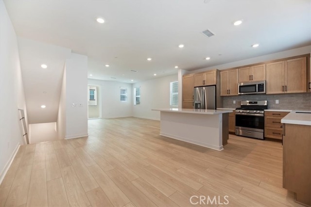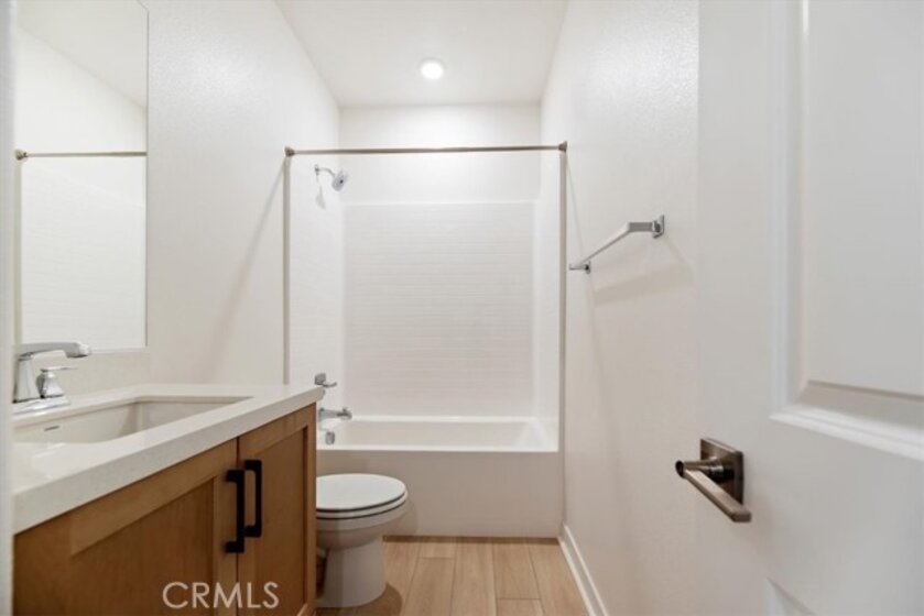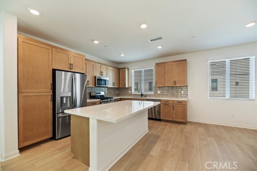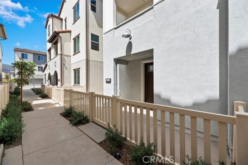 New construction by Tri Pointe Homes, quick move-in at gated Bedford in South Corona. This home is turn key and includes window treatments, and all appliances including a washer/dryer, and a refrigerator. Residence 1 paired home features a fenced front patio, lower HOA dues, deeper 2 car attached garage with storage space, plus 3 Beds/2.5 Baths. The impressive Great Room/Dining/Kitchen area is complemented by a covered balcony that expands upon the outdoor/indoor dynamic. Designer-curated options (see sample photo) include Shaker cabinetry, satin nickel pulls, polished Quartz kitchen counters, additional electrical + lighting options, wide-plank LVP flooring, textured carpet. Location also closer to new pool/exercise room and walkable to Bedford Marketplace, (Amazon Fresh, Starbucks, EoS Fitness). Transportation corridors (15, 91) also make the Inland Empire and Orange County accessible.