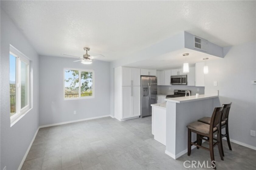 (2616 Avenida Del Vista #104, Corona, Ca). This fully renovated condo offers modern comfort and style throughout. Features include new windows, flooring, interior paint, and a new patio door. The open-concept living space has a fireplace flowing into the dining area and kitchen. The kitchen has granite countertops, a breakfast bar, and ample cabinet space, with refrigerator, stove, microwave, washer, and dryer. Both bedrooms are spacious with generous closet storage, and the two updated bathrooms feature a soaking tub in one and a walk-in shower in the other. Central A/C and heating provide year-round comfort. Amenities: pool and spa, fitness center, basketball and tennis courts, clubhouse, walking trails, and two dog parks for large and small pets. One assigned covered parking space.