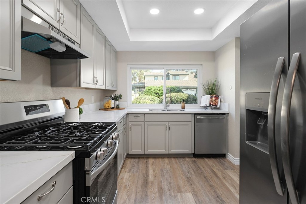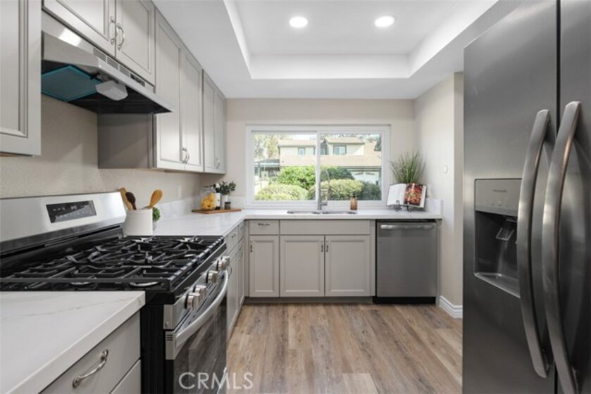 Welcome to 2672 Condor Circle, a tastefully refreshed single-level townhouse tucked into one of Corona’s most serene communities. This generous 4-bedroom, 2-bath home has been carefully updated with modern-day conveniences throughout. The chef’s kitchen offers brand-new appliances, stylish finishes, and plenty of storage. Luxury vinyl plank flooring extends through the home and pairs beautifully with fresh neutral paint and enhanced baseboards for a crisp, classic look. Additionally, the home features a newly installed electrical meter, providing improved efficiency and long-term peace of mind. A standout feature is the pair of private atriums, pouring in natural light and creating flexible spaces for a garden, lush greenery, or a quiet retreat. The rear living room is centered around a warm fireplace—ideal for entertaining or relaxing evenings in. With panoramic views of the city lights, this home perfectly balances comfort and scenery. The community is wonderfully quiet, yet offers quick freeway access for an easy commute to Orange County, Los Angeles, or San Diego, and is close to shopping, dining, and everyday essentials. Move-in ready and thoughtfully upgraded, this rare single-level townhouse is ready to welcome its next owner.