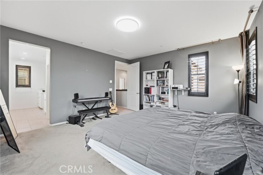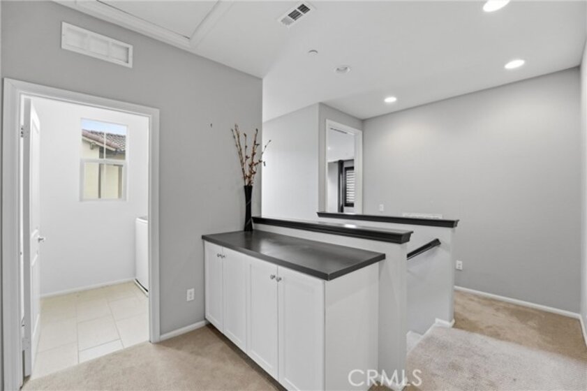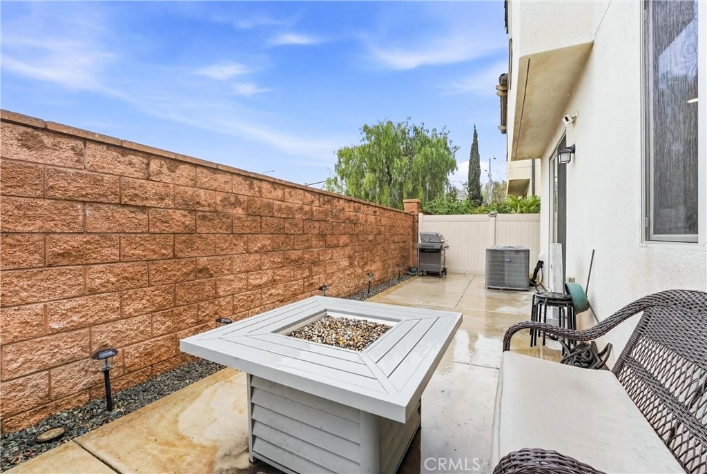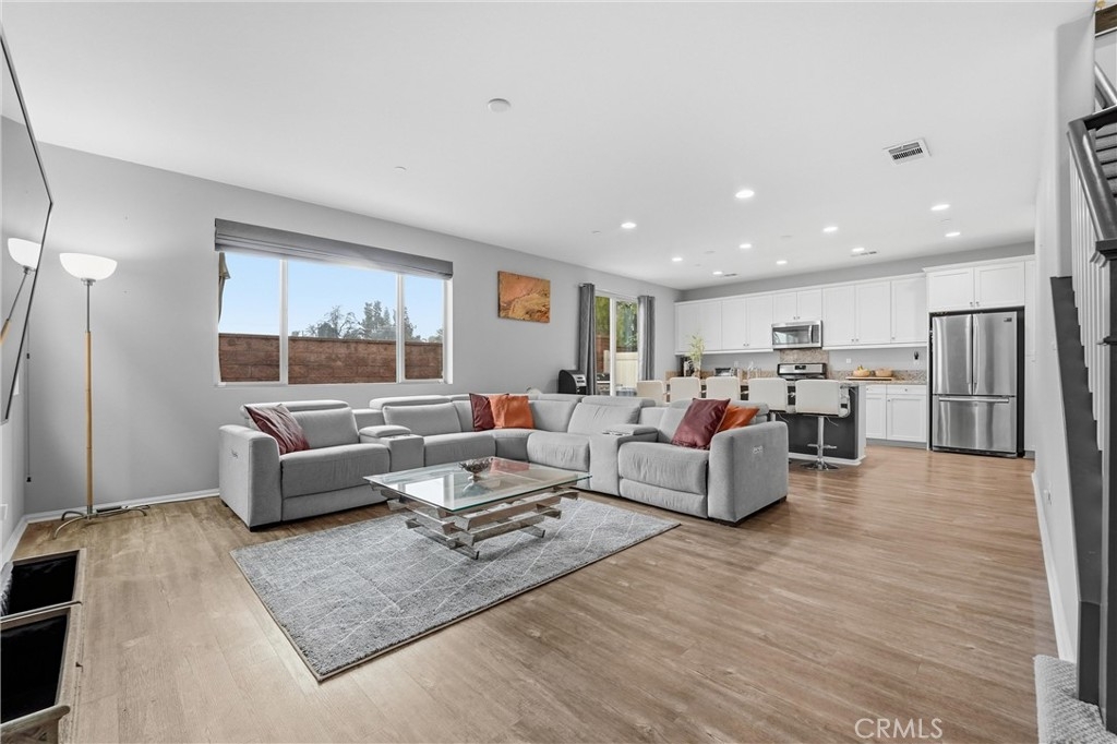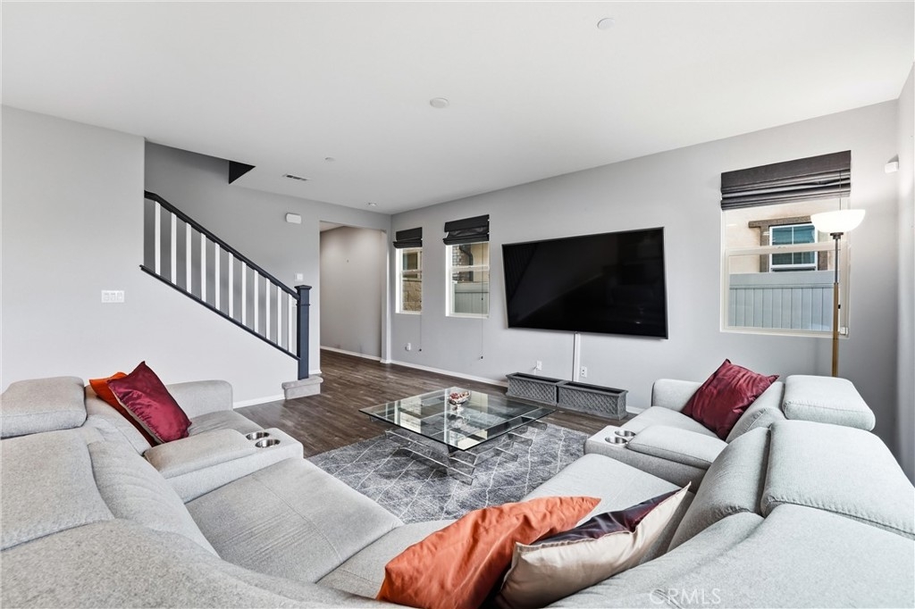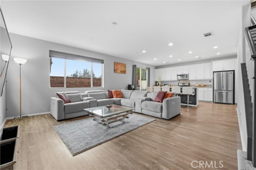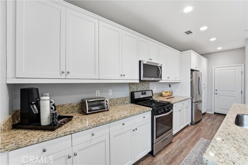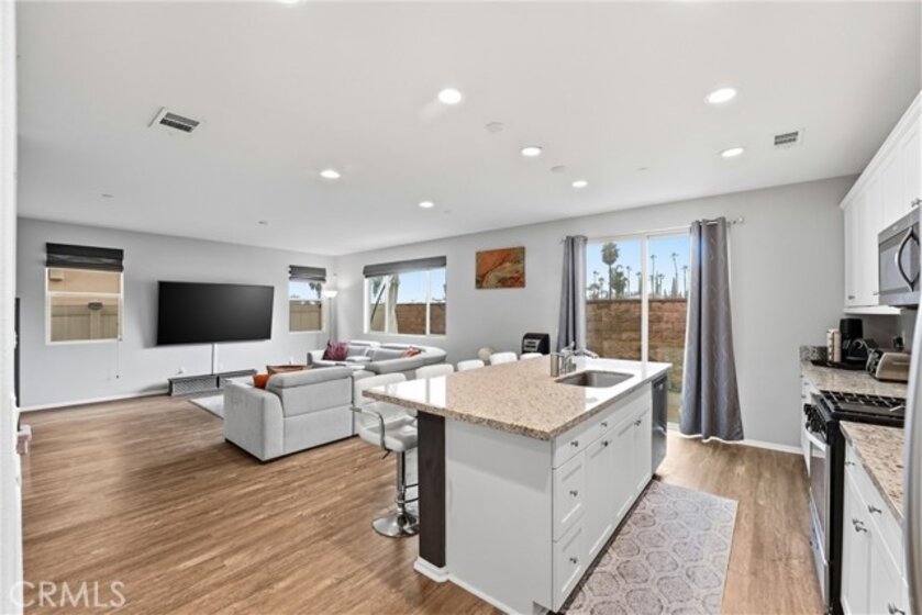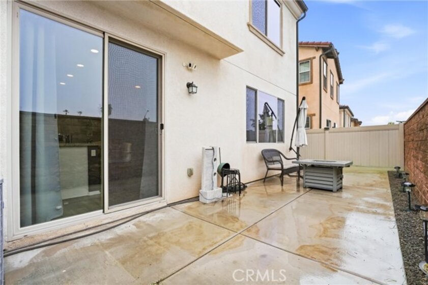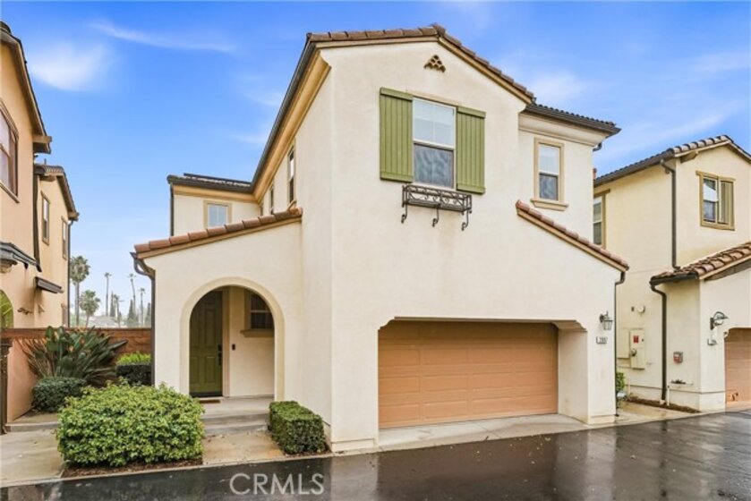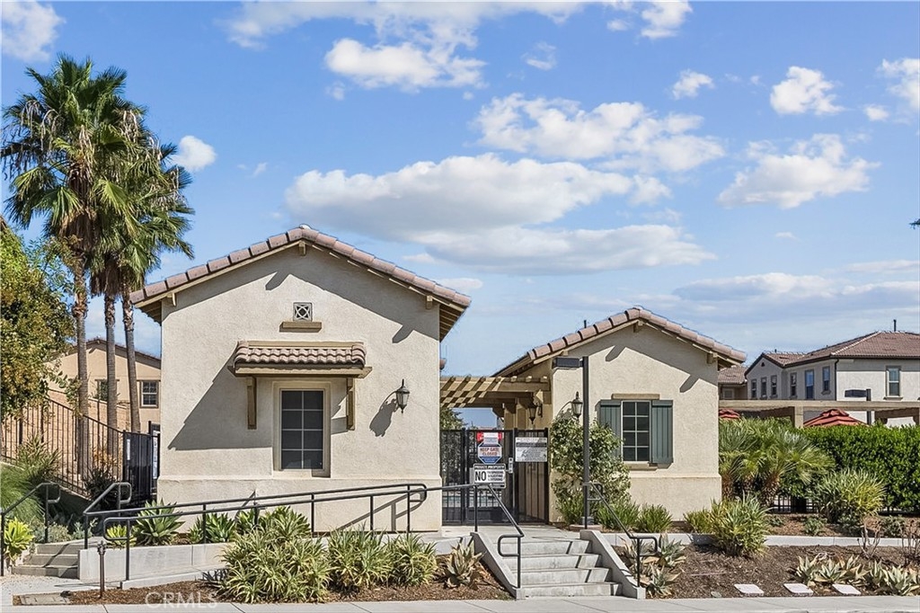 Welcome to Terrassa, an exclusive gated community in the heart of Corona. Built in 2018, this beautifully maintained Plan 2 of Terrassa Court combines modern comfort with timeless Santa Barbara–inspired architecture. As you pass through the private gates, you’re welcomed into an open and airy floor plan featuring 3 bedrooms, 2.5 bathrooms, and approximately 1,807 square feet of thoughtfully designed living space. The main level is bright and inviting, with seamless laminate flooring flowing through the living and dining areas into a kitchen with granite countertops, white raised-panel cabinetry with satin nickel hardware, stainless steel appliances, and a generous center island perfect for gathering family and friends. Custom shades and plantation shutters throughout add style and privacy, while high ceilings enhance the sense of space and openness. Upstairs, the private primary suite boasts plush carpeting, soaring ceilings, and a luxurious en-suite bath with a soaking tub, separate shower, dual vanities, and a large walk-in closet. Two additional bedrooms share a modern hallway bath, and the conveniently located upstairs laundry adds everyday ease. Step outside to a finished, low-maintenance backyard ideal for relaxing or entertaining, while the two-car garage offers direct interior access, additional storage, and a tankless water heater. Energy-efficient features include fully owned and paid solar panels, radiant barrier roofing, enhanced exterior insulation, and an insulated steel garage door. Located near top-rated schools and close to shopping, dining, and entertainment at The Crossings and Dos Lagos, with easy access to the I-15 and toll roads, this home offers style, energy-smart living, and convenient access to everyday amenities.