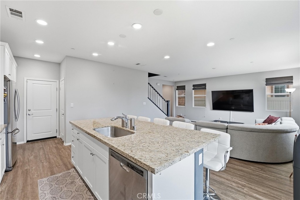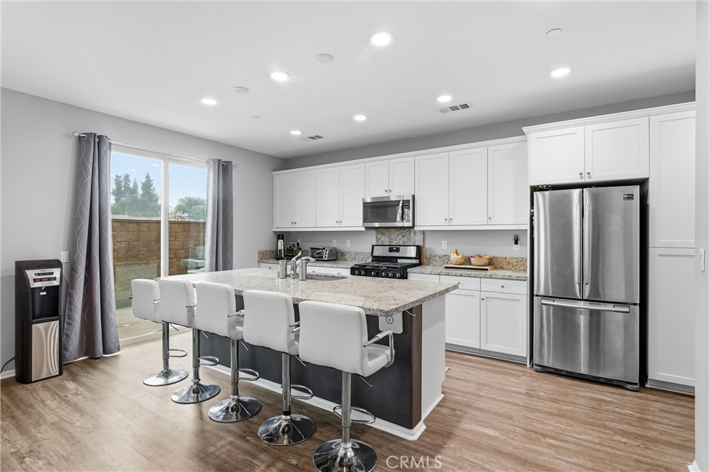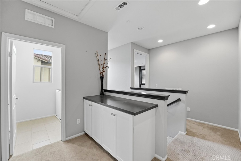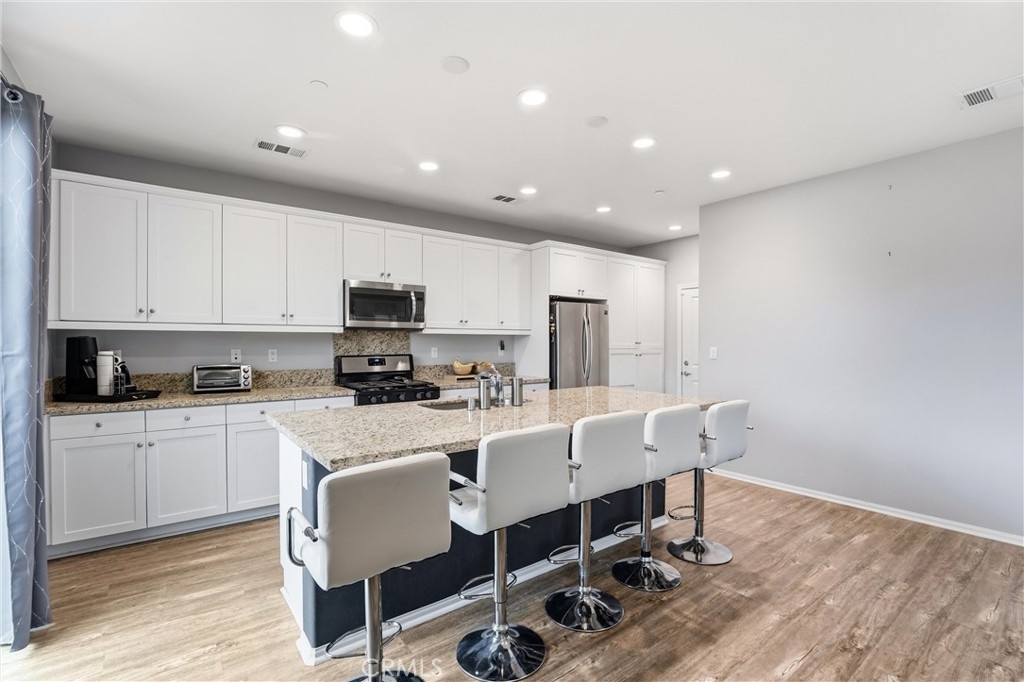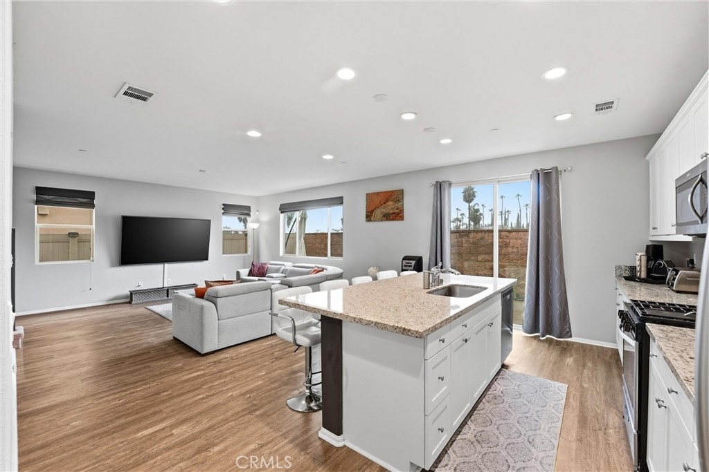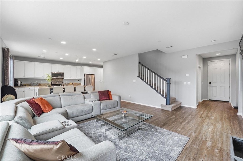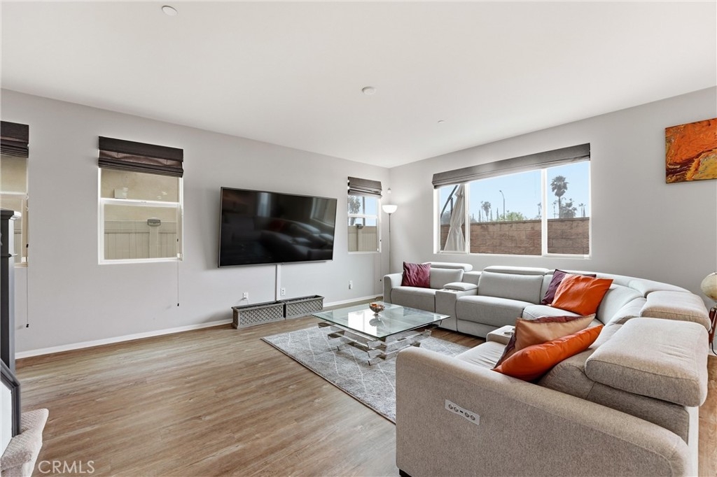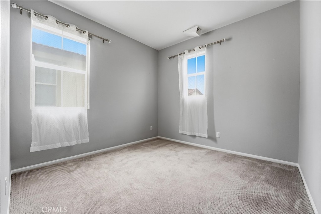 Welcome to Terrassa, an exclusive gated community in the heart of Corona. Built in 2018, this beautifully maintained Plan 2 of Terrassa Court combines modern comfort with timeless Santa Barbara–inspired architecture. As you pass through the private gates, you’re welcomed into an open and airy floor plan featuring 3 bedrooms, 2.5 bathrooms, and approximately 1,807 square feet of thoughtfully designed living space. The main level is bright and inviting, with seamless laminate flooring flowing through the living and dining areas into a kitchen with granite countertops, white raised-panel cabinetry with satin nickel hardware, stainless steel appliances, and a generous center island perfect for gathering family and friends. Custom shades and plantation shutters throughout add style and privacy, while high ceilings enhance the sense of space and openness. Upstairs, the private primary suite boasts plush carpeting, soaring ceilings, and a luxurious en-suite bath with a soaking tub, separate shower, dual vanities, and a large walk-in closet. Two additional bedrooms share a modern hallway bath, and the conveniently located upstairs laundry adds everyday ease. Step outside to a finished, low-maintenance backyard ideal for relaxing or entertaining, while the two-car garage offers direct interior access, additional storage, and a tankless water heater. Energy-efficient features include fully owned and paid solar panels, radiant barrier roofing, enhanced exterior insulation, and an insulated steel garage door. Located near top-rated schools and close to shopping, dining, and entertainment at The Crossings and Dos Lagos, with easy access to the I-15 and toll roads, this home offers style, energy-smart living, and convenient access to everyday amenities.