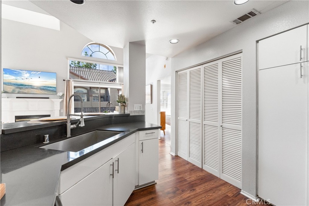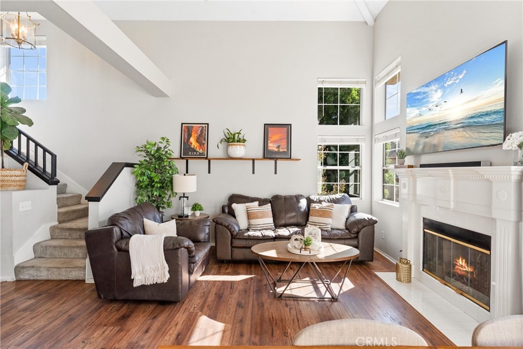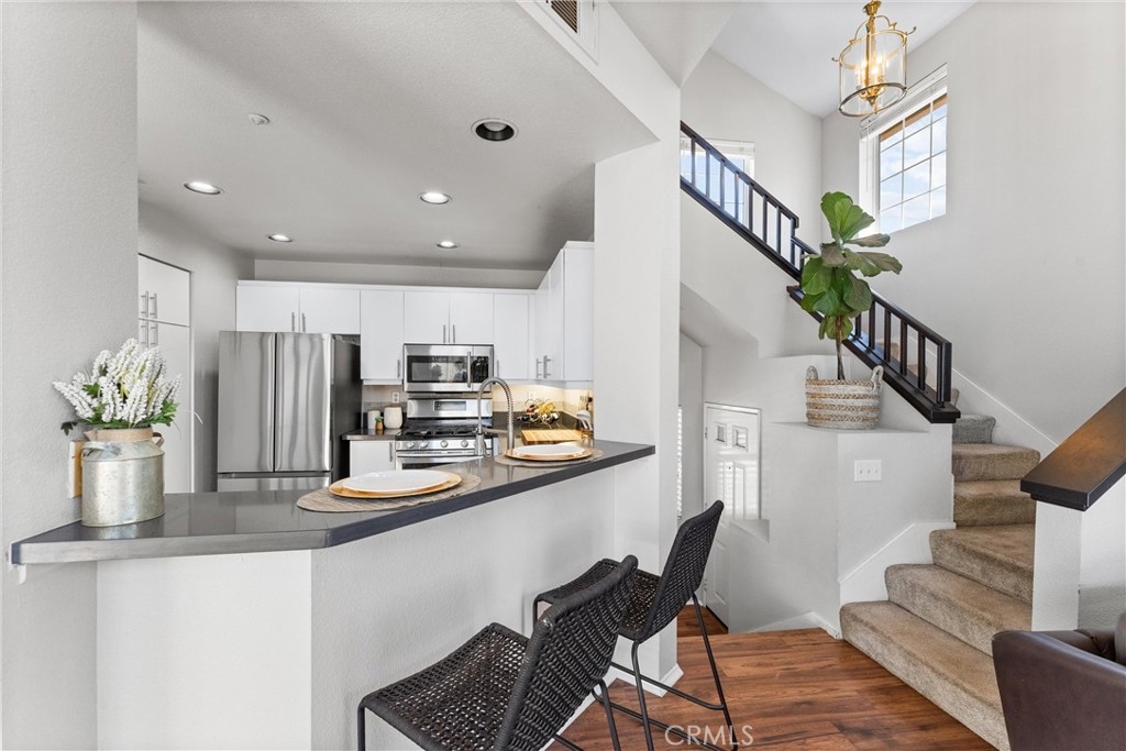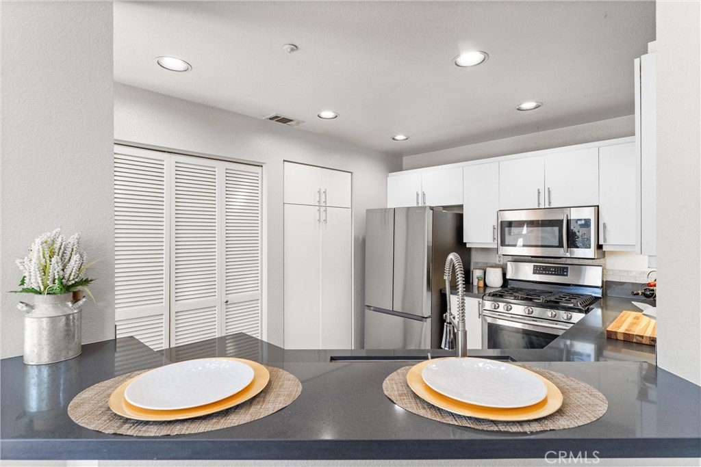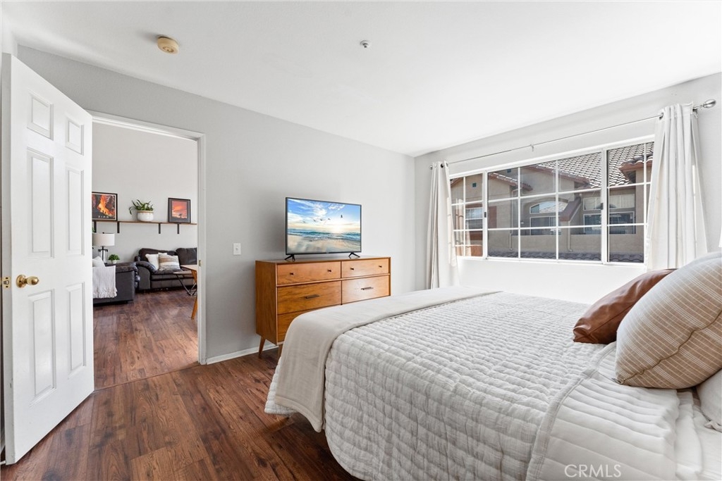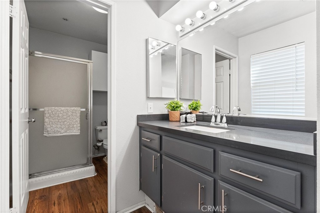 FHA approved! $15,000 Down Payment Assistance grant available for qualified buyers. Welcome to this beautifully upgraded two-story condo in the desirable Villaggio community of North Corona. Whether you’re a first-time homebuyer, looking to rightsize, or seeking a strong investment opportunity, this home offers the perfect blend of style, comfort, and convenience. As you enter the home you’ll find durable engineered wood flooring, vaulted ceilings, and an abundance of natural light streaming through the open floor plan. The dining area opens to sliding glass door that lead you to an inviting first-level balcony, seamlessly blending indoor and outdoor living. The main level features a generously sized bedroom with a private ensuite bathroom, dual sinks, quartz countertops, and a walk-in closet. Upstairs, a spacious loft offers endless possibilities to use as a second bedroom, home office, gym, or creative studio. The loft level also includes a private bathroom with step-in shower, quartz countertops, and a private secondary balcony for enjoying quiet outdoor moments. The spacious kitchen is designed for everyday living and entertaining, with an abundant of storage, quartz countertops, stainless steel sink, stainless steel appliances, Samsung refrigerator that is included with the home. An in unit laundry closet with additional storage located on the main level. Additional highlights include a private one-car garage located directly below the unit, along with convenient open carport-style parking. This corner unit is exceptionally private with no one above or below and only one shared wall. The well-maintained Villagio community provides resort-style amenities, including a sparkling pool, spa, BBQ picnic area, and landscaped greenways perfect for walks, gatherings or unwinding after a busy day. This home offers a convenient lifestyle in one of Corona’s most sought-after neighborhoods. The home is close to shopping and dining yet tucked away among a neighborhood of single family residences. Easy access to both the 91 and 15 freeways. 2925 Via Toscana #202 is an incredible opportunity you won’t want to miss!