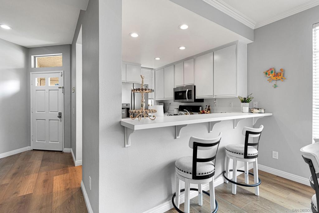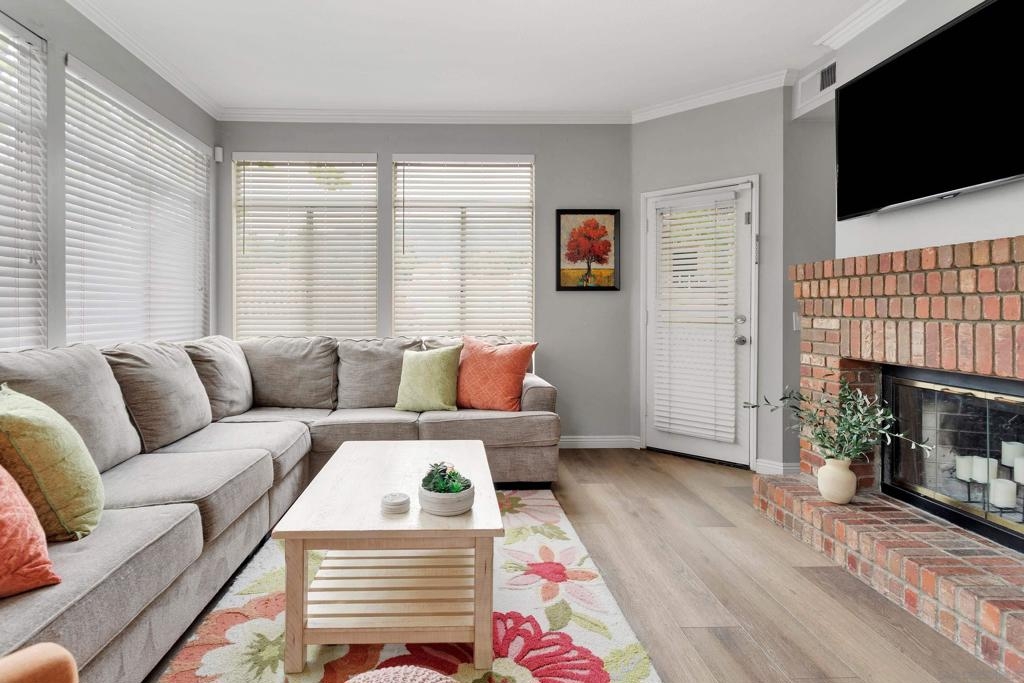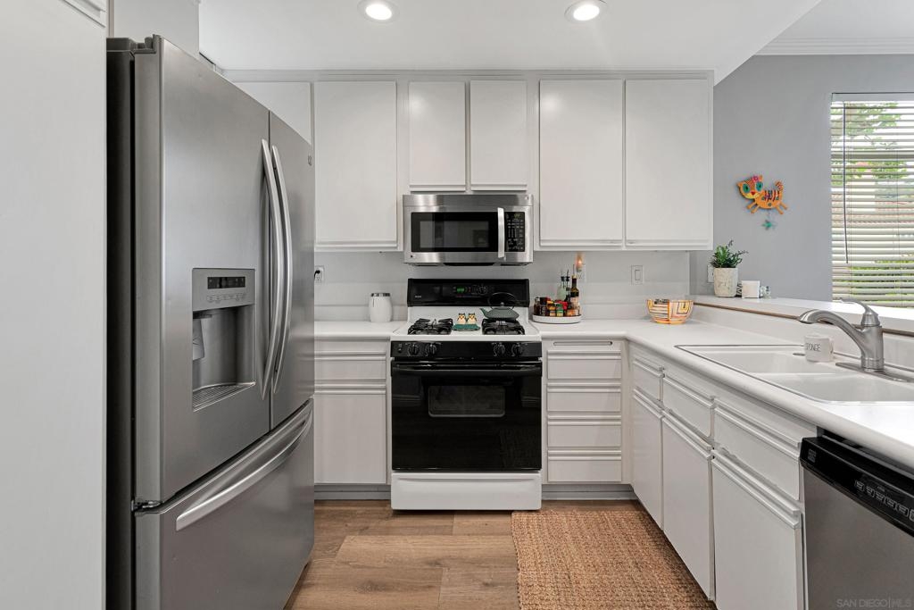 Exceptional Lower-Level Corner Unit Condo in the Sought-After Sierra Del Oro Community Welcome to your dream home! A beautifully appointed condo nestled in the prestigious hills of the Sierra Del Oro Community. This prime location offers unparalleled access to Orange County and a host of local amenities. Luxurious Interiors: Step inside to discover a suite of high-end upgrades including beautiful vinyl flooring. The kitchen boasts elegant white cabinets, pristine white countertops. The suite of stainless appliances complements a large sink.. A full-size, stackable front-loading washer and dryer set ensures laundry day is always a breeze. Comfort and Convenience: This corner unit is perfectly positioned near the community pool, offering peaceful views of palm trees and the rolling hills of Cleveland National Forest from your private patio. The serene surroundings are matched by convenience, with a semi-attached one-car garage and an additional covered carport space. Quality Features Throughout: Enjoy the comfort of large, inviting windows that flood the space with natural light and new vinyl flooring that extends throughout the home. The guest bathroom features a new vanity, faucet, and mirror, enhancing both style and functionality. New closet doors in both bedrooms, a security system, and a cozy fireplace in the family room add to the home’s charm. Local Lifestyle: Living here means being just moments away from Starbucks, The Happy Hour Saloon, Serfas Club Park, Skyline Drive Trailhead, and the Ralphs shopping center—perfect for social outings and everyday conveniences. Exceptional Lower-Level Corner Unit Condo in the Sought-After Sierra Del Oro Community Welcome to your dream home! A beautifully appointed condo nestled in the prestigious hills of the Sierra Del Oro Community. This prime location offers unparalleled access to Orange County and a host of local amenities. Luxurious Interiors: Step inside to discover a suite of high-end upgrades including beautiful vinyl plank flooring. The kitchen boasts elegant white cabinets, pristine white countertops. The suite of stainless appliances including 36" side by side Kenmore Refrigerator with bottom freezer, ice maker and water dispenser complements a large sink area. A full-size, stackable front-loading washer and dryer set ensures laundry day is always a breeze. Comfort and Convenience: This corner unit is perfectly positioned near the community pool, offering peaceful views of palm trees and the rolling hills of Cleveland National Forest from your private patio. The serene surroundings are matched by convenience, with a semi-attached one-car garage and an additional covered carport space. Quality Features Throughout: Enjoy the comfort of large, inviting windows that flood the space with natural light and new vinyl flooring that extends throughout the home. The guest bathroom features a new vanity, faucet, and mirror, enhancing both style and functionality. New closet doors in both bedrooms, a security system, and a cozy fireplace in the family room add to the home’s charm. Local Lifestyle: Living here means being just moments away from Starbucks, The Happy Hour Saloon, Serfas Club Park, Skyline Drive Trailhead, and the Ralphs shopping center—perfect for social outings and everyday conveniences. A Rare Find: This dog-friendly, quiet, and impeccably maintained property is an absolute must-see. Don’t miss the opportunity to own a stunning home in a coveted location. Discover the perfect blend of style, comfort, and convenience at Sierra Del Oro
