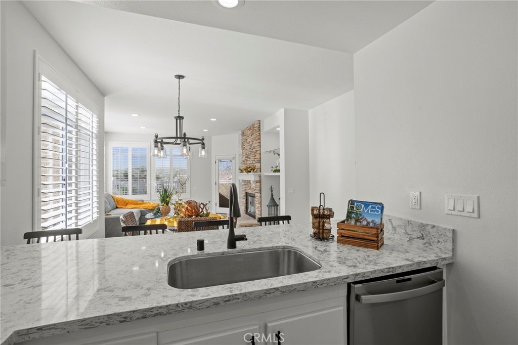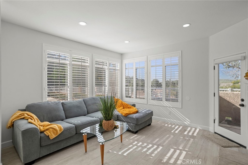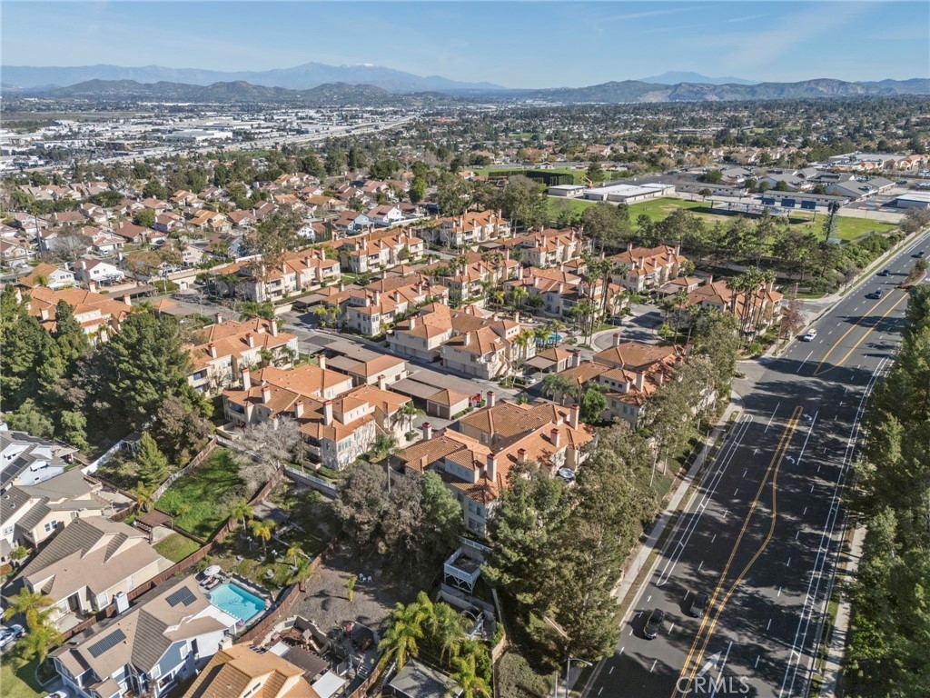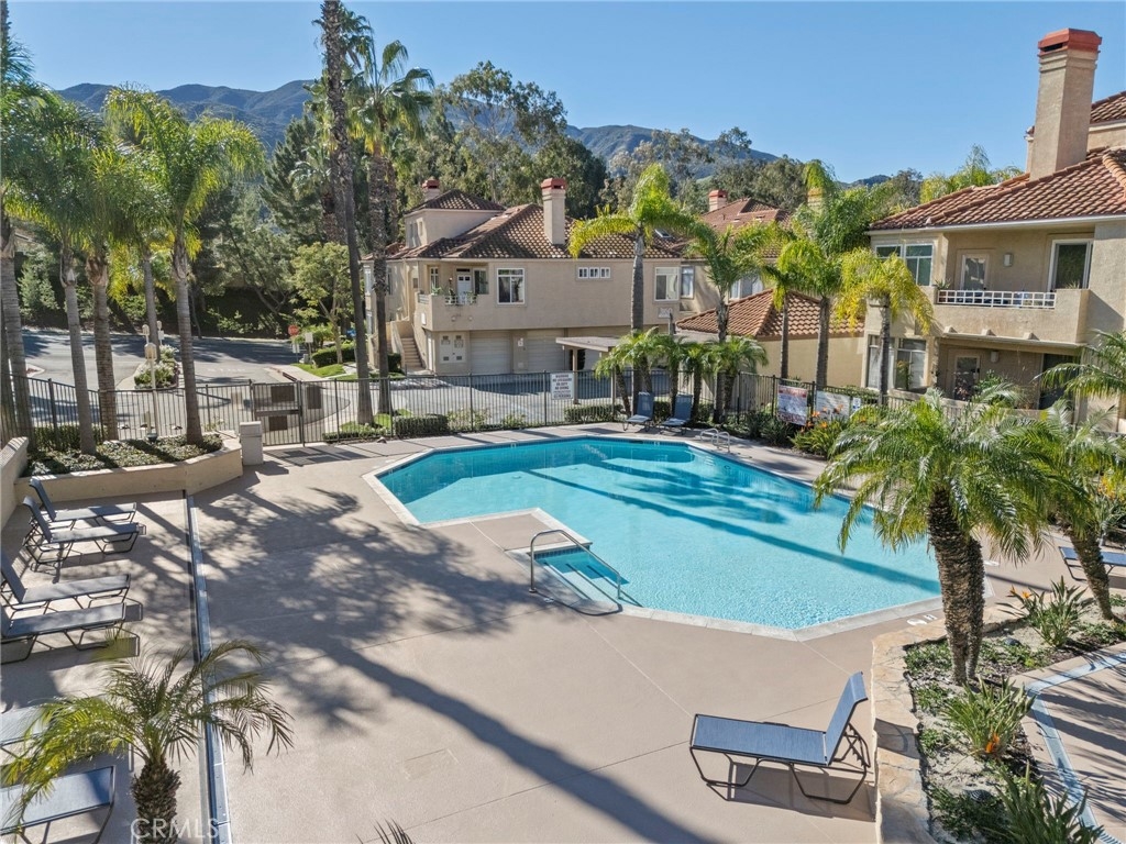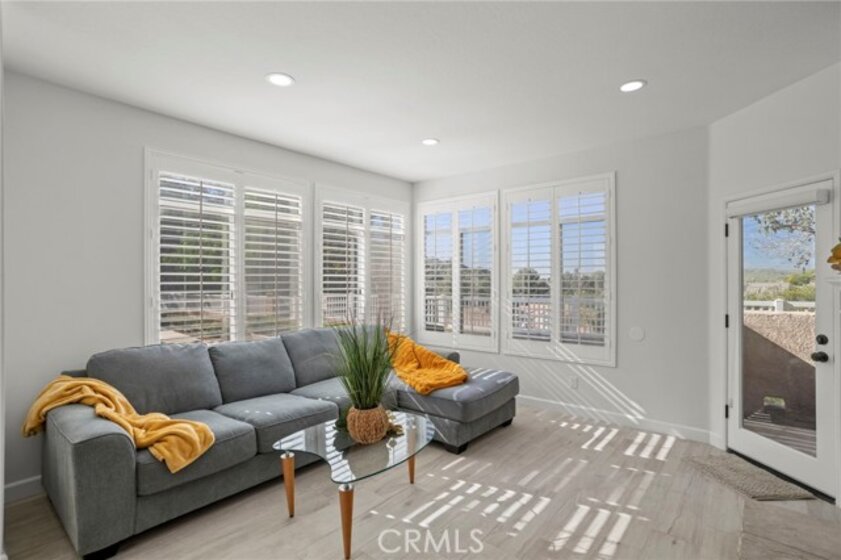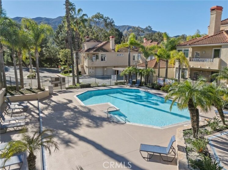 Gorgeous home! Fantastic Views and best location in the complex!!! Natural lighting flows in from every window in this beautifully remodeled end unit. This 2 bedroom 2 bathroom home features dramatic views into the valley and mountains. Sit on the quiet and peaceful patio and enjoy the spectacular sunsets. Step into the beautiful living room with new flooring, new paint, white shutters covering all windows, a fantastic stone fireplace in the living room brings warmth and beauty to the home, custom glass shelving on either side of the fireplace provides a wonderful space to exhibit all of your treasures. The kitchen features stylish new counter tops with stainless steel appliances, a large recessed kitchen sink and a great kitchen bar seating for entertaining. The primary bedroom has a large slider to the rear patio and fantastic views of the mountains and valley. Washer/Dryer hookups are inside, lots of ample storage. This unit also includes a 1-car garage right next to the front doo, plus an additional carport for extra convience. Located in the highly sought after Terrace at Sierra Del Oro Community which is nestled at the foothills of the Cleveland National Forest. Walking distance to shopping, dining, schools, Sierra Del Pro Park and hiking trails. The complex is perfectly situated for access to the 91,241,15 and 71 Freeways as wells as the Metrolink stations. This beautifully remodeled unit is just what you have been searching for.