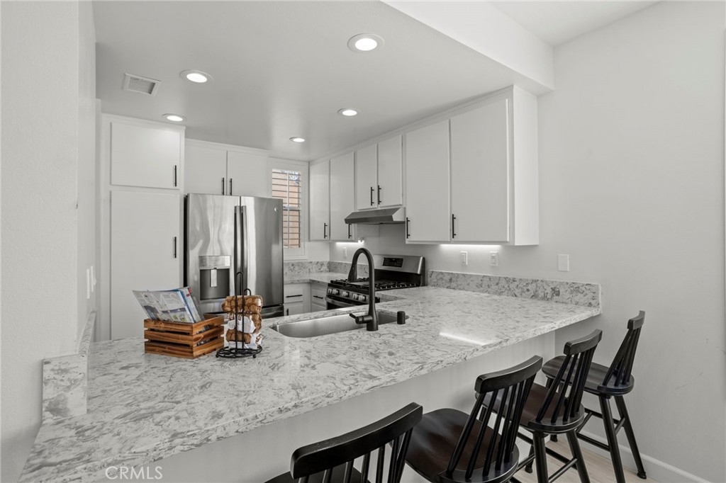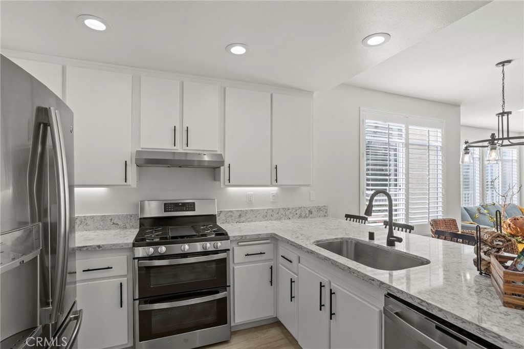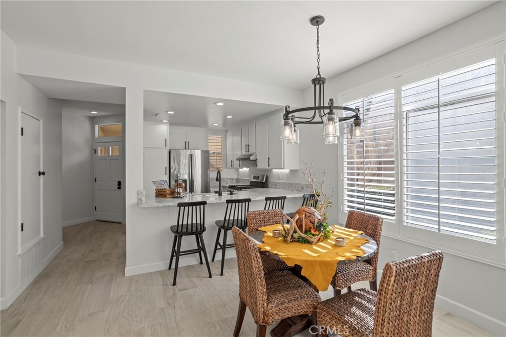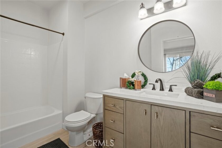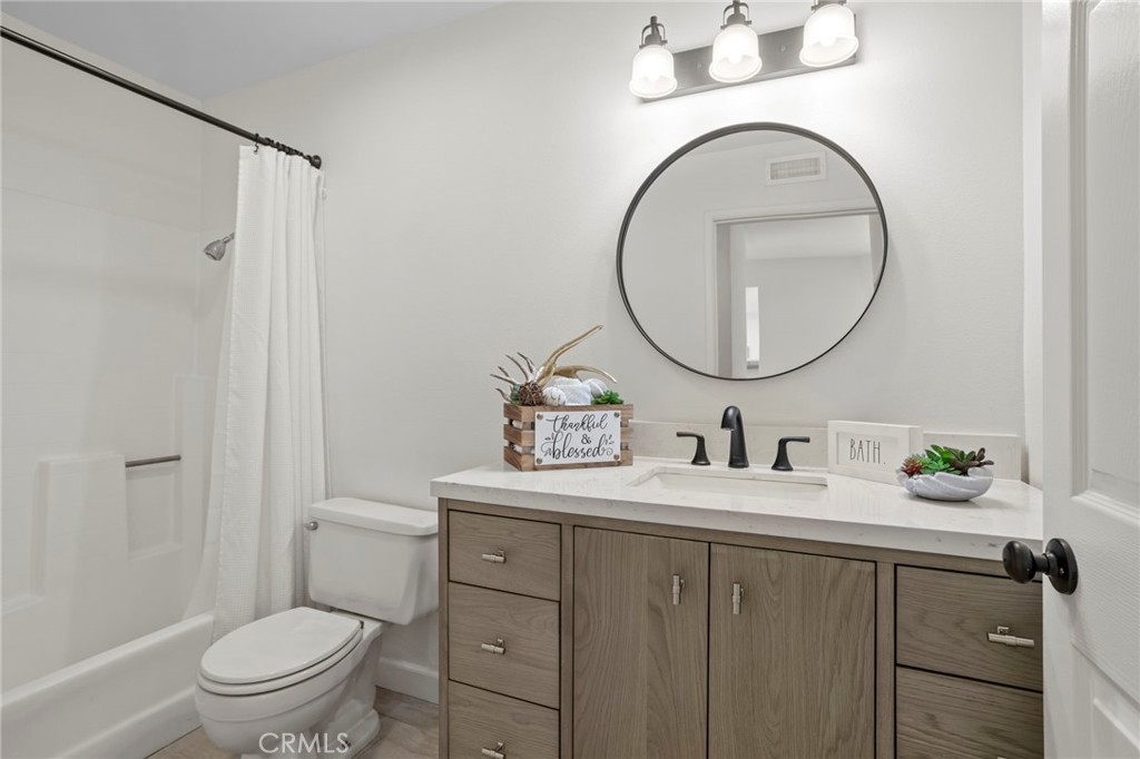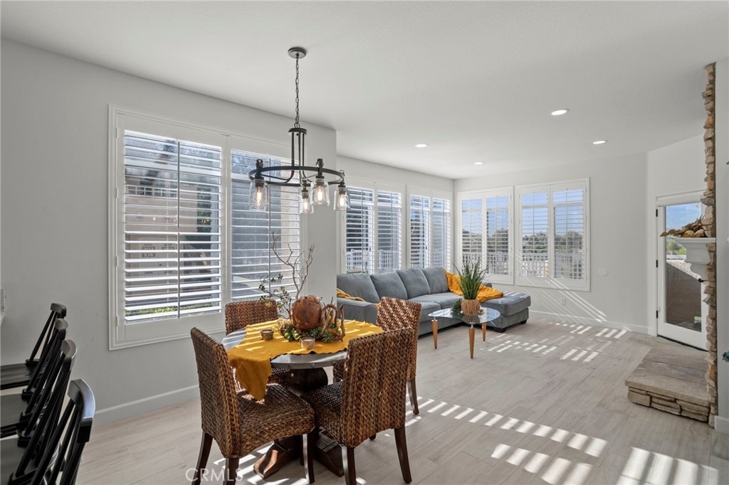 Gorgeous home! Fantastic Views and best location in the complex!!! Natural lighting flows in from every window in this beautifully remodeled end unit. This 2 bedroom 2 bathroom home features dramatic views into the valley and mountains. Sit on the quiet and peaceful patio and enjoy the spectacular sunsets. Step into the beautiful living room with new flooring, new paint, white shutters covering all windows, a fantastic stone fireplace in the living room brings warmth and beauty to the home, custom glass shelving on either side of the fireplace provides a wonderful space to exhibit all of your treasures. The kitchen features stylish new counter tops with stainless steel appliances, a large recessed kitchen sink and a great kitchen bar seating for entertaining. The primary bedroom has a large slider to the rear patio and fantastic views of the mountains and valley. Washer/Dryer hookups are inside, lots of ample storage. This unit also includes a 1-car garage right next to the front doo, plus an additional carport for extra convience. Located in the highly sought after Terrace at Sierra Del Oro Community which is nestled at the foothills of the Cleveland National Forest. Walking distance to shopping, dining, schools, Sierra Del Pro Park and hiking trails. The complex is perfectly situated for access to the 91,241,15 and 71 Freeways as wells as the Metrolink stations. This beautifully remodeled unit is just what you have been searching for.