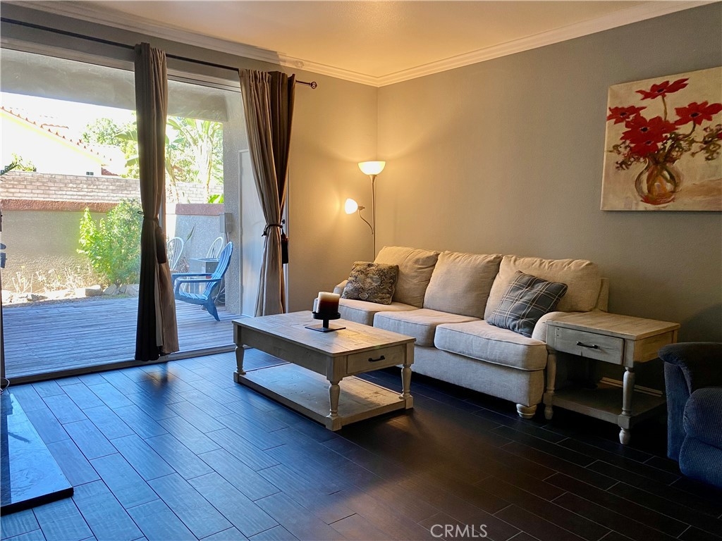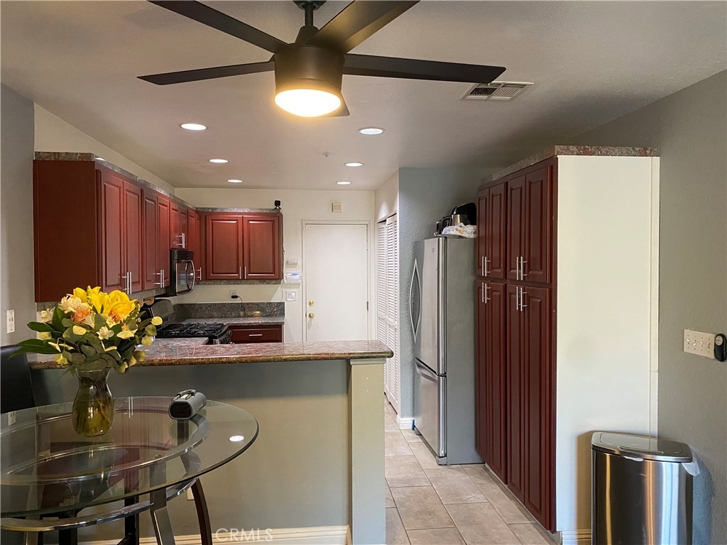 The Pride of ownership does not describe the care that went into this house to make it a home. This end-unit one-level home offers excellent features. You will see the inviting living room as you walk through the doors. You are greeted with soaring high ceilings showcasing the abundance of natural light. The open floor plan welcomes you with a cozy fireplace in the living room. The home features a dining area and a spacious kitchen featuring Quality Kitchen appliances that include a refrigerator, a new dishwasher, plenty of cabinets, a separate space for the dryer, and a new washing machine. (Refrigerator, Dryer, and new Washing Machine are included) You will walk through the sliding glass doors into the wood floor patio in your private enclosed backyard and side yard from the living room. Great for BBQs (BBQ grill included). Enjoy beautiful views of Griffin Park. The spacious master suite includes high ceilings, a walk-in closet, a large sink cabinet, and a shower: the additional bedroom and a full bathroom with a tub complete this spacious home. The home features porcelain plank titles in the living room, kitchen, hallway, and recess lighting. THE ATTACHED GARAGE "WITH ITS OWN DRIVEWAY" has direct entry into the house. The home is in the prestigious Villaggio Community. Enjoy the lifestyle and amenities. The community offers a pool, spa, and picnic areas. The HOA does include trash, water, and maintenance of the grounds. Pets are welcome—end unit located next to Griffin Park. Easy access to the 91 and the 15 freeways, shopping, and schools. https://tour.pivo.app/view/a0e8fed2-eb1f-444e-b0e7-363815645367
