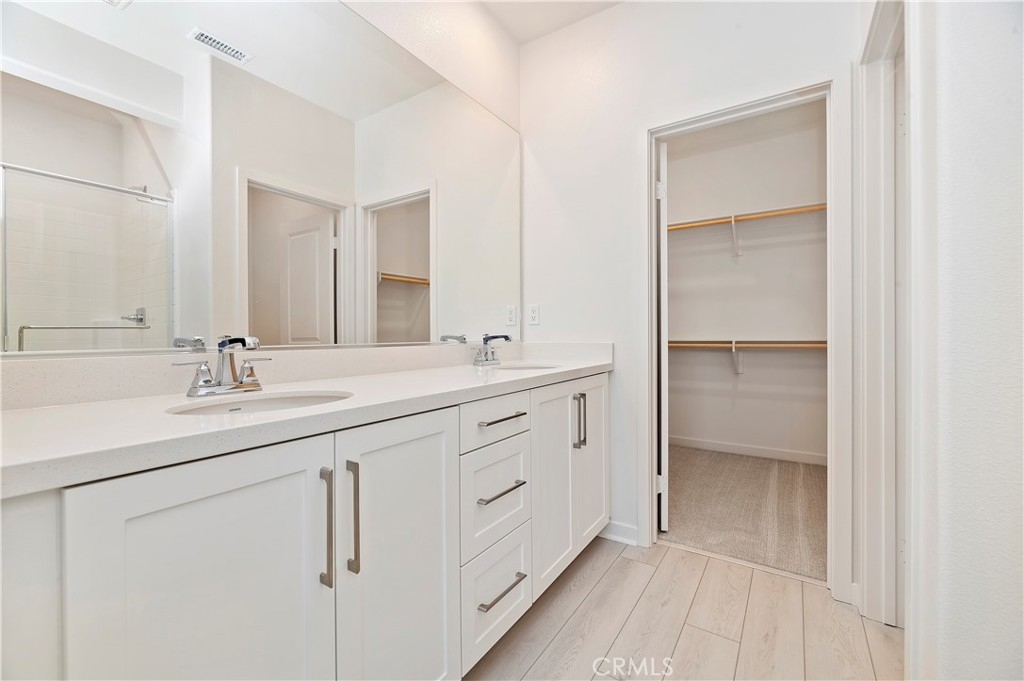 MOVE IN READY New Tri Pointe Homes Averly community in South Corona, located at gated Bedford Master Plan and set against the backdrop of the scenic Santa Ana Mountains. Unique location facing community greenbelt/lounge area, SOLAR PURCHASE represented in price, interior finishes include a slide-in SS GE appliance package, granite kitchen counters, white Shaker cabinets with satin nickel pulls, additional electrical/lighting upgraded flooring. This Residence 1 is just over 1,300 square feet, with a private, fenced outdoor patio and 3 Beds/2.5 Baths, plus attached 2 car garage. In addition to existing Hudson House amenities, location in walking distance to new pool/exercise room. All this and proximity to entertainment/dining/shopping and 15 and 91 transportation corridors that make all of the Inland Empire and Orange County accessible.